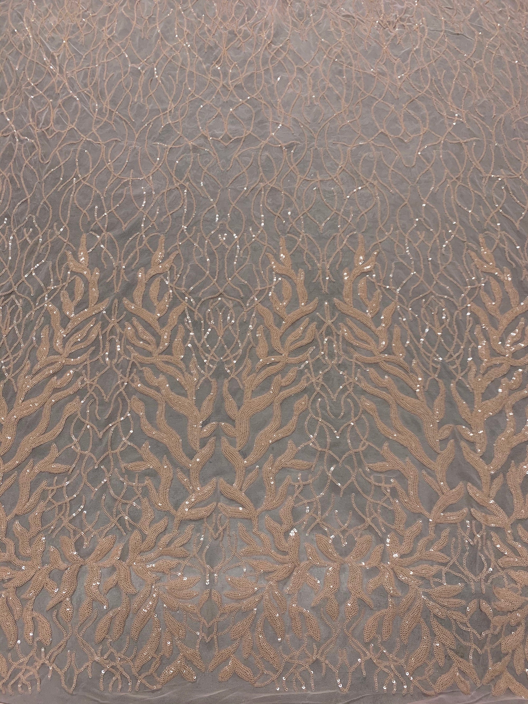 ["costumes","evening gown","formal wear","frances sequin lace","lace by the yard","lace fabric","lace mesh","light peach sequins","sequin on mesh","sequins by yard","sequins lace on mesh","sparkling sequins","vines leaves sequin"]
