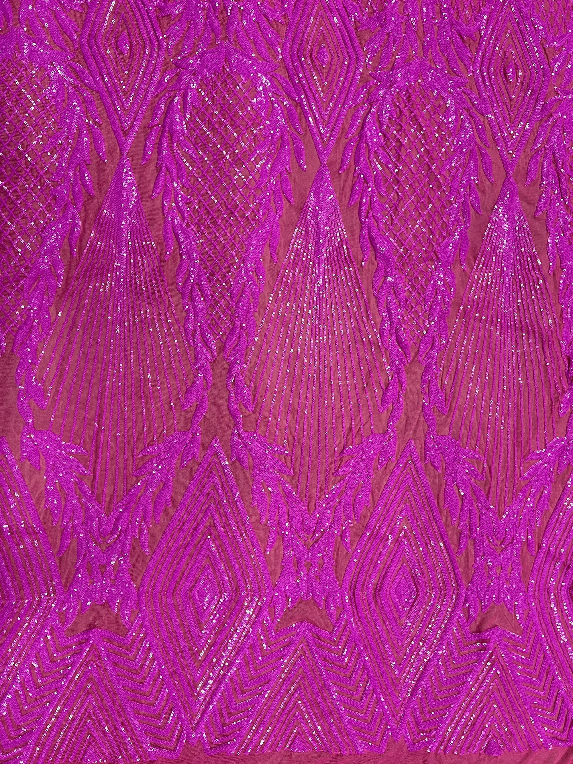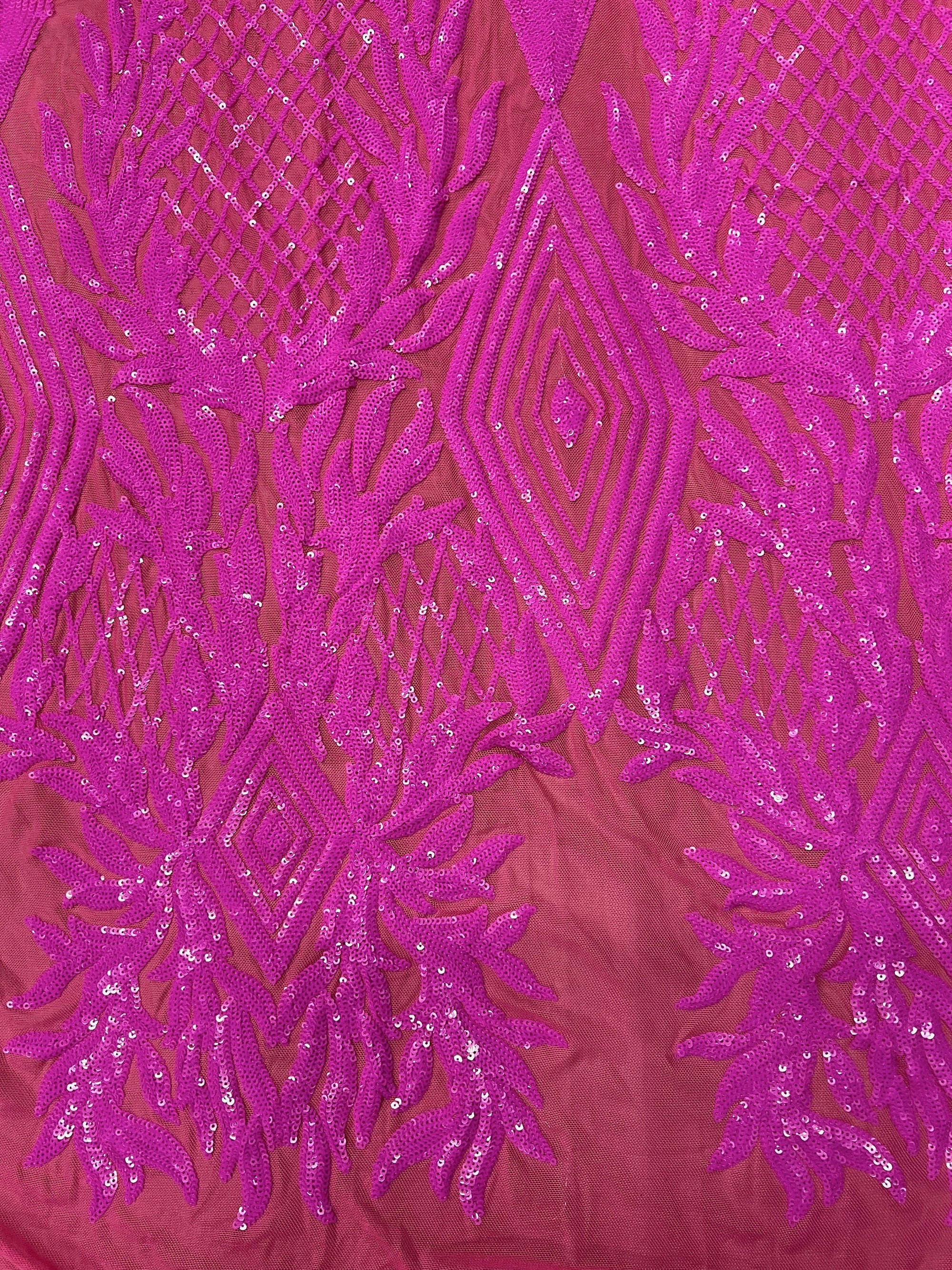 Francesca FUCHSIA Vines and Diamonds Pattern Sequins on Mesh Lace Fabric by the Yard - 10130