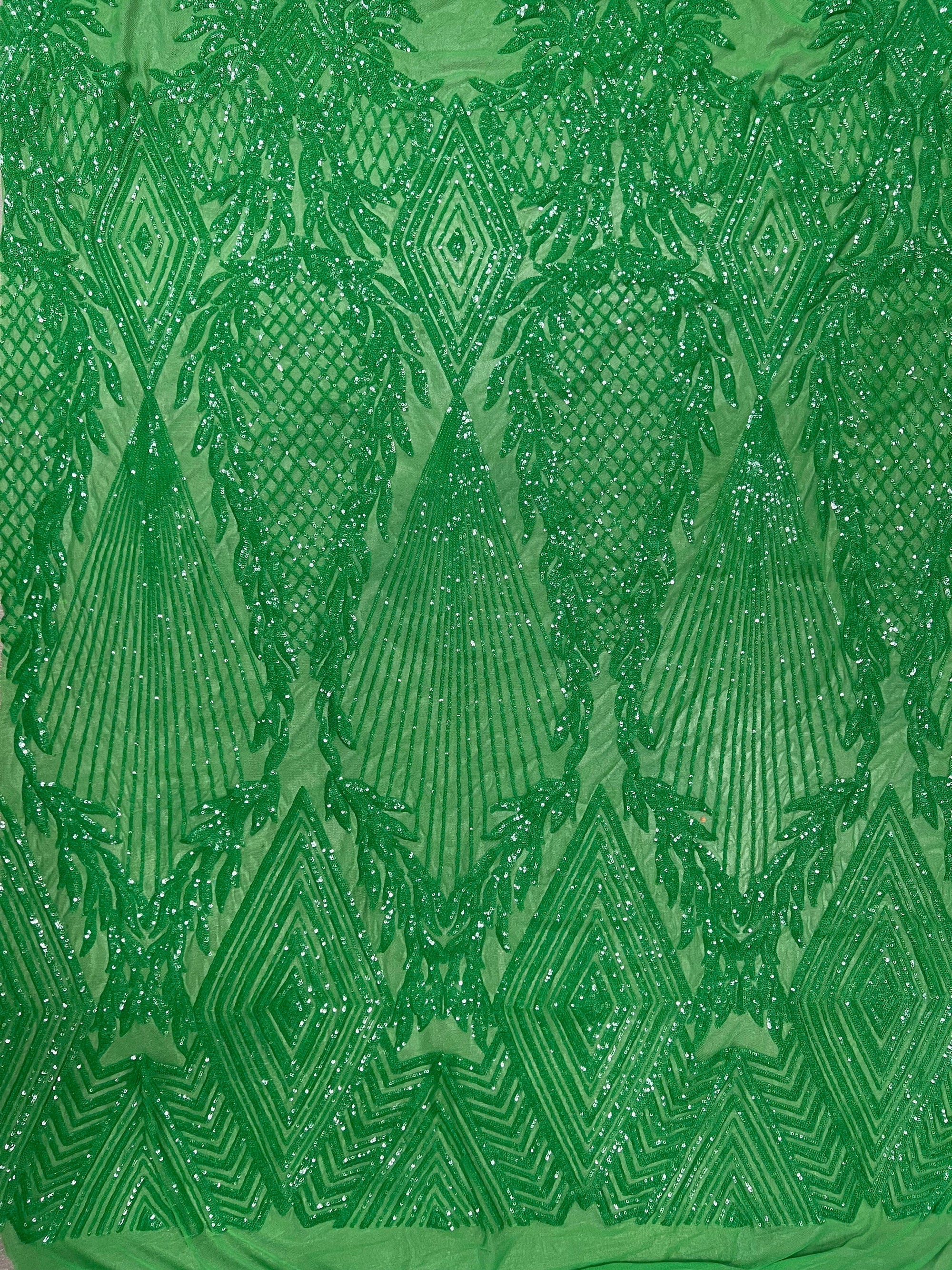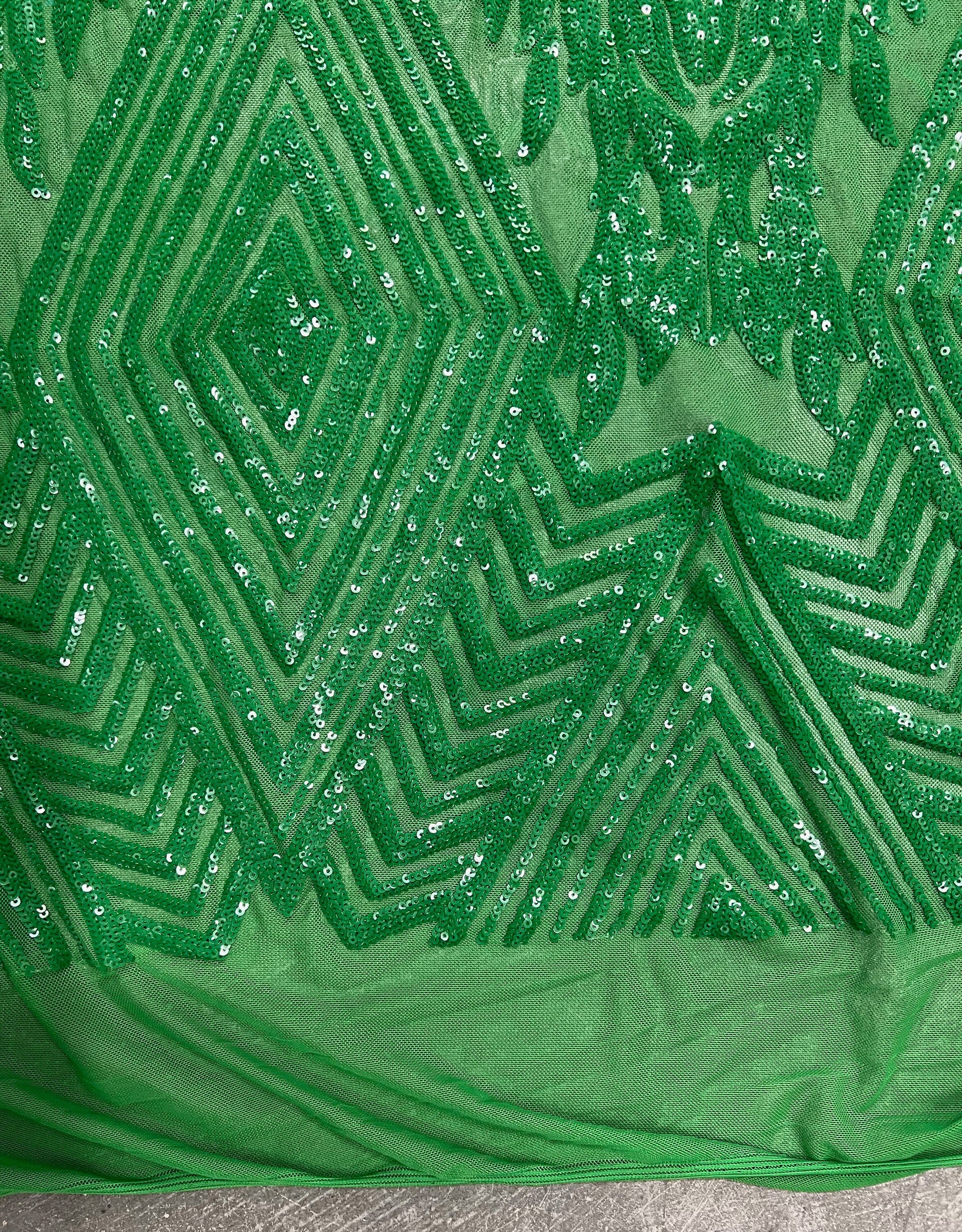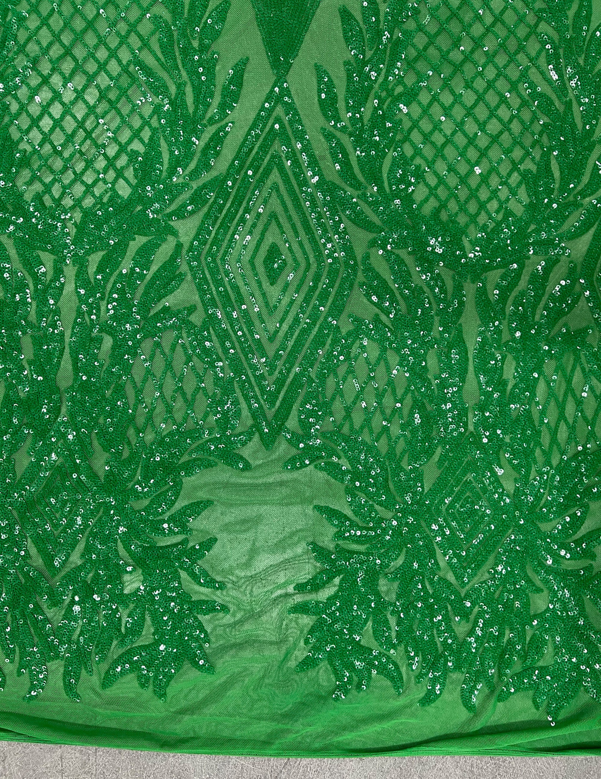 Francesca GREEN Vines and Diamonds Pattern Sequins on Mesh Lace Fabric by the Yard - 10130