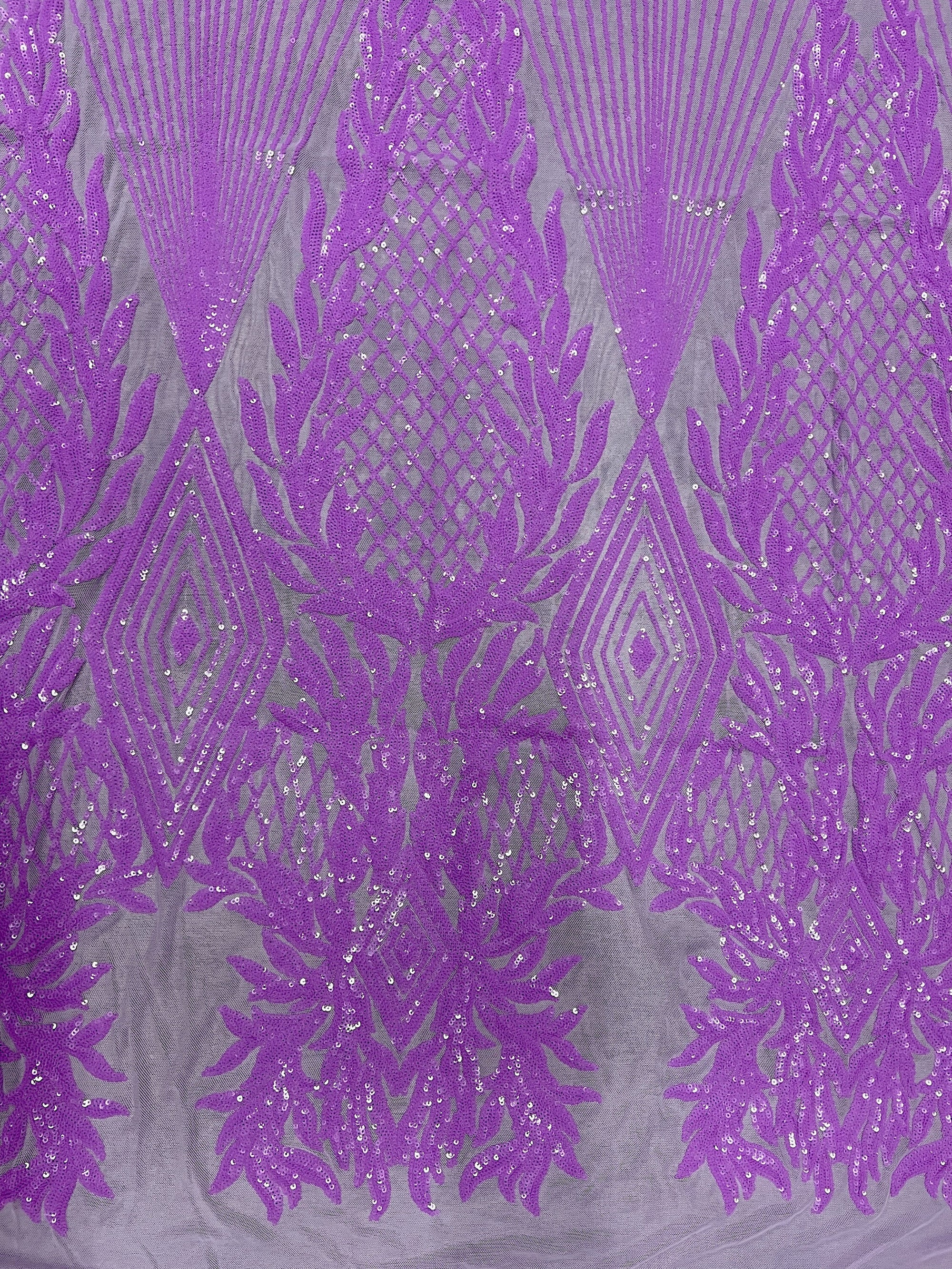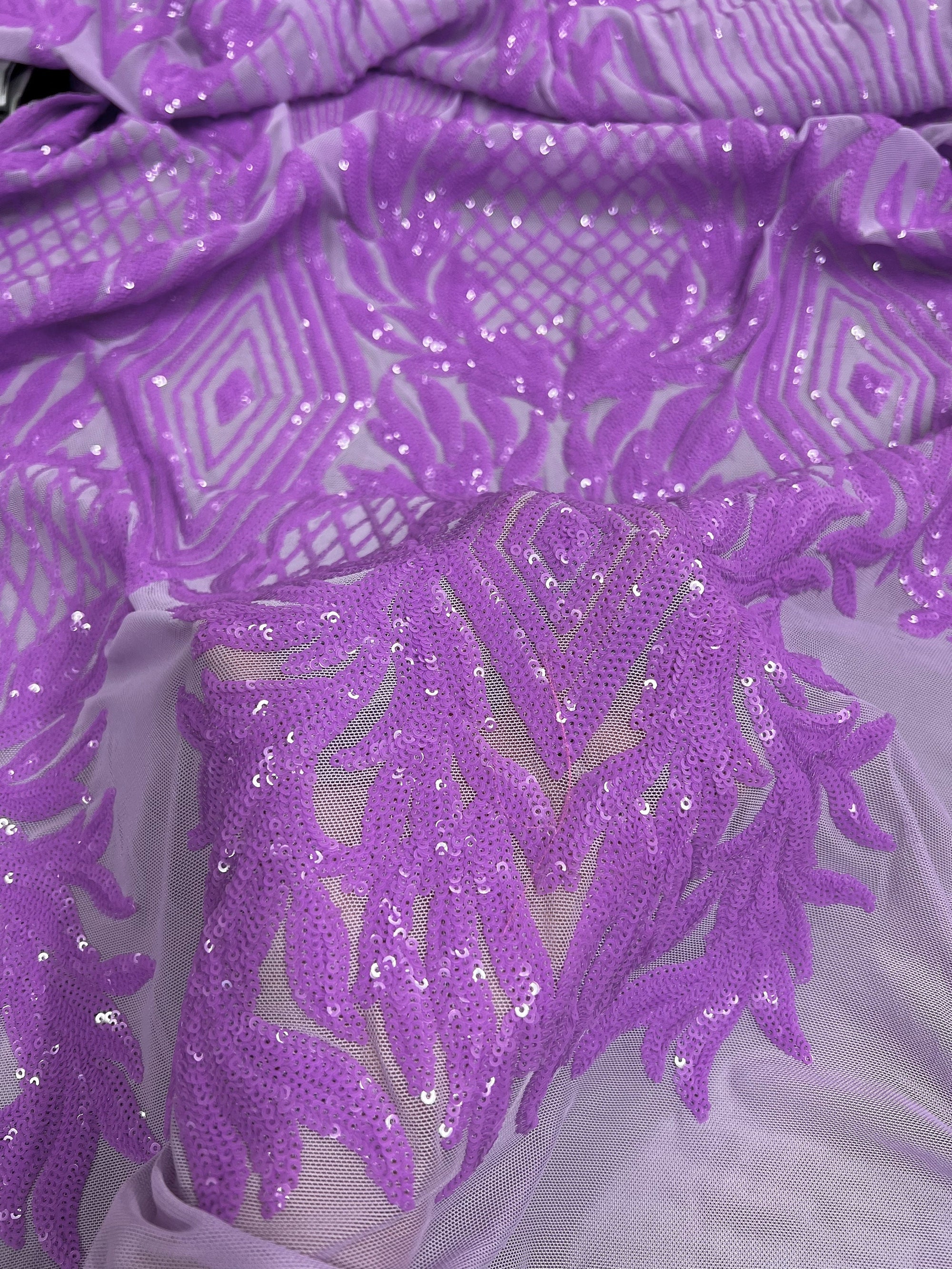 Francesca LILAC Vines and Diamonds Pattern Sequins on Mesh Lace Fabric by the Yard - 10130