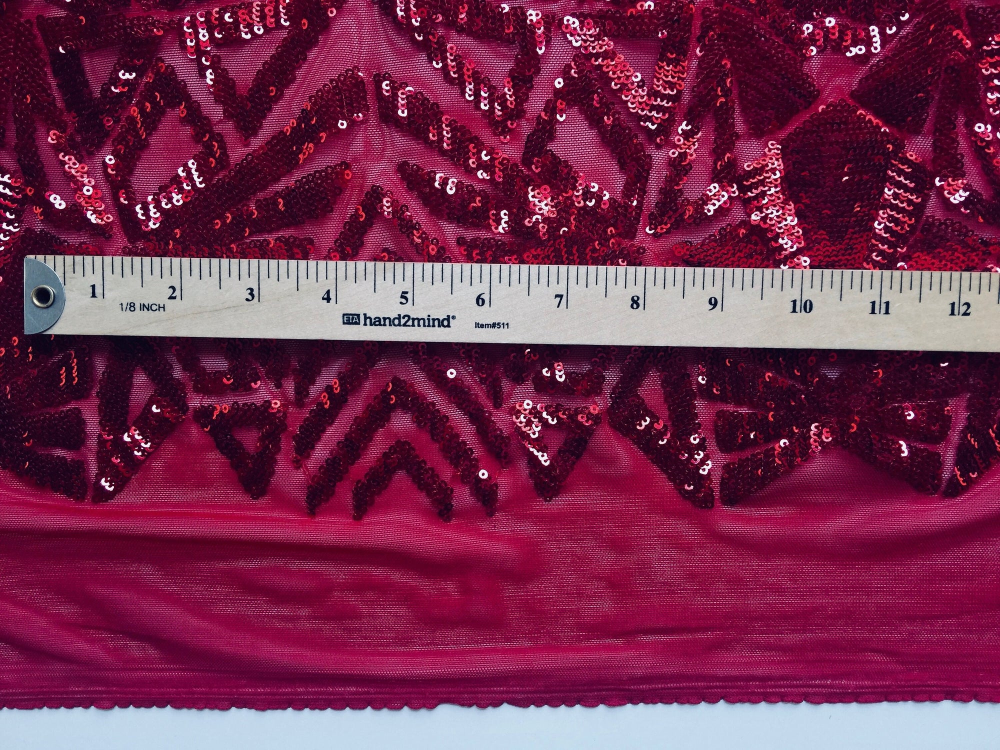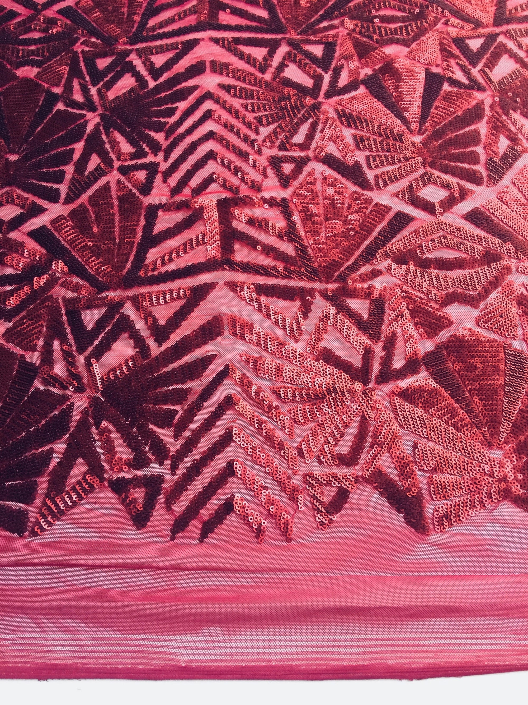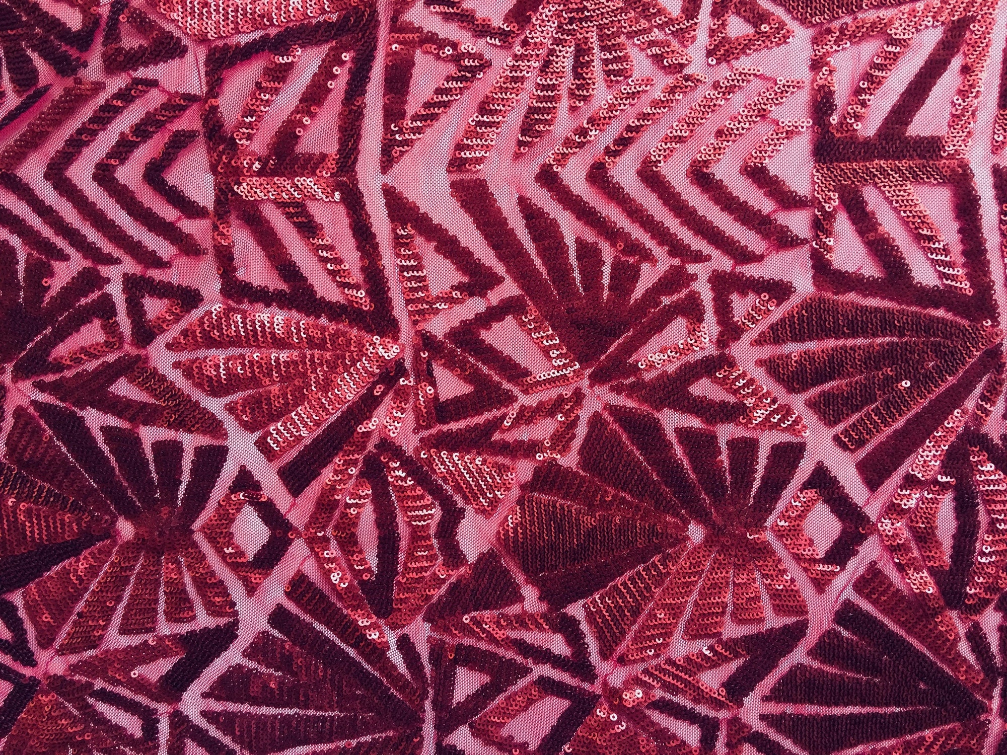 Gia BURGUNDY Geometric Sequins on Mesh Lace Fabric by the Yard - 10101