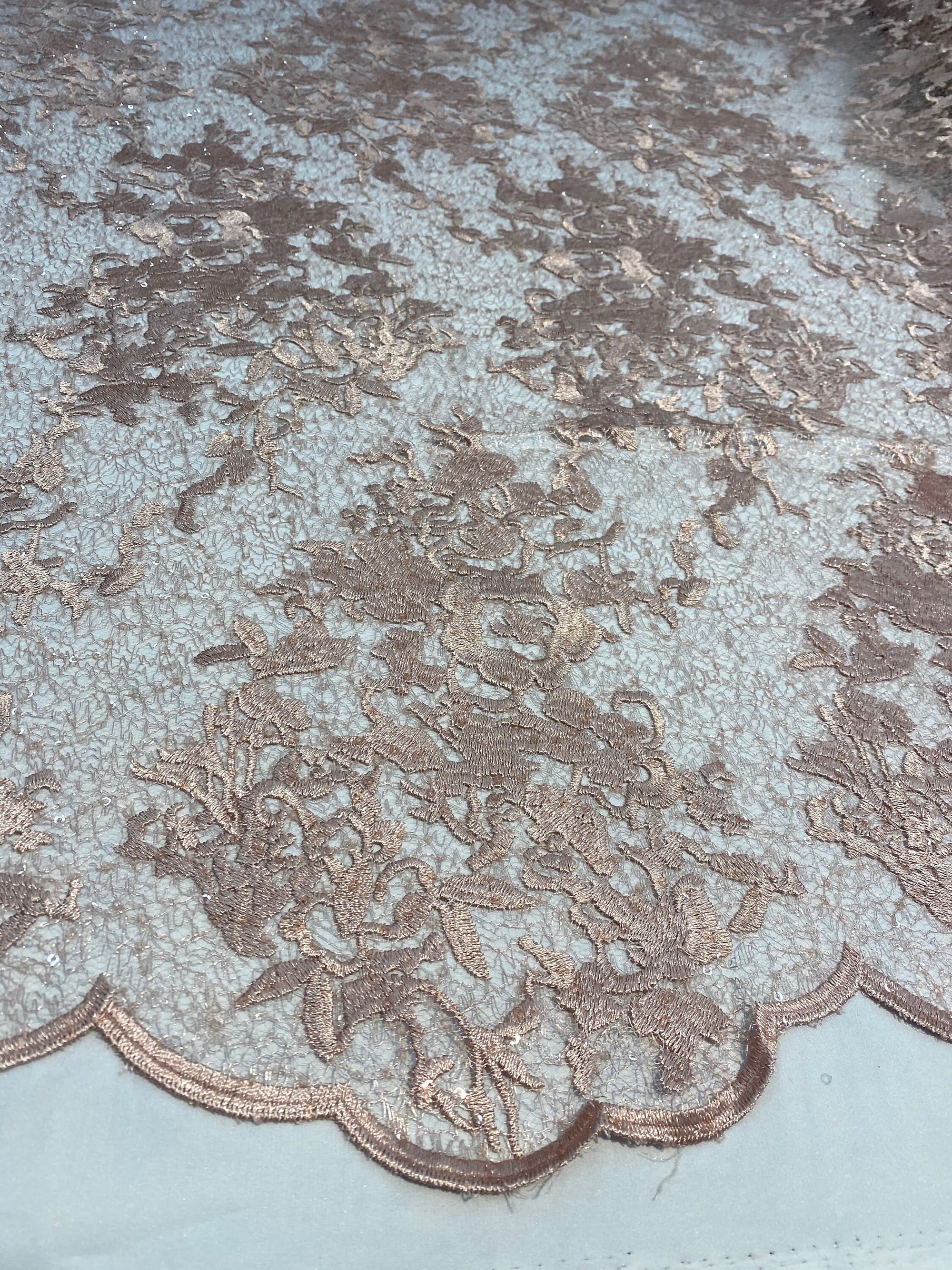 Hanna MAUVE Polyester Floral Embroidery with Sequins on Web Mesh Lace Fabric by the Yard for Gown, Wedding, Bridesmaid, Prom - 10165