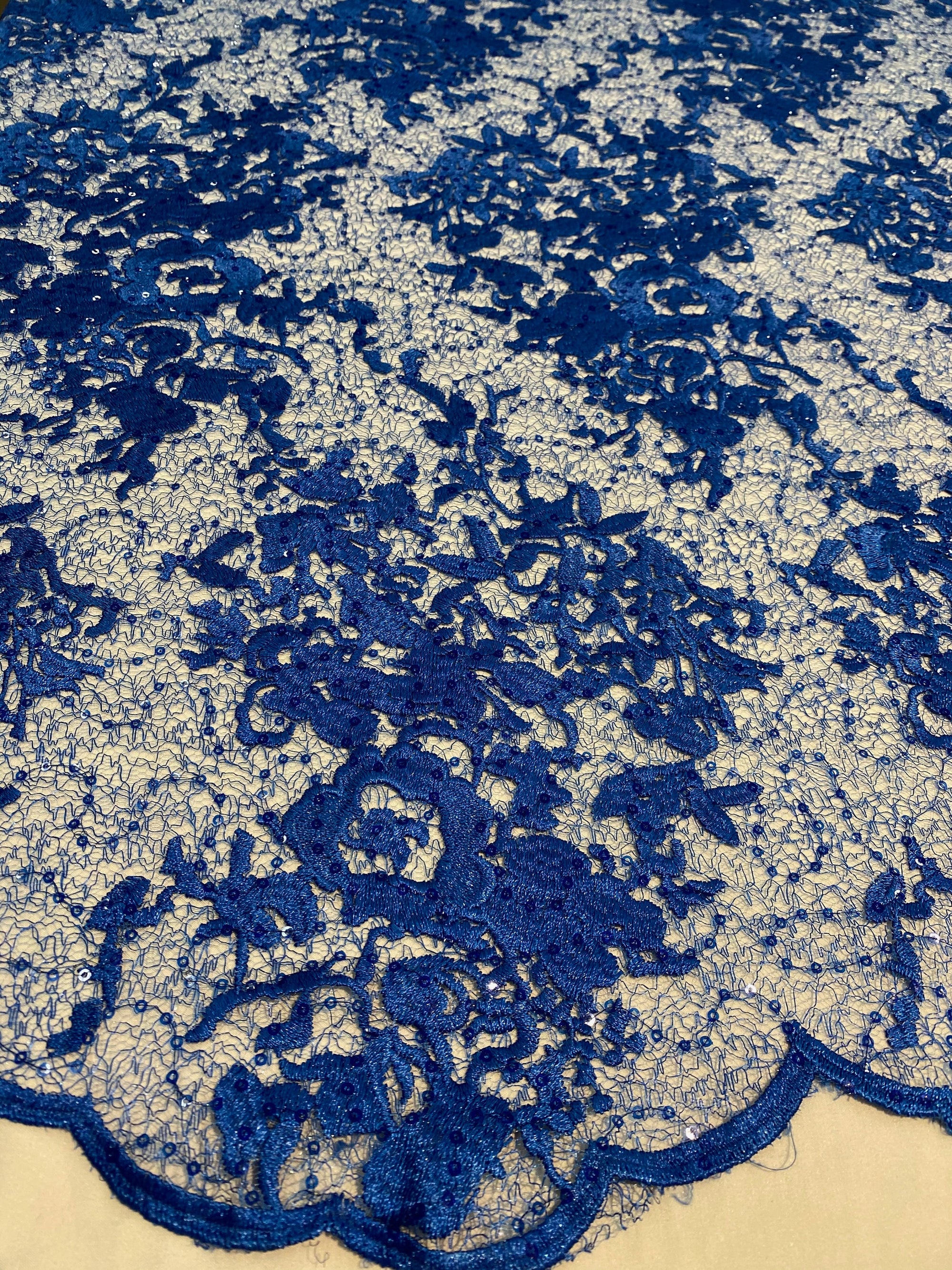 Hanna ROYAL BLUE Polyester Floral Embroidery with Sequins on Web Mesh Lace Fabric by the Yard for Gown, Wedding, Bridesmaid, Prom - 10165