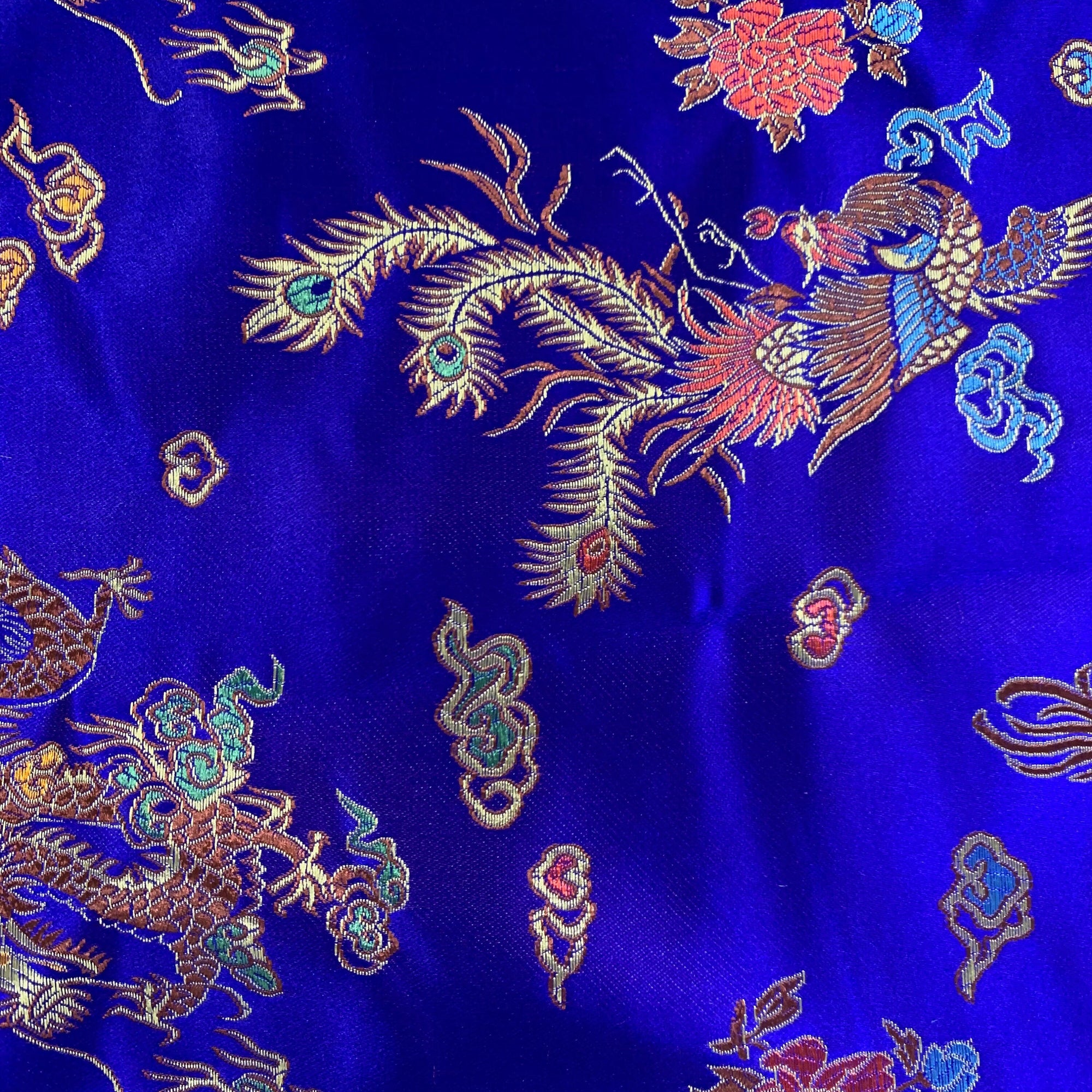 Hope ROYAL BLUE Dragon Brocade Chinese Satin Fabric by the Yard - 10040