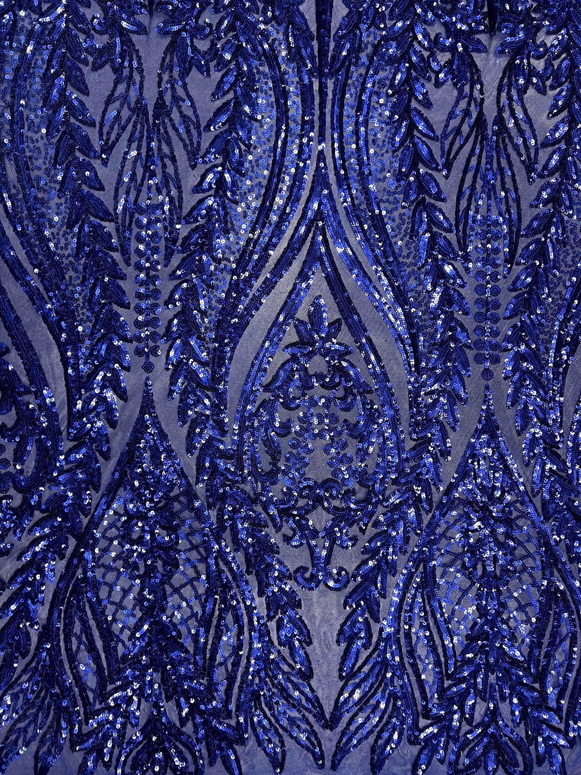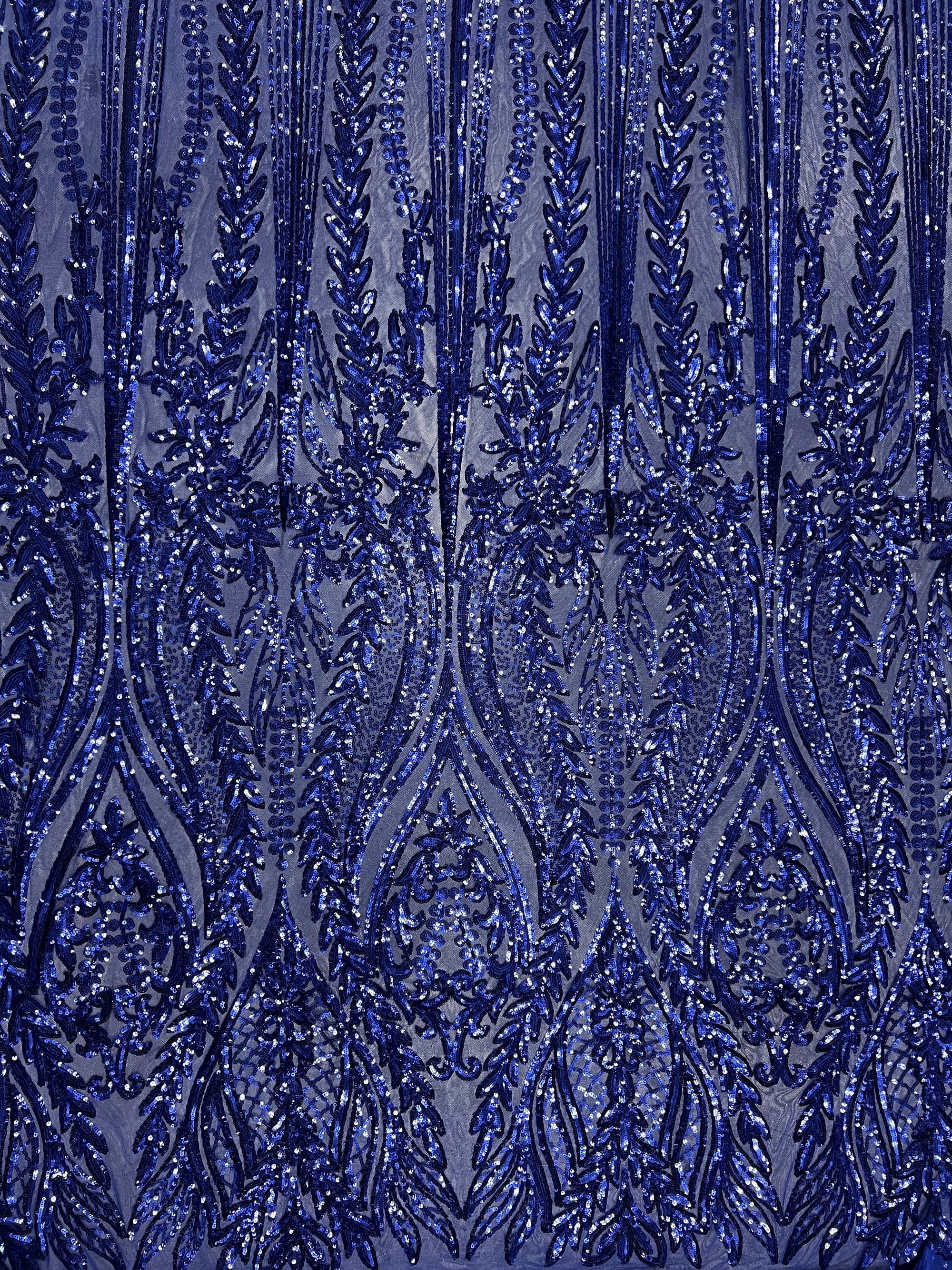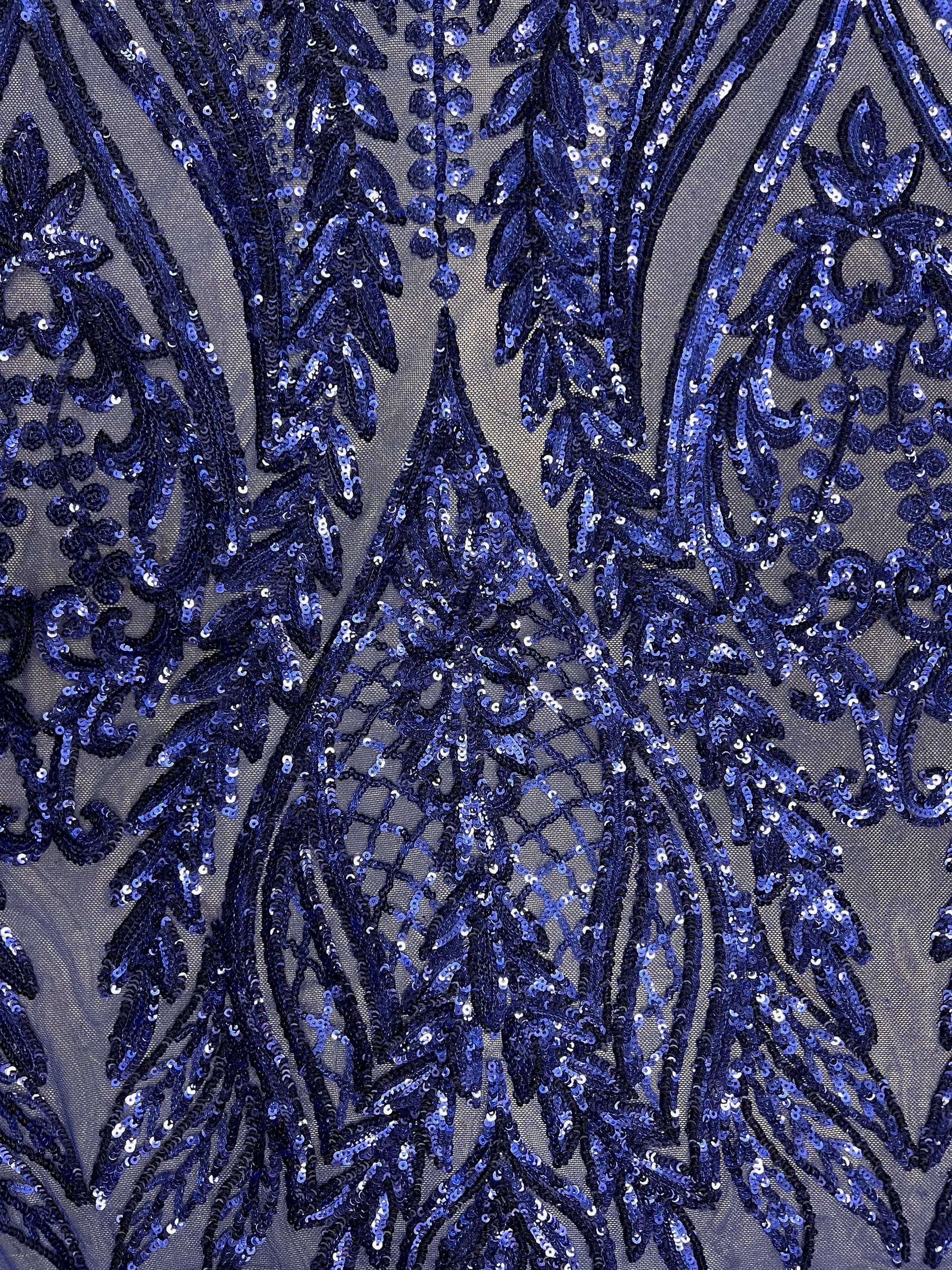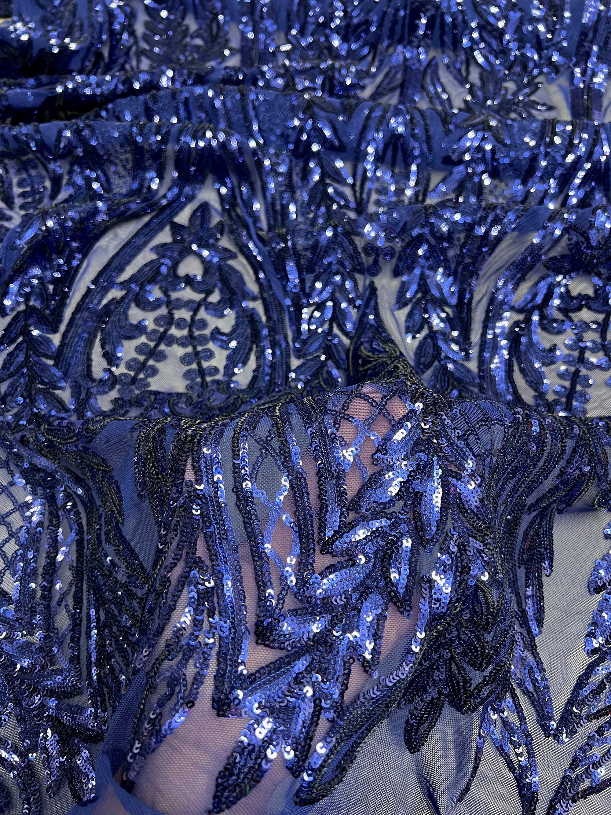 Isabella DARK ROYAL BLUE Curlicue & Leaves Sequins on Mesh Lace Fabric by the Yard - 10206