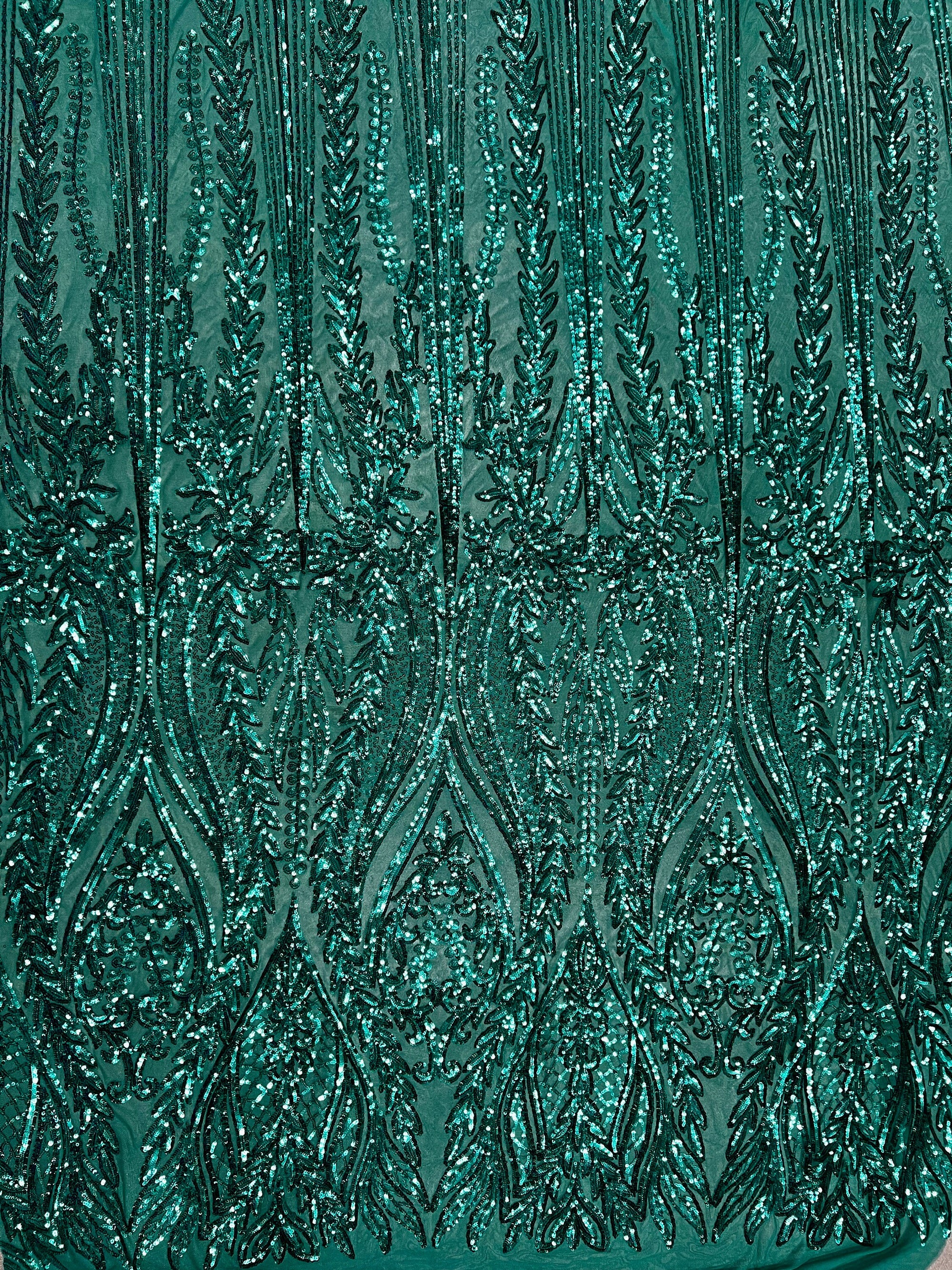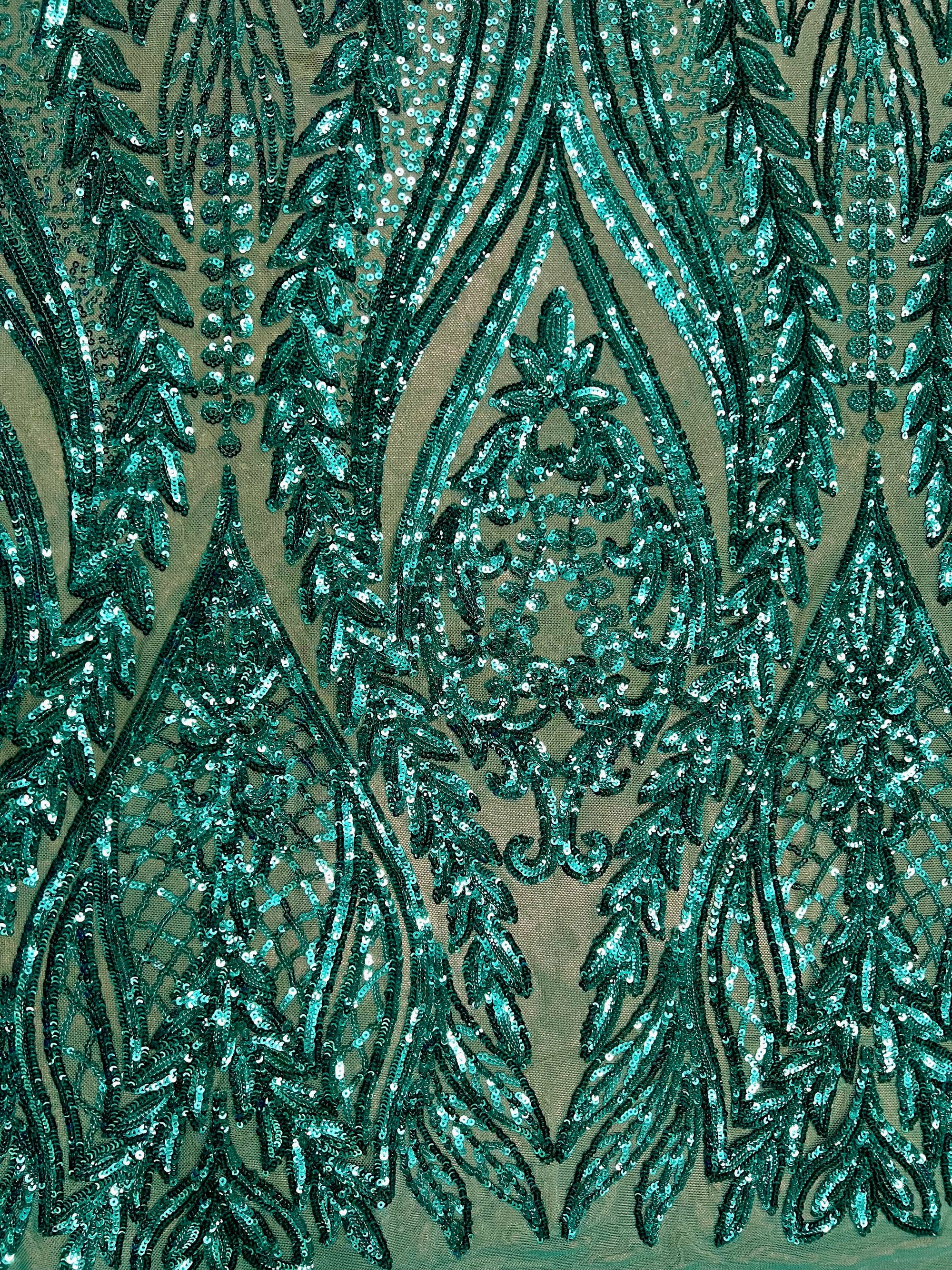 Isabella TEAL GREEN Curlicue & Leaves Sequins on Mesh Lace Fabric by the Yard