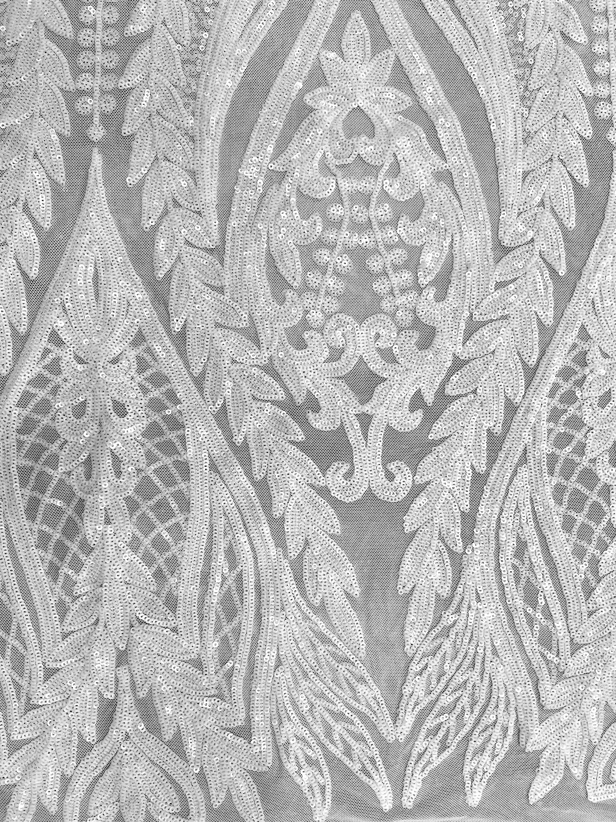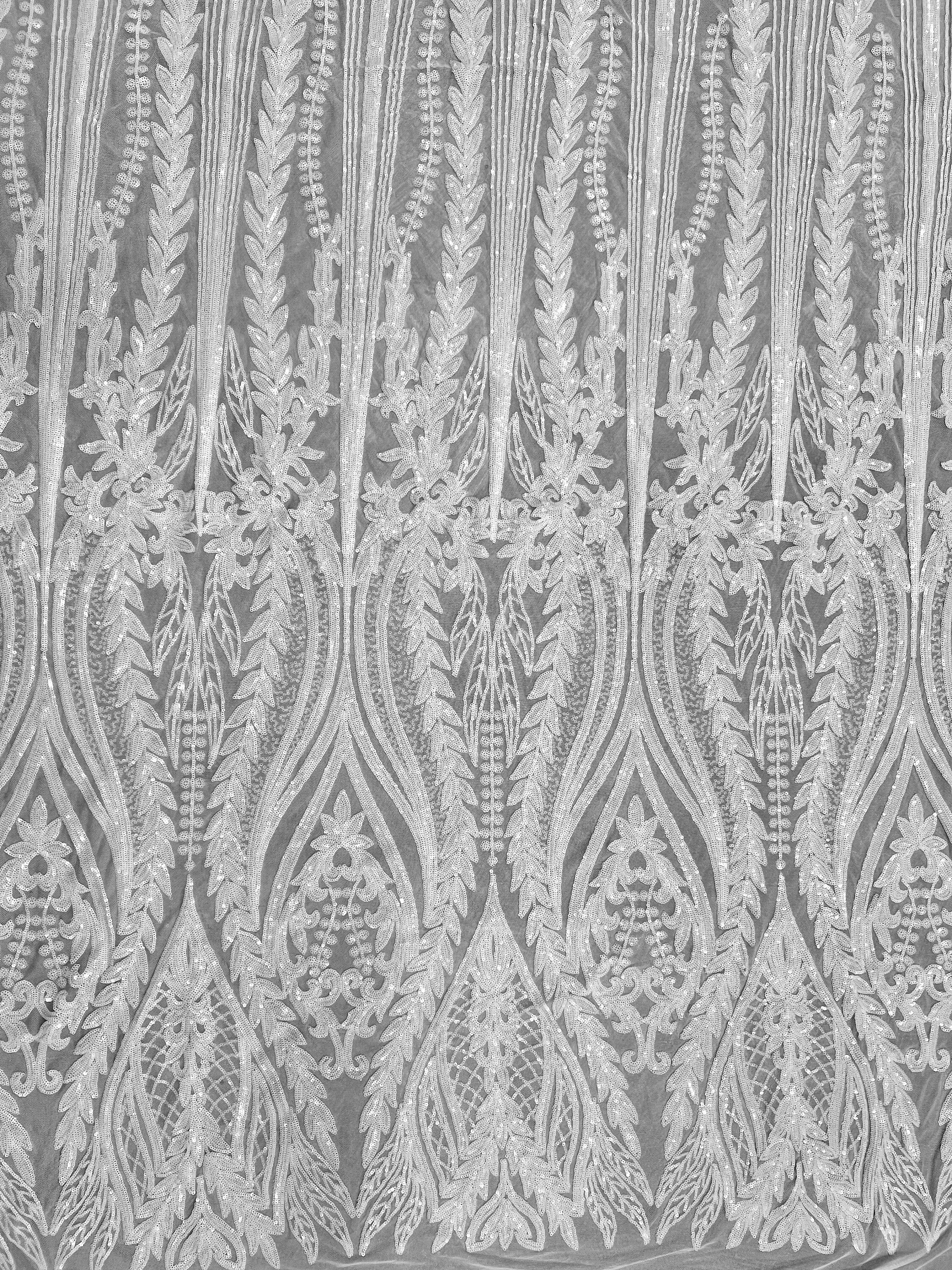 Isabella WHITE Curlicue & Leaves Sequins on Mesh Lace Fabric by the Yard