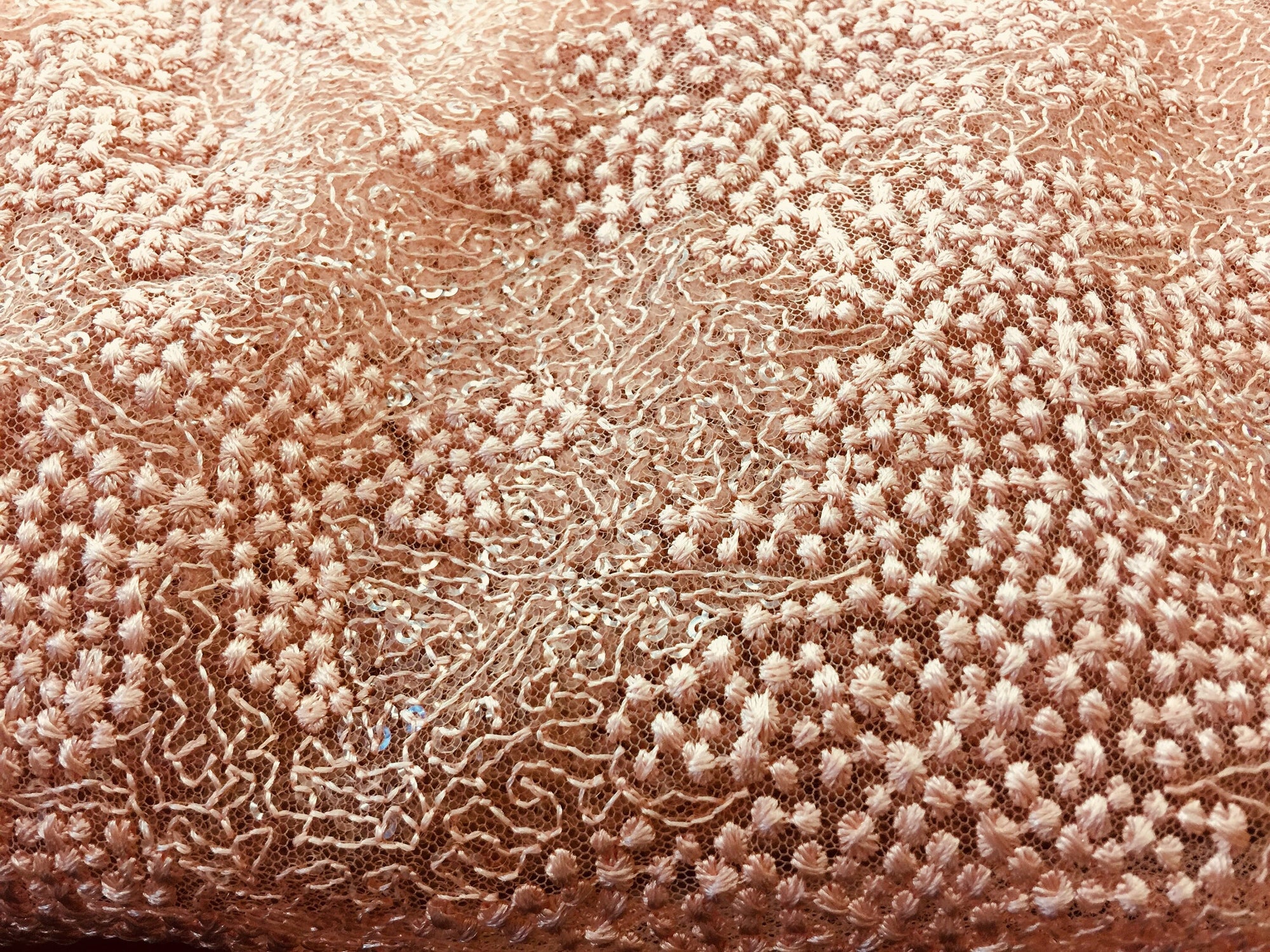 Sequined maze/labyrinth design, dotted embroidery on mesh fabric.
