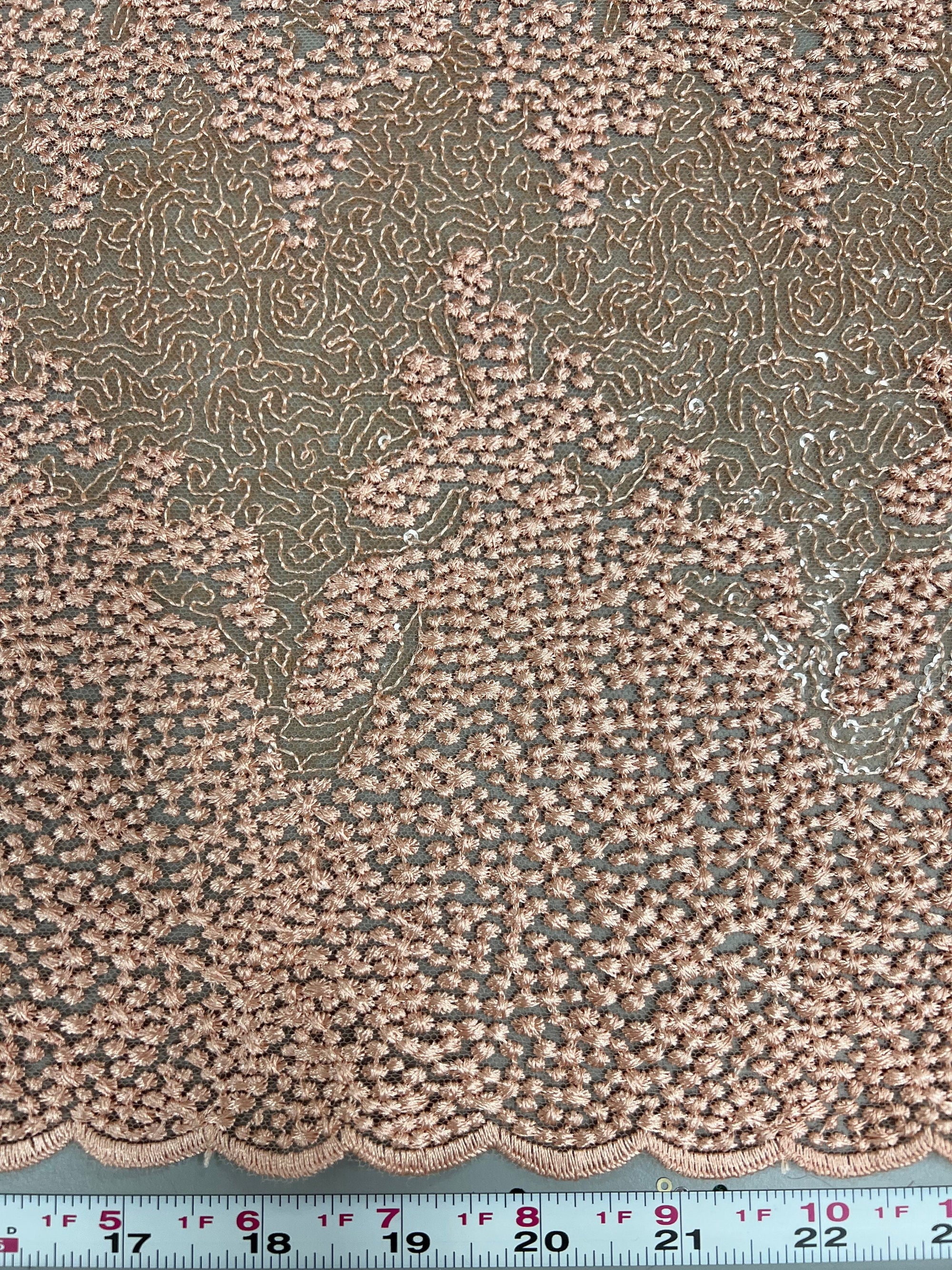 Joanna PEACH Maze Sequins Embroidered Dots on Mesh Lace Fabric by the Yard - 10074
