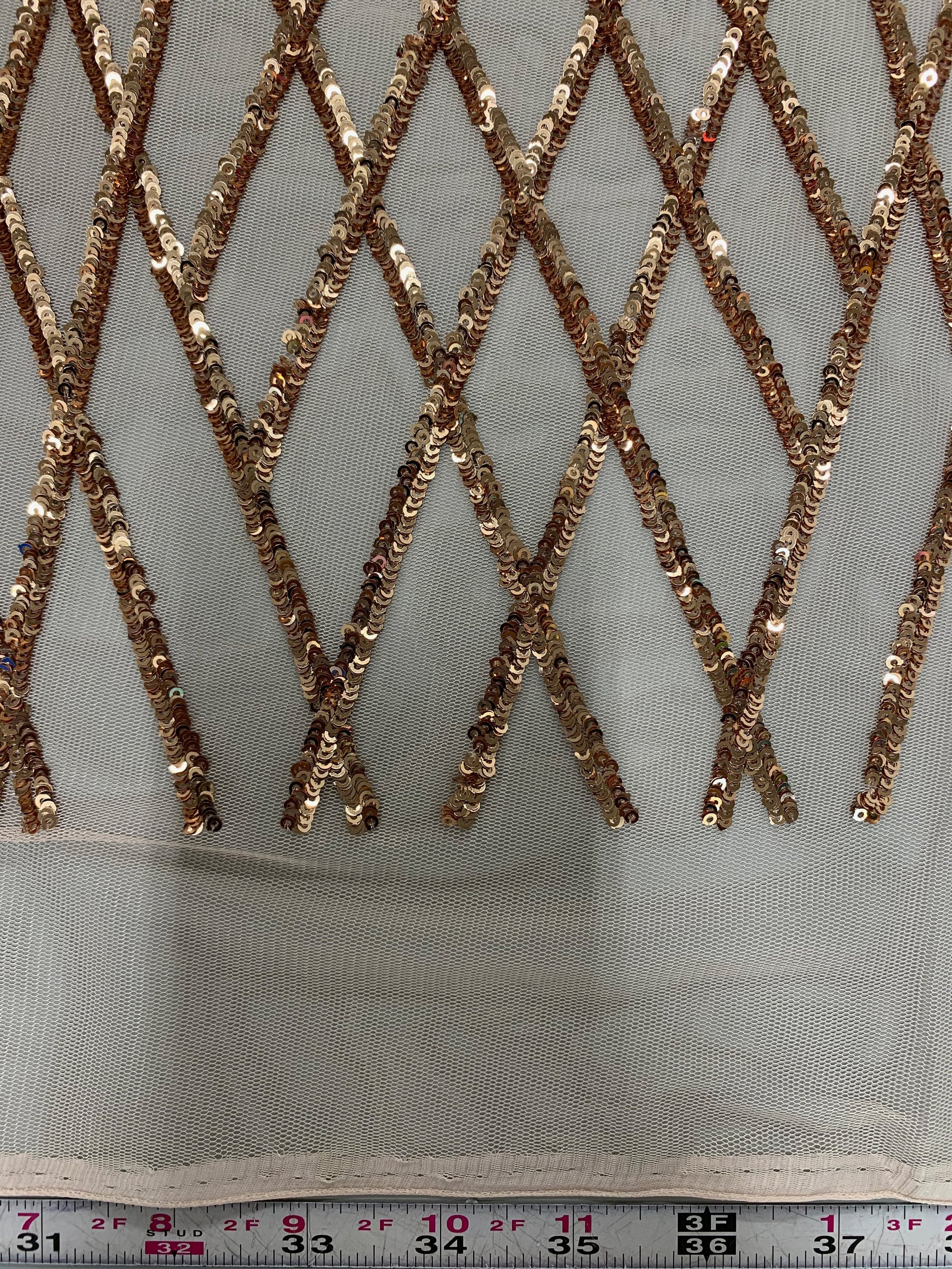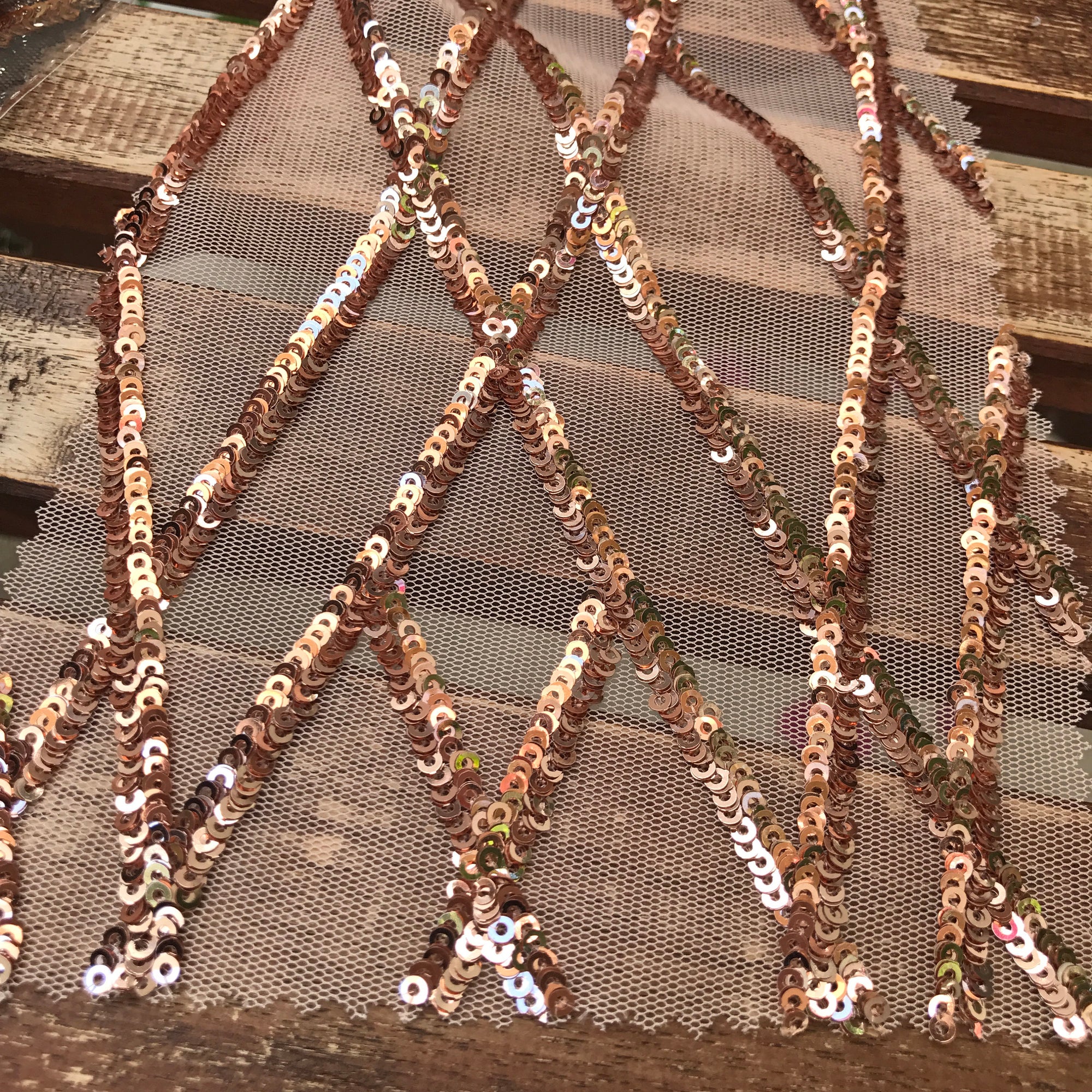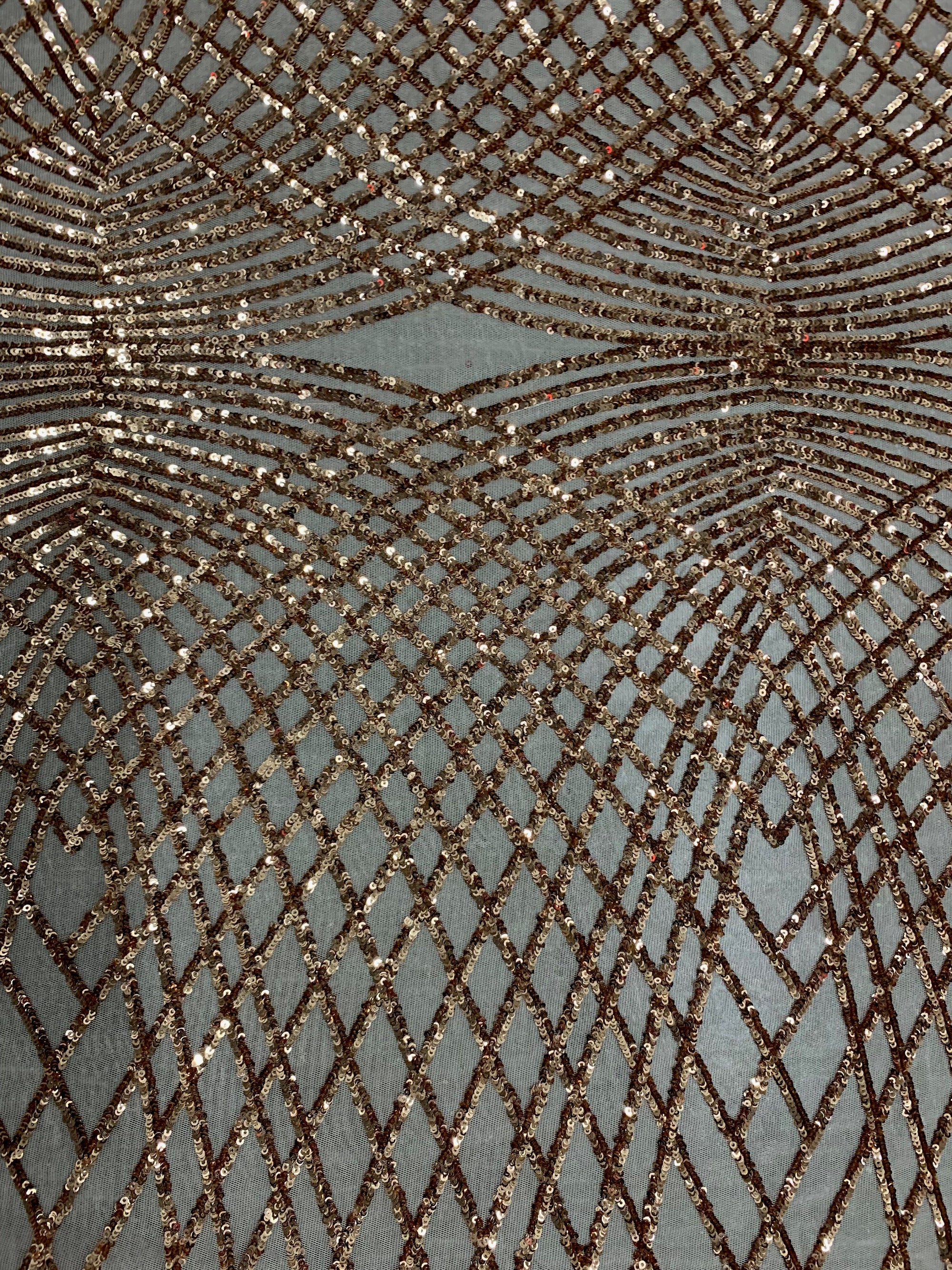 Jordyn COPPER Diamond Sequins on DUSTY ROSE Mesh Lace Fabric by the Yard - 10008