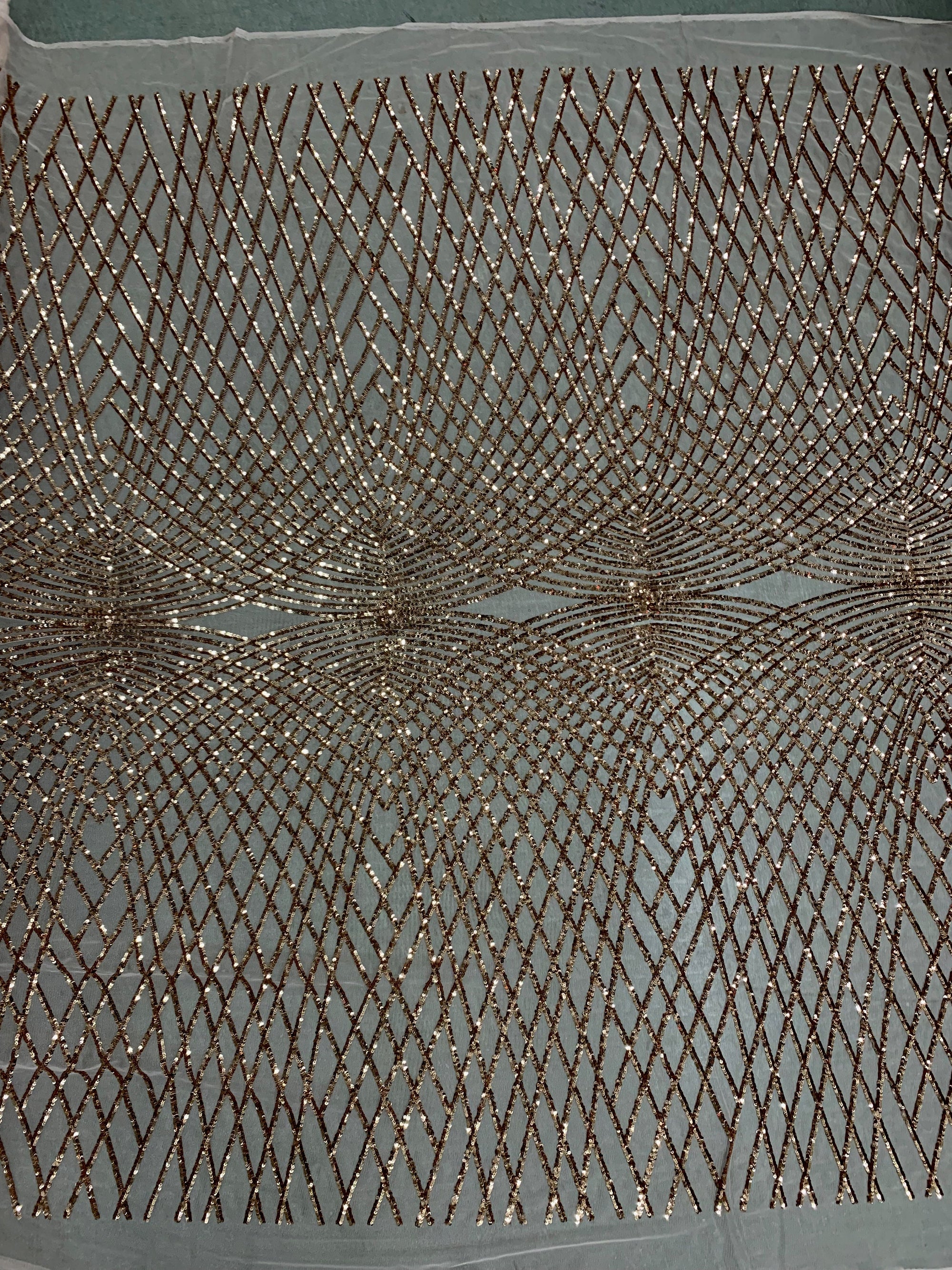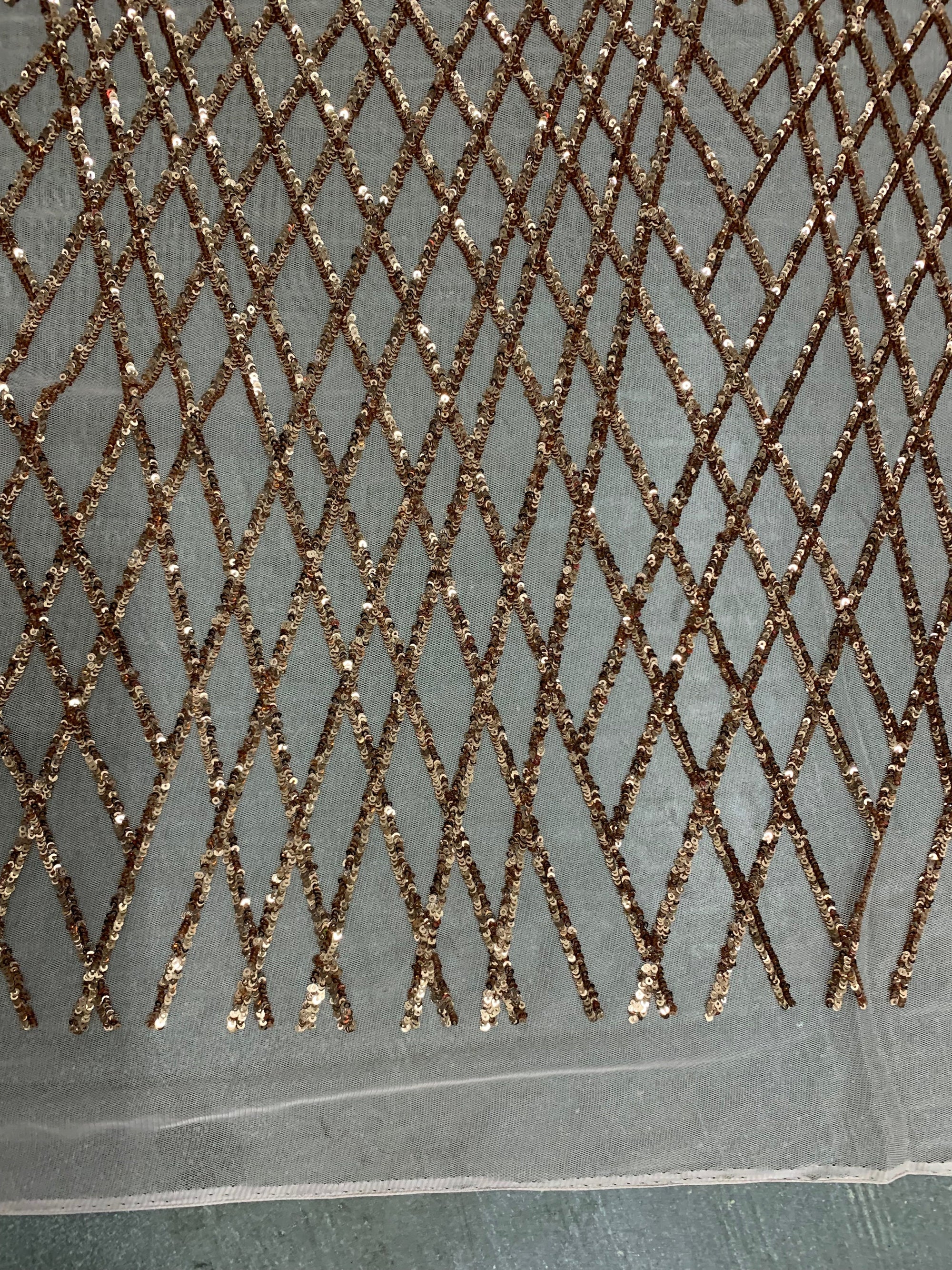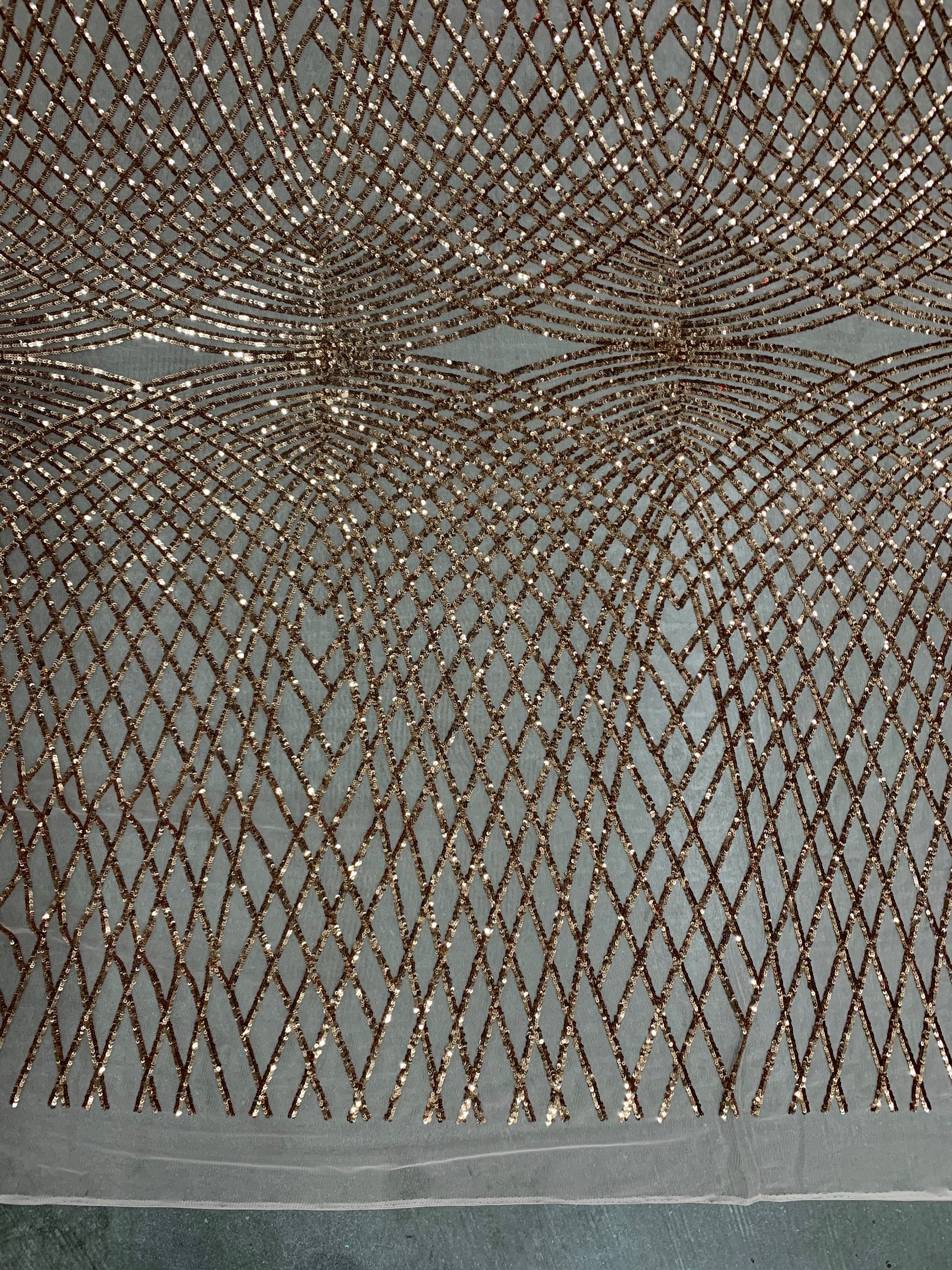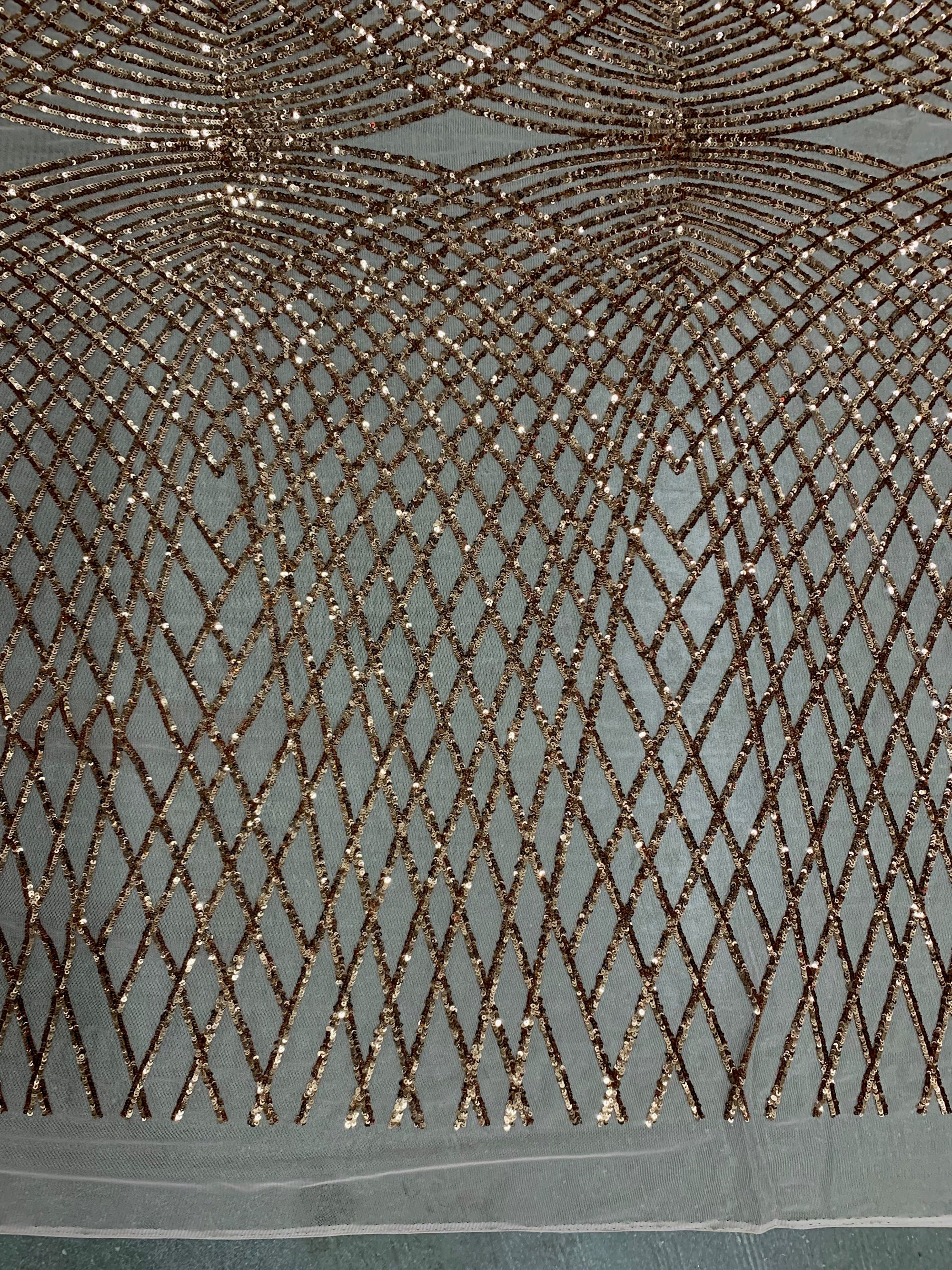 Jordyn COPPER Diamond Sequins on DUSTY ROSE Mesh Lace Fabric by the Yard - 10008