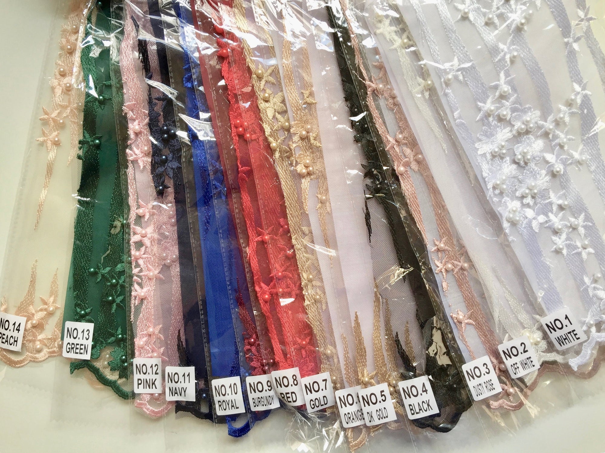 Content: 100% polyester Stretch: Minimal to none Width: 50 to 52 inches Edge: Scalloped on both edges Uses: Wedding dress/gown, evening gown, formal wear, dress, tops, skirts, costumes, decorations, crafts, etc. Note: Lining is not included. For picture purposes only.