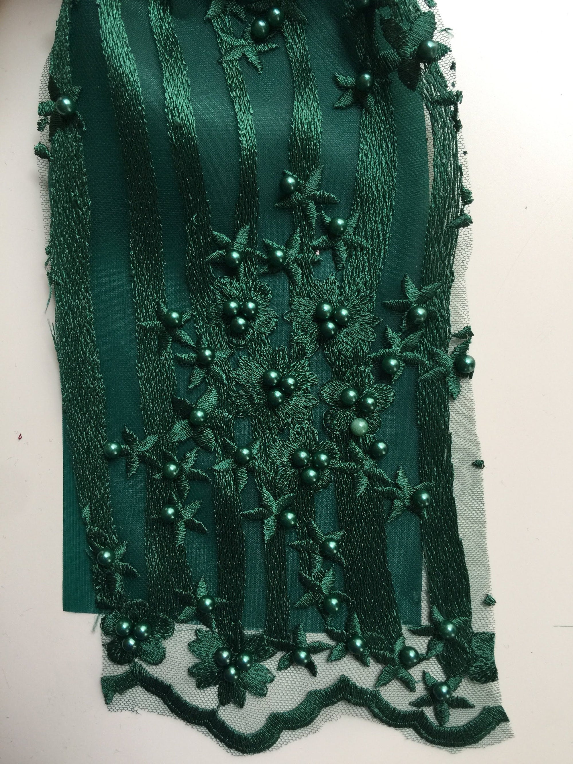Kelsey HUNTER GREEN Floral Beaded Lace Embroidery on Mesh Fabric by the Yard - 10093
