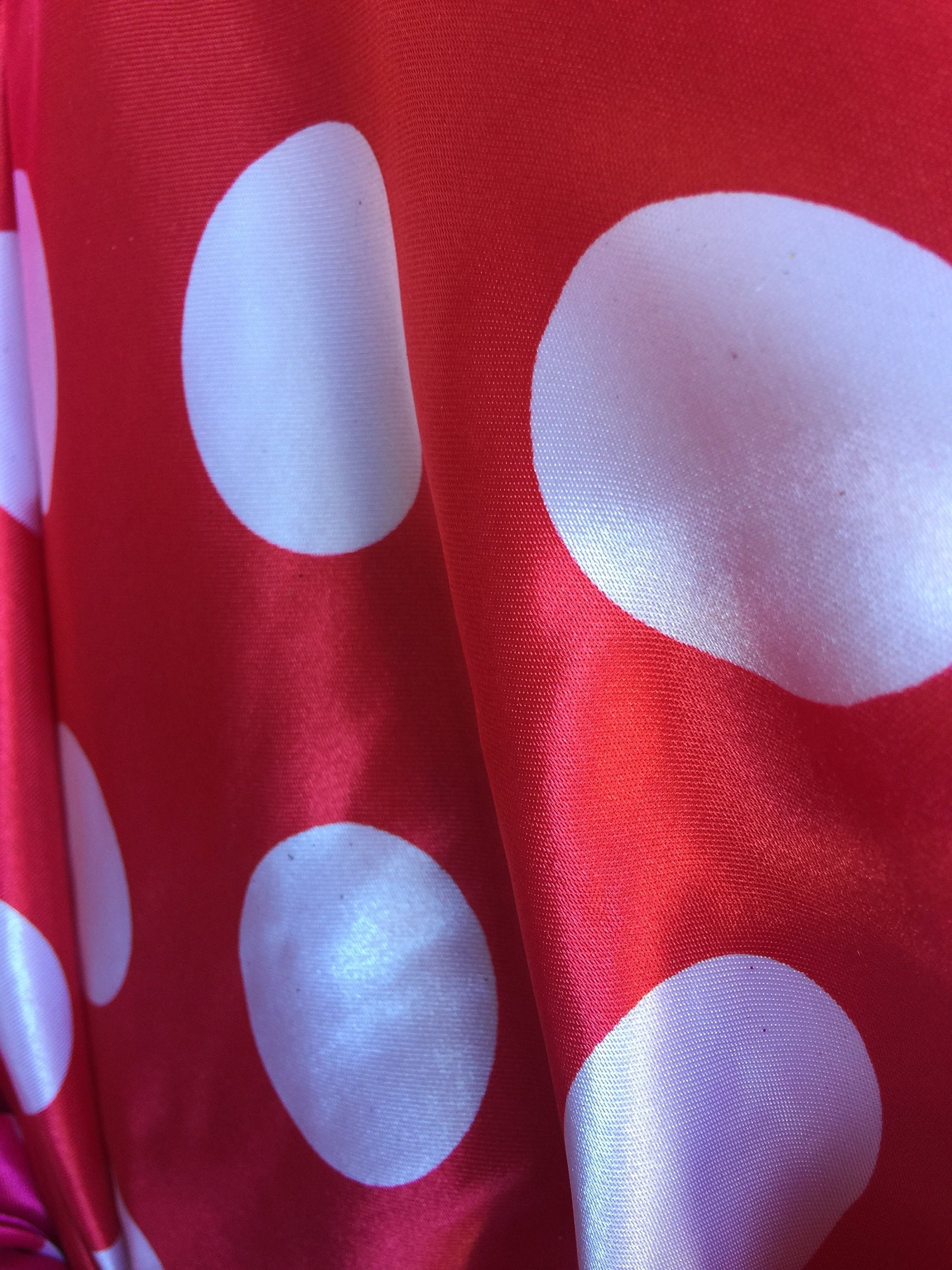 Lana 1.6" WHITE Polka Dots on RED Polyester Light Weight Satin Fabric by the Yard - 10071