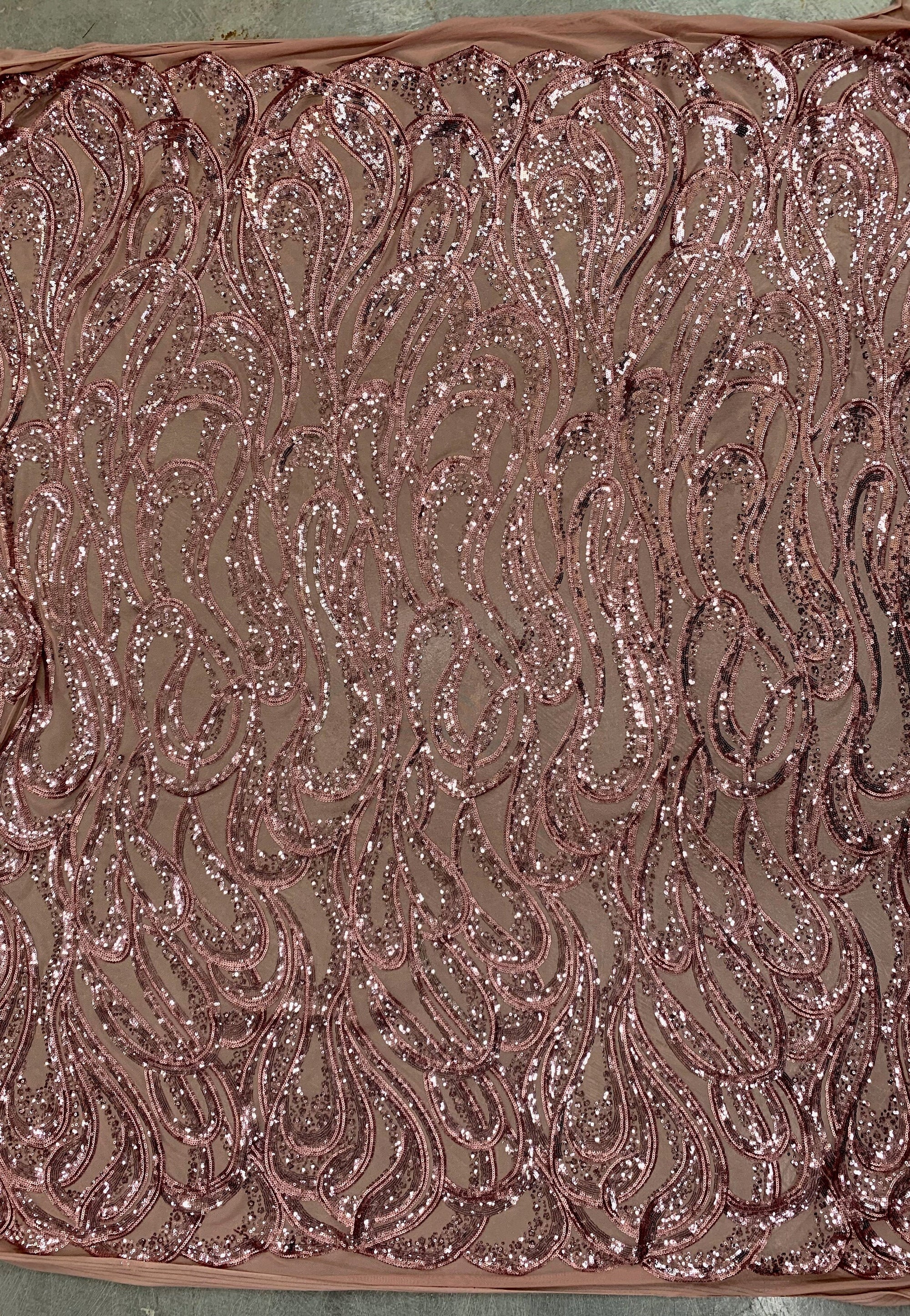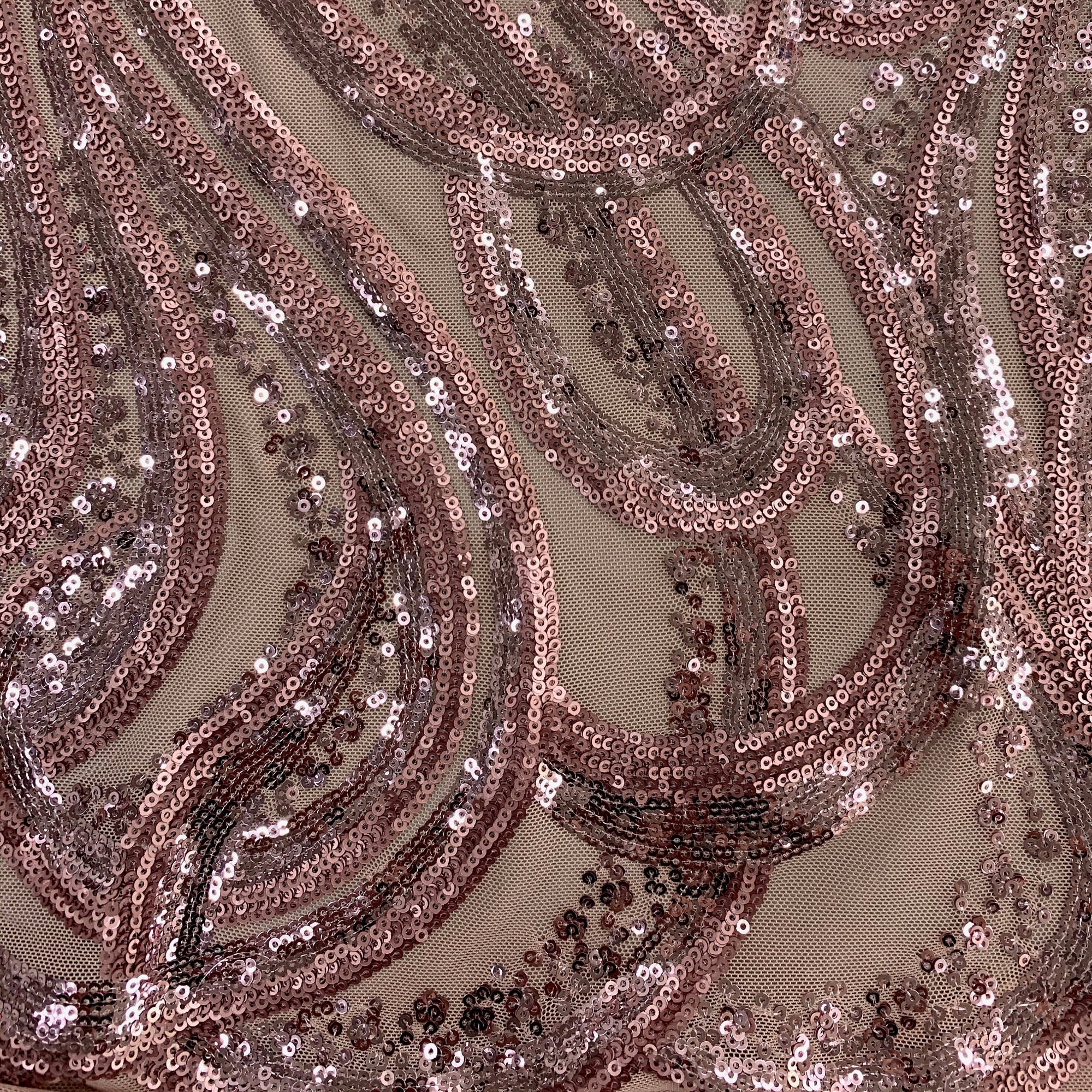 Lorelei DUSTY ROSE Swirls Sequins on Mesh Lace Fabric by the Yard - 10133
