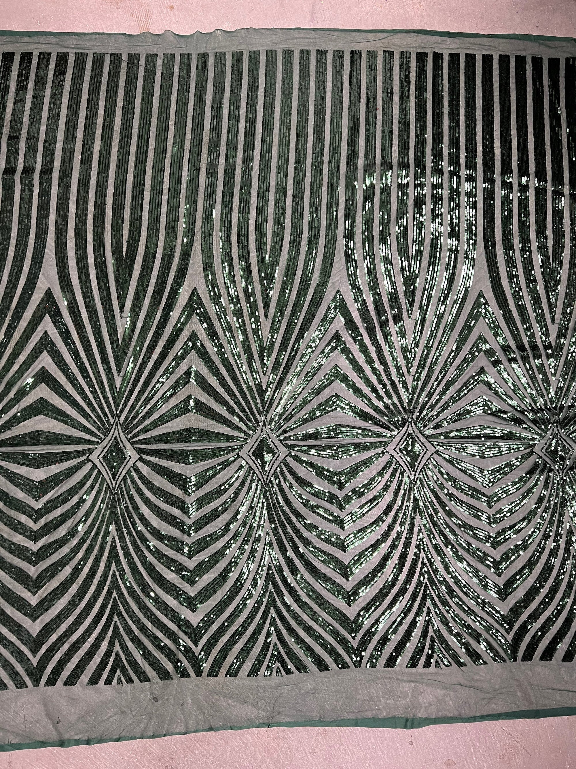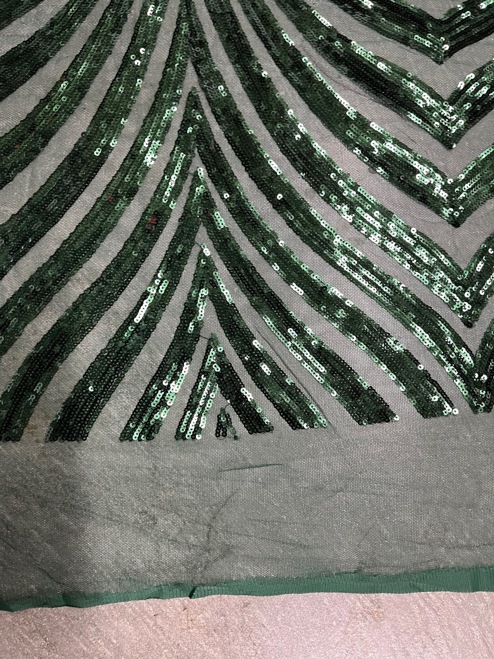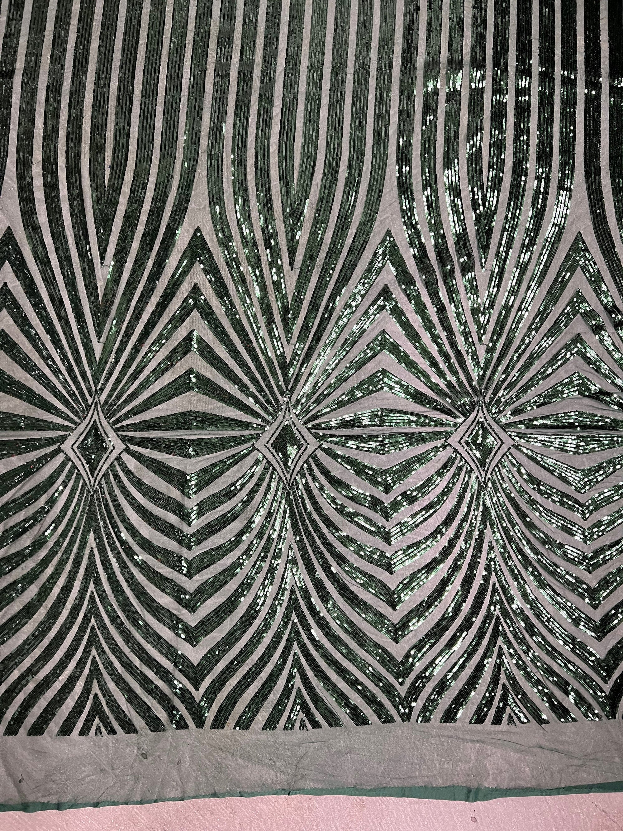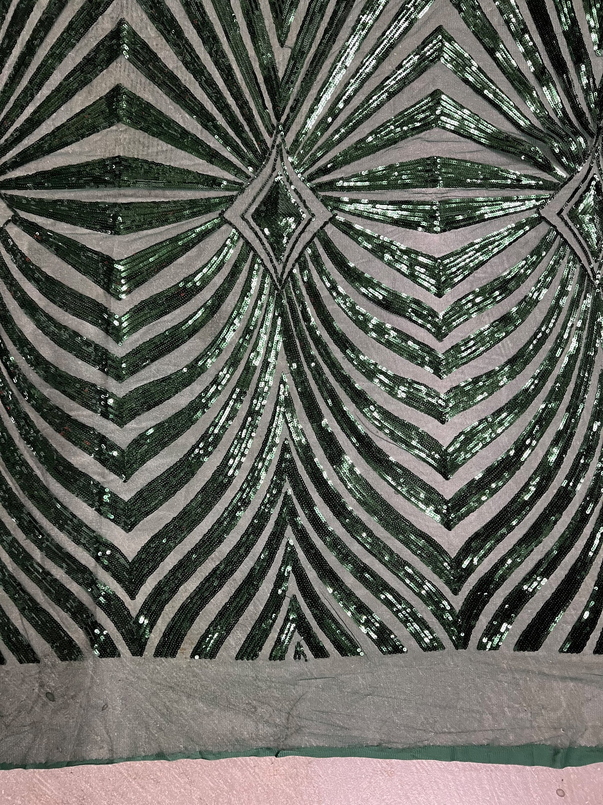 Maia HUNTER GREEN Geometric Sequins on Mesh Lace Fabric by the Yard - 10138