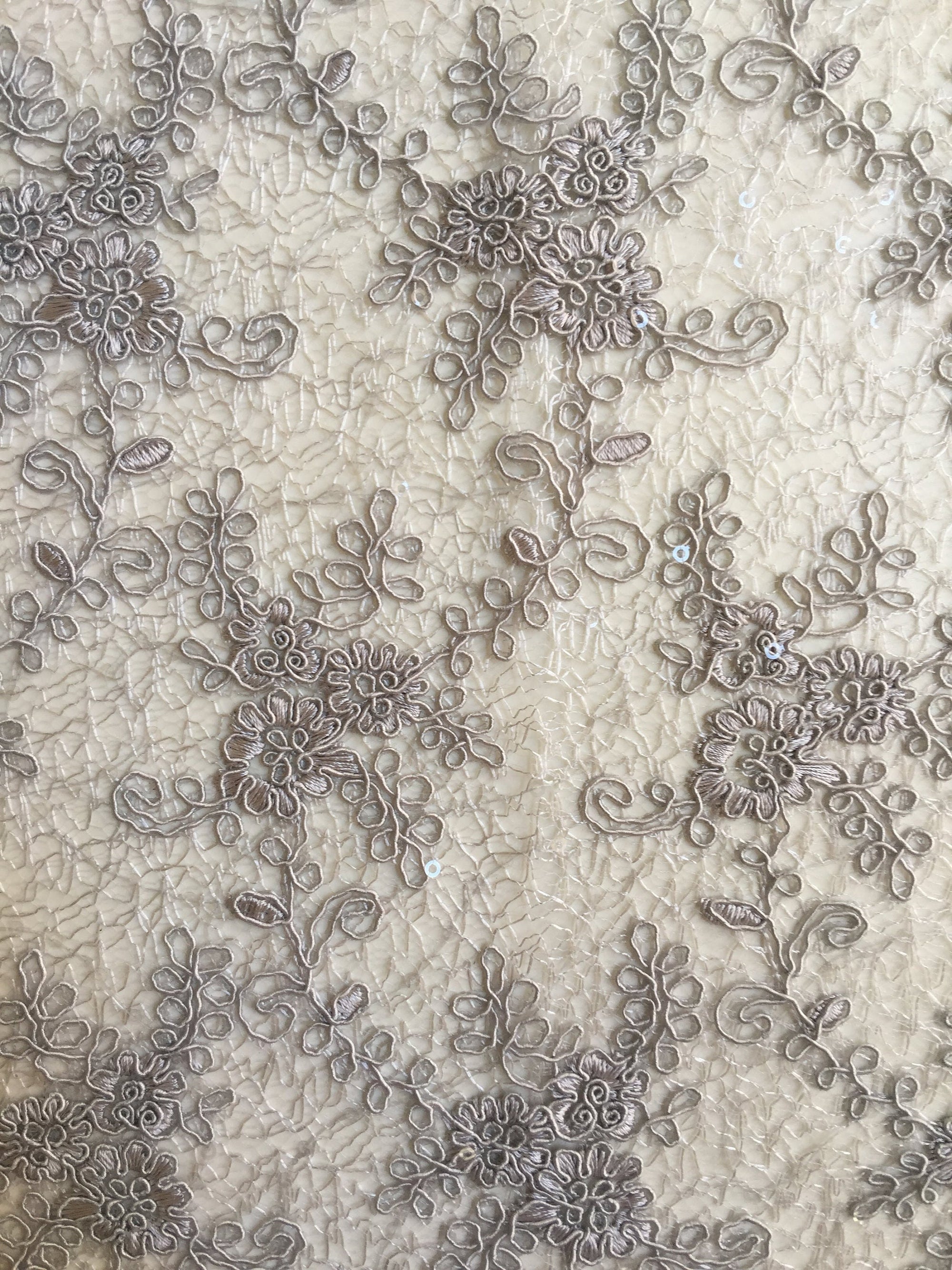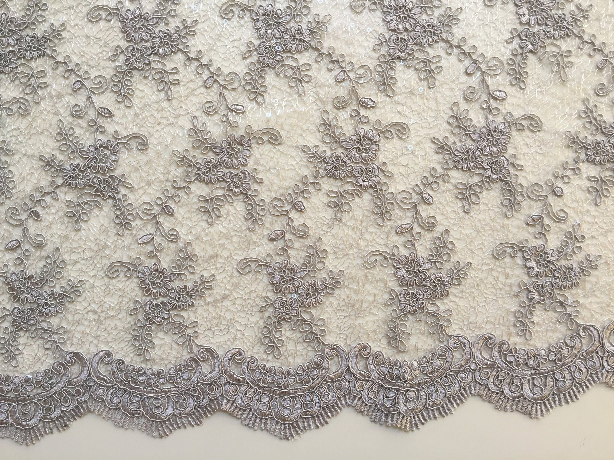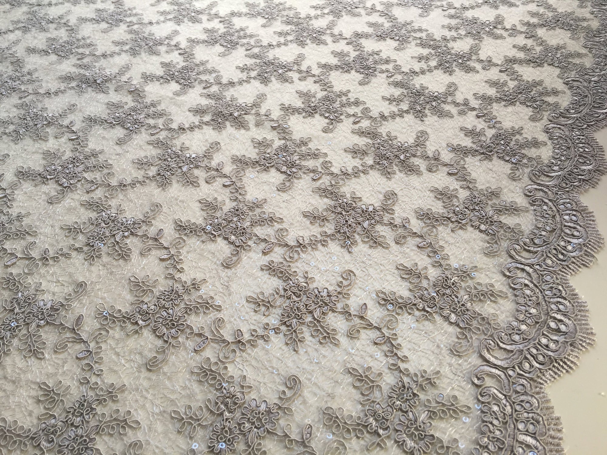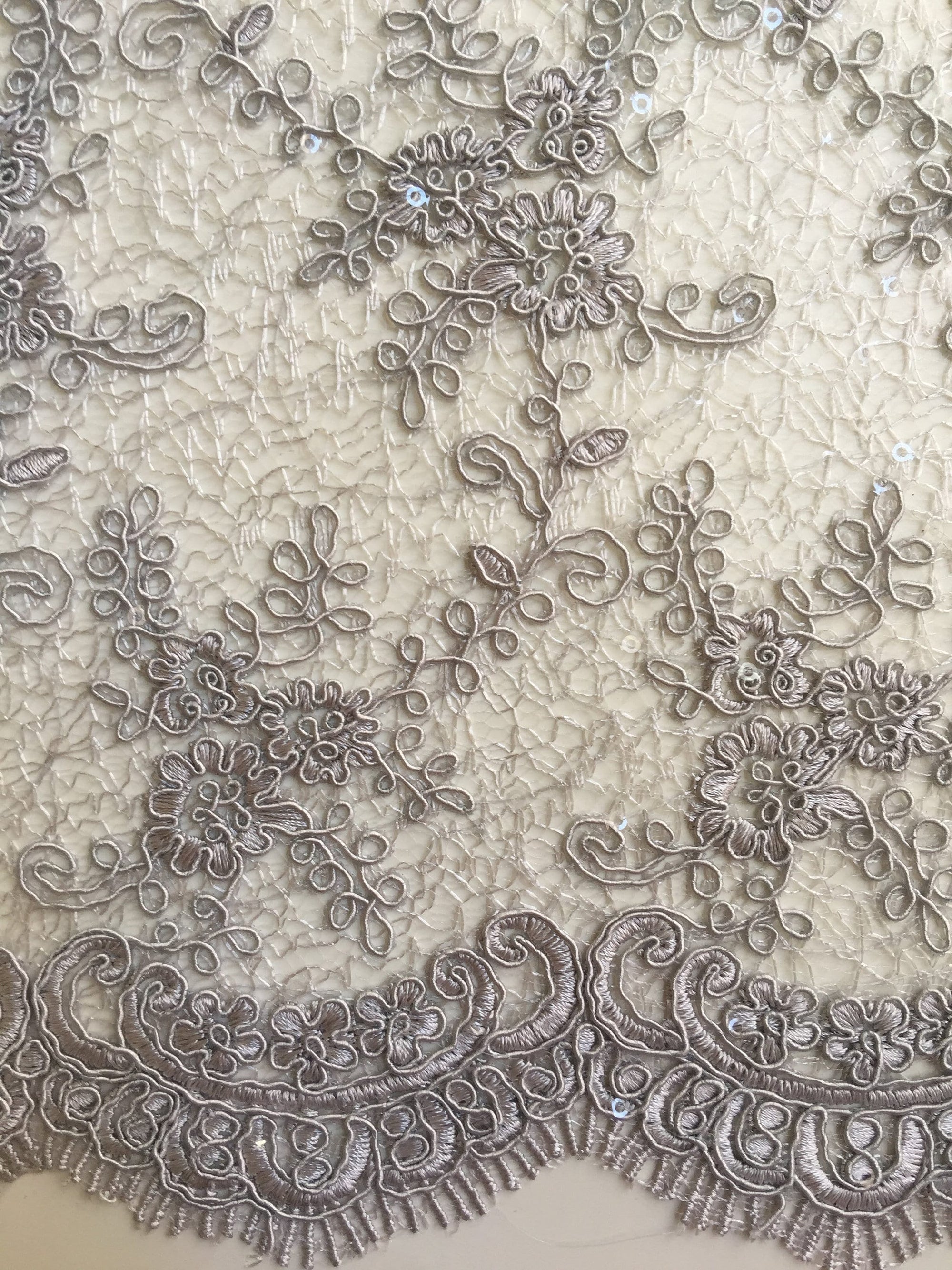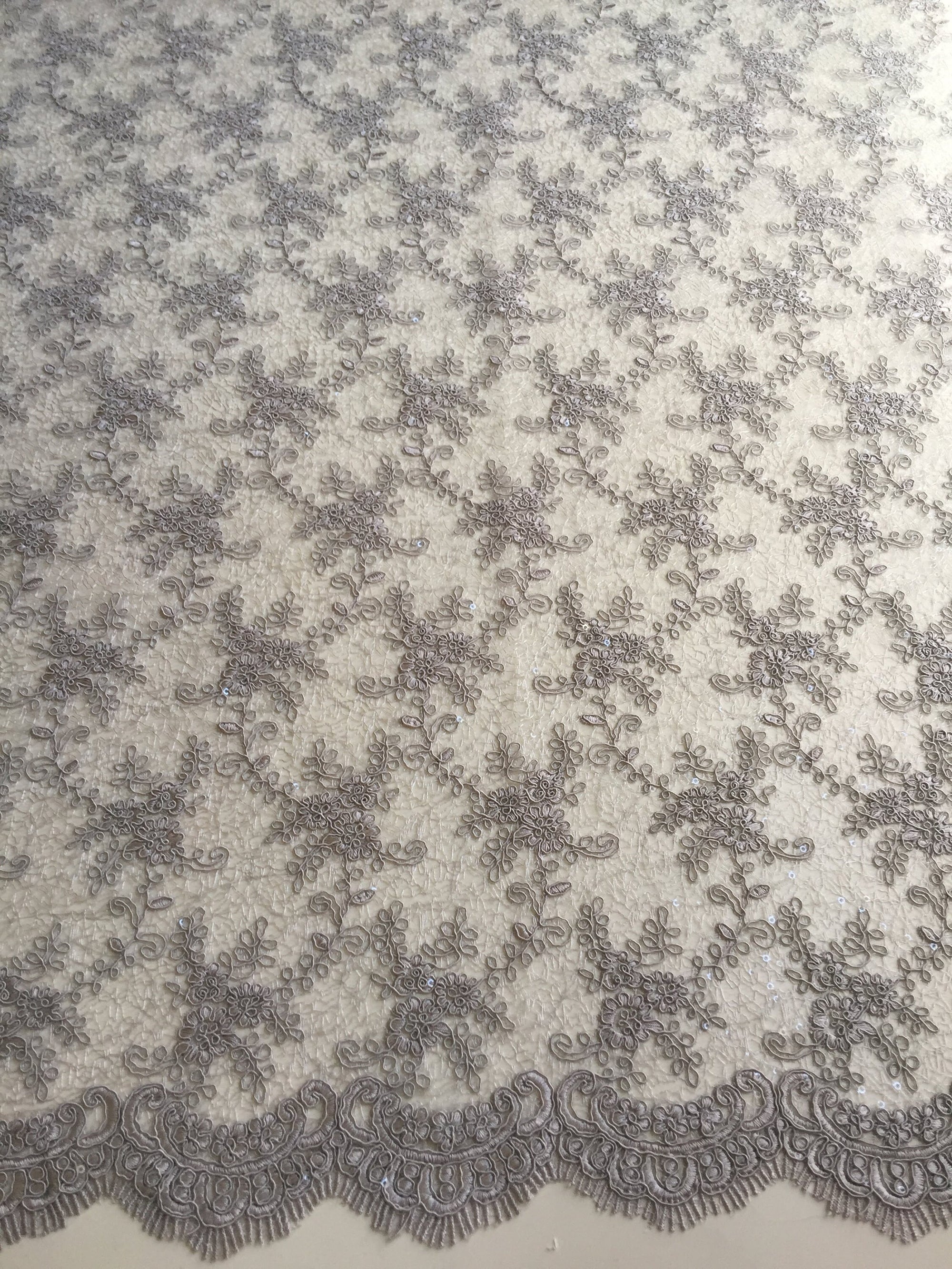 Megan GREY Polyester Corded Floral Embroidery with Sequins on Web Mesh Lace Fabric by the Yard - 10109