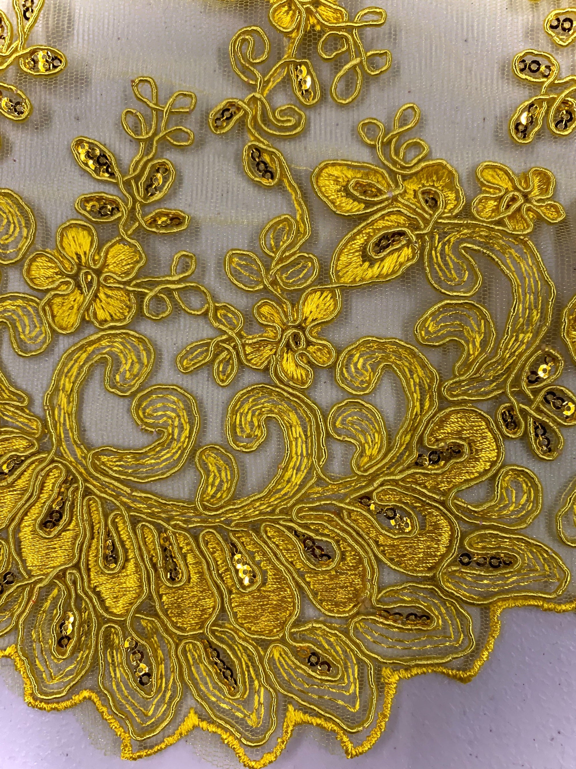 Melody BRIGHT YELLOW Polyester Floral Embroidery with Sequins on Mesh Lace Fabric by the Yard for Gown, Wedding, Bridesmaid, Prom - 10002