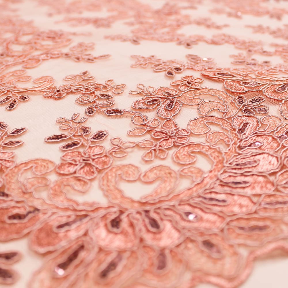 Melody CORAL Polyester Floral Embroidery with Sequins on Mesh Lace Fabric by the Yard for Gown, Wedding, Bridesmaid, Prom - 10002