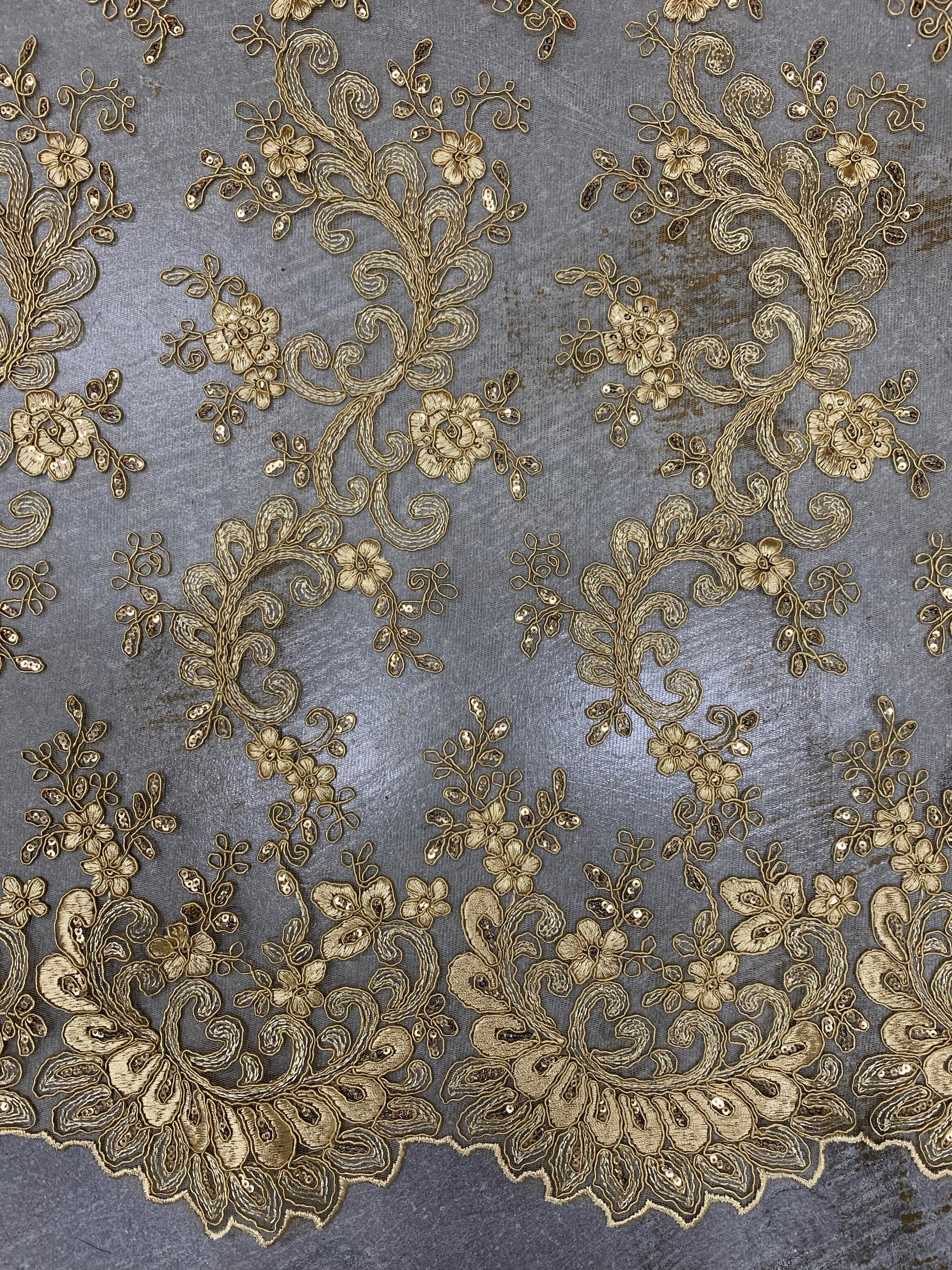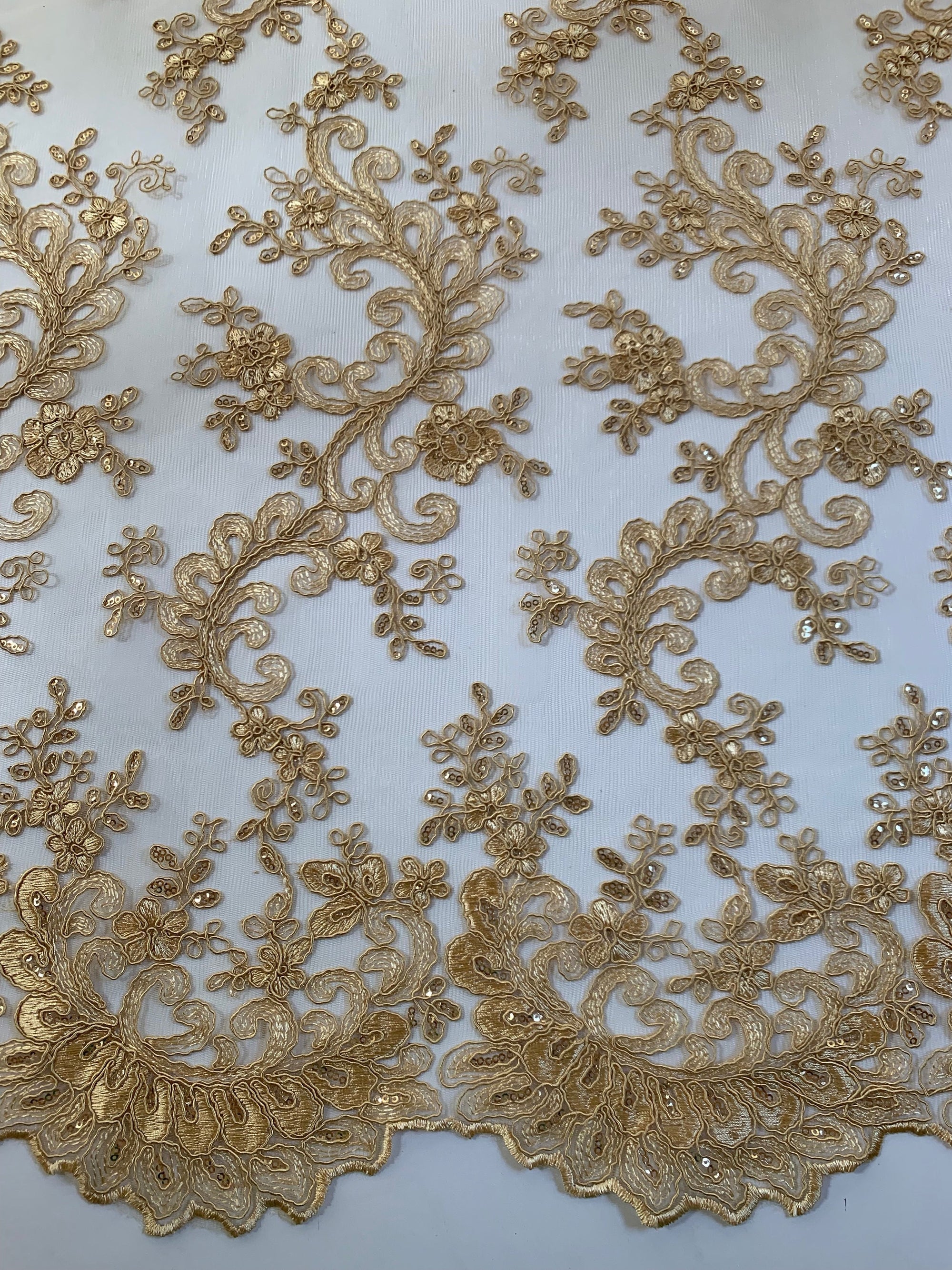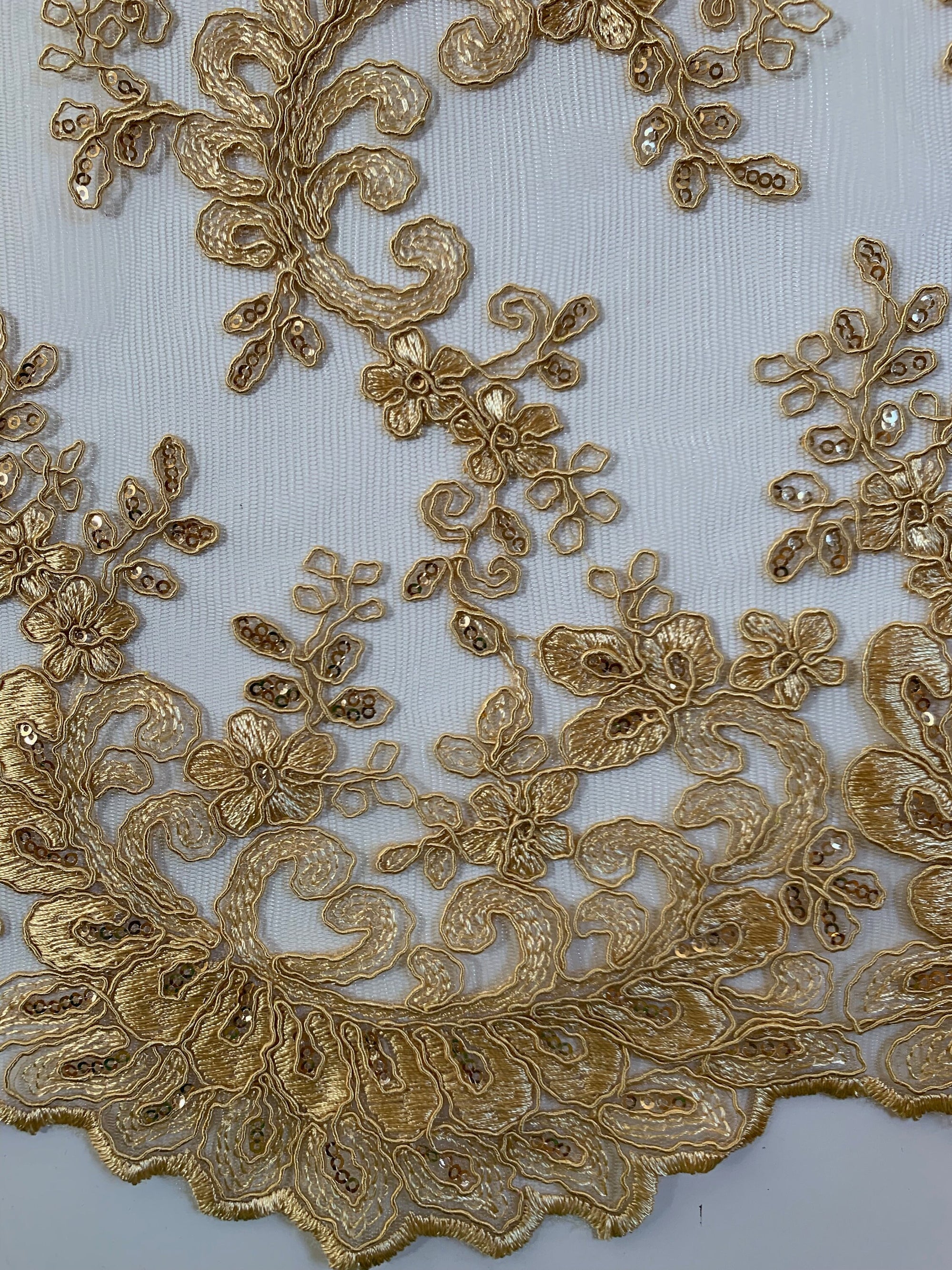 Melody GOLD Polyester Floral Embroidery with Sequins on Mesh Lace Fabric by the Yard for Gown, Wedding, Bridesmaid, Prom - 10002