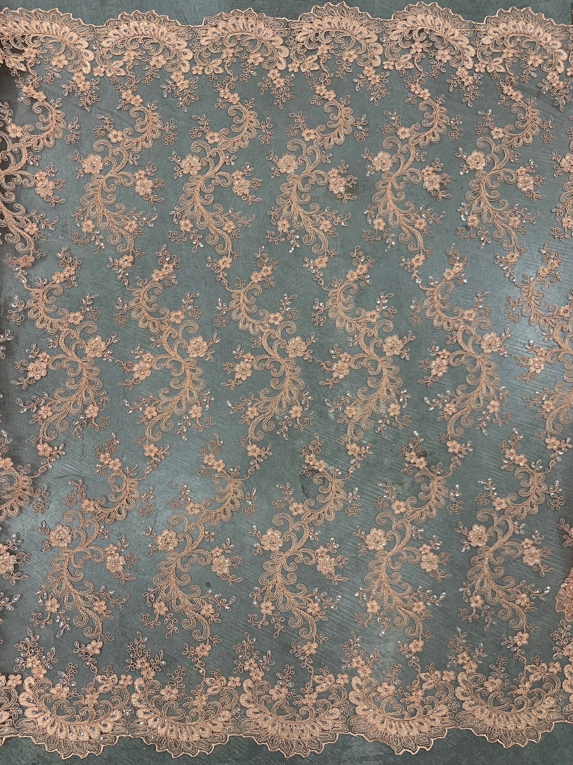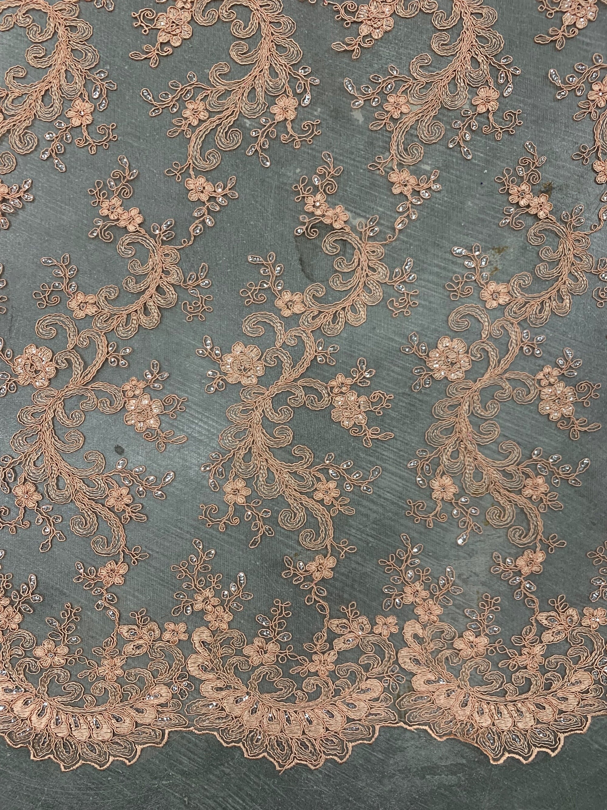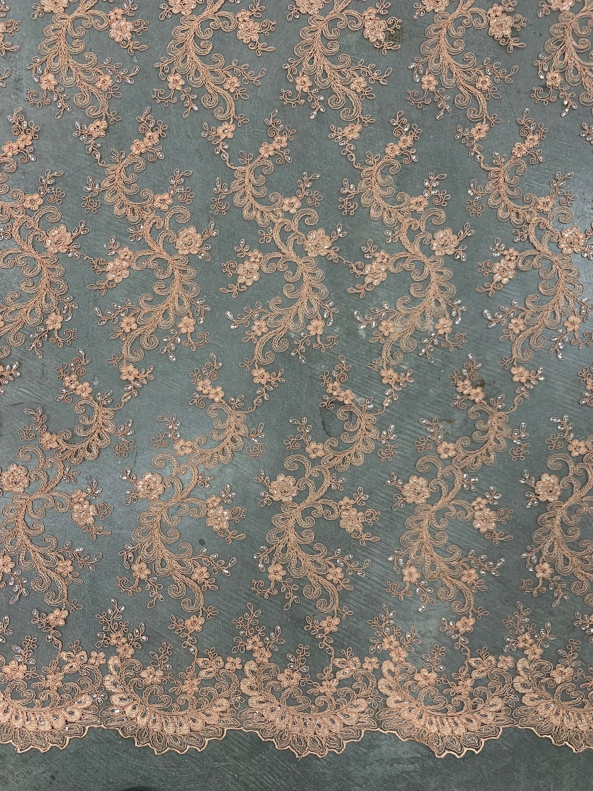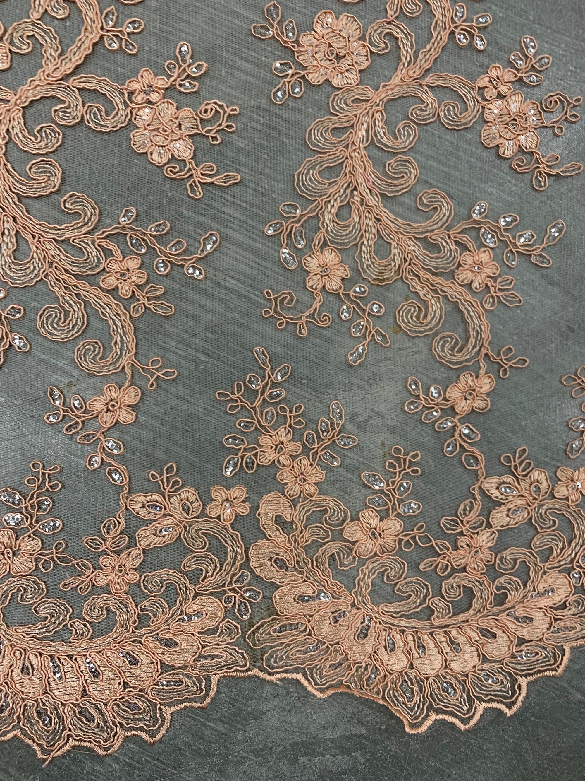 Melody PEACH Polyester Floral Embroidery with Sequins on Mesh Lace Fabric by the Yard for Gown, Wedding, Bridesmaid, Prom - 10002