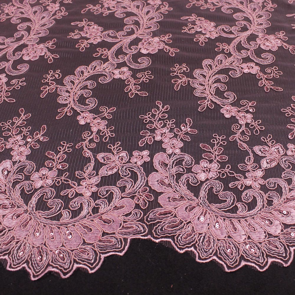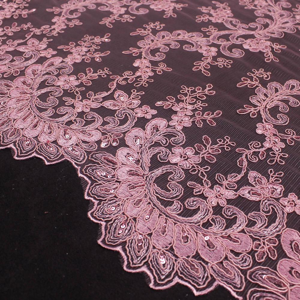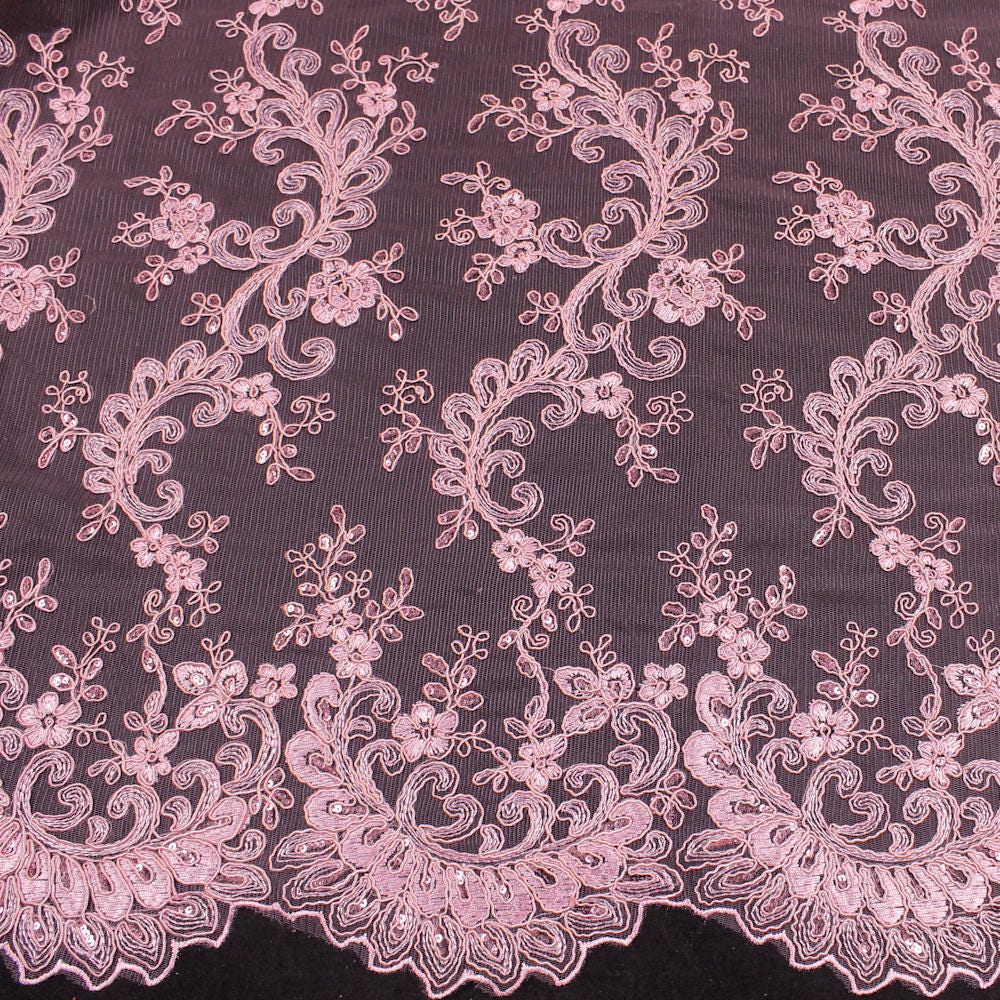 Melody PINK Polyester Floral Embroidery with Sequins on Mesh Lace Fabric by the Yard for Gown, Wedding, Bridesmaid, Prom - 10002