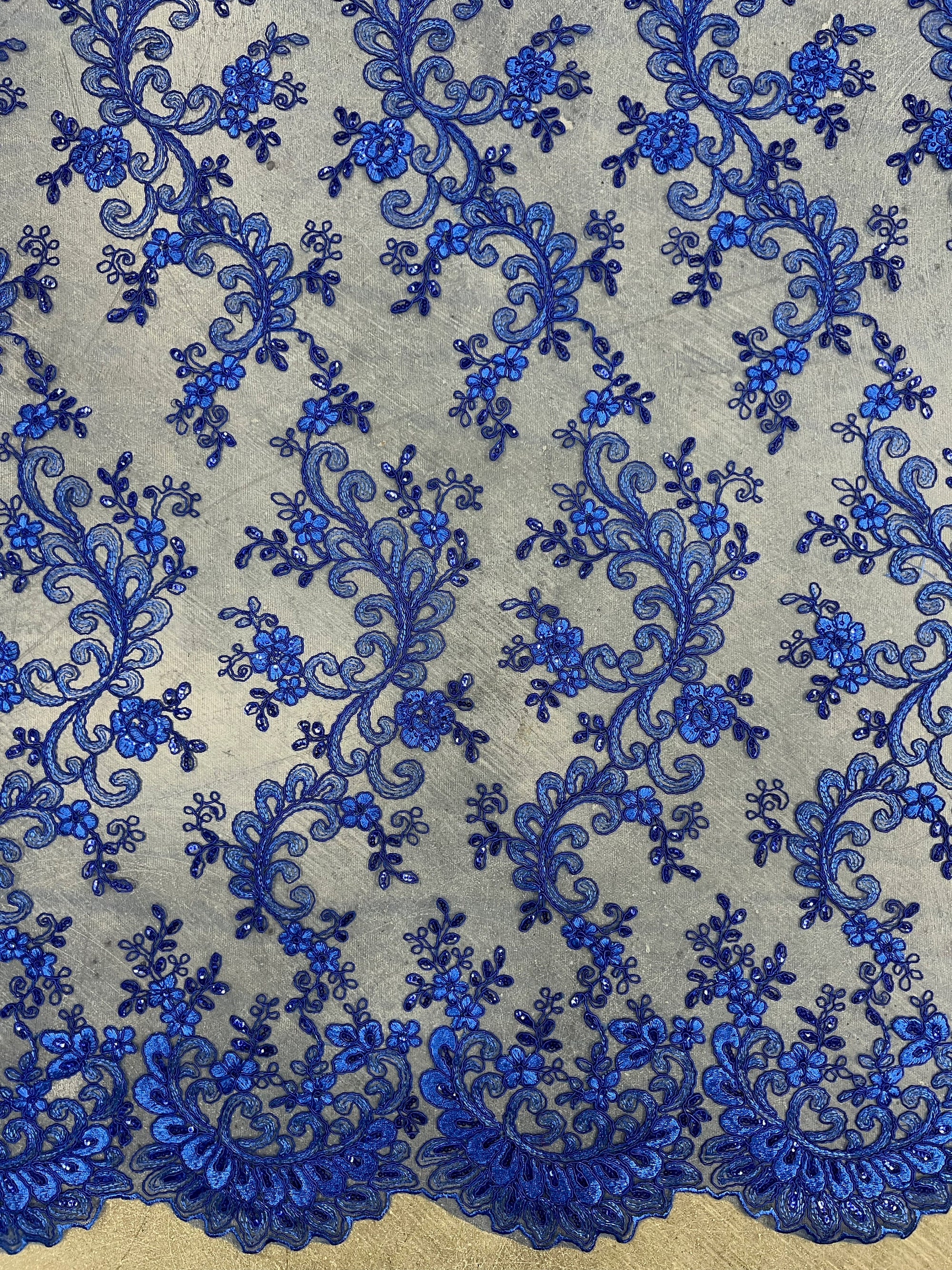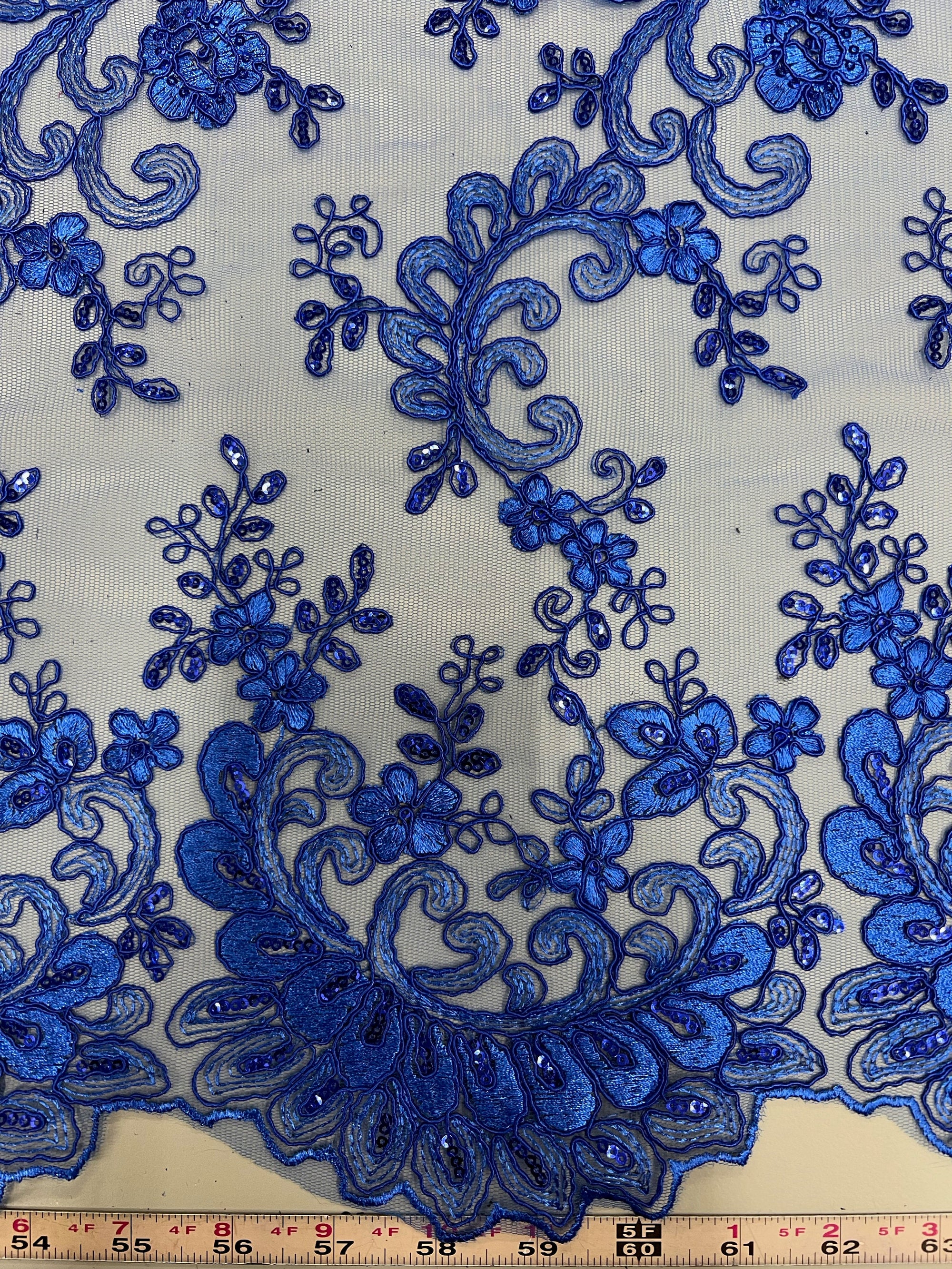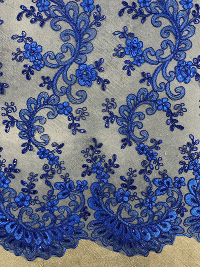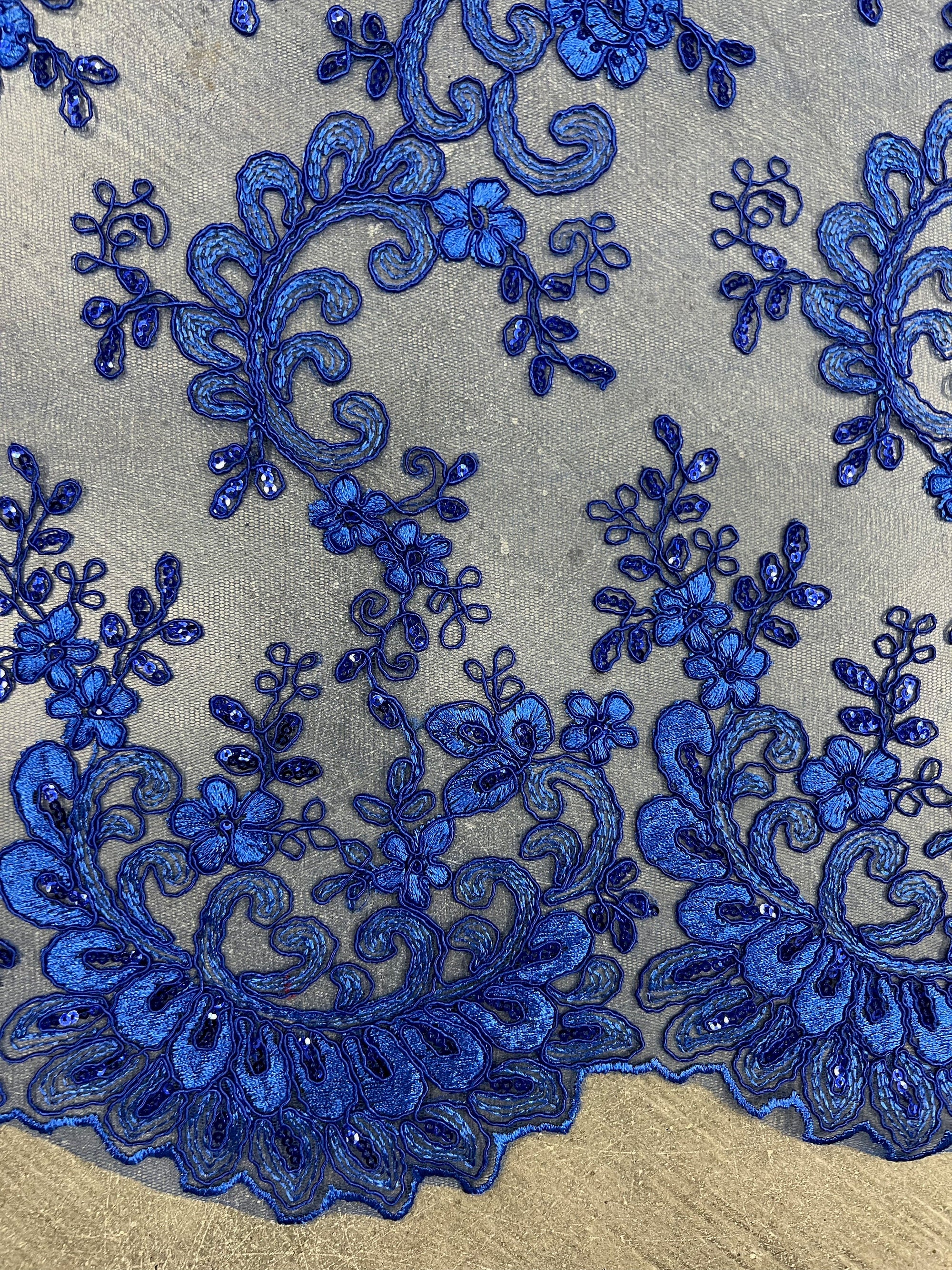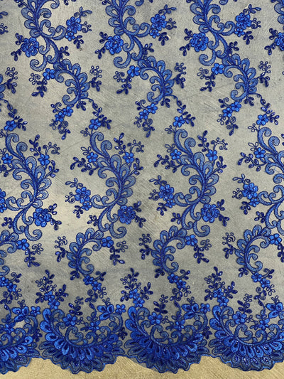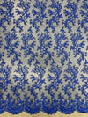 Melody ROYAL BLUE Polyester Floral Embroidery with Sequins on Mesh Lace Fabric by the Yard for Gown, Wedding, Bridesmaid, Prom - 10002