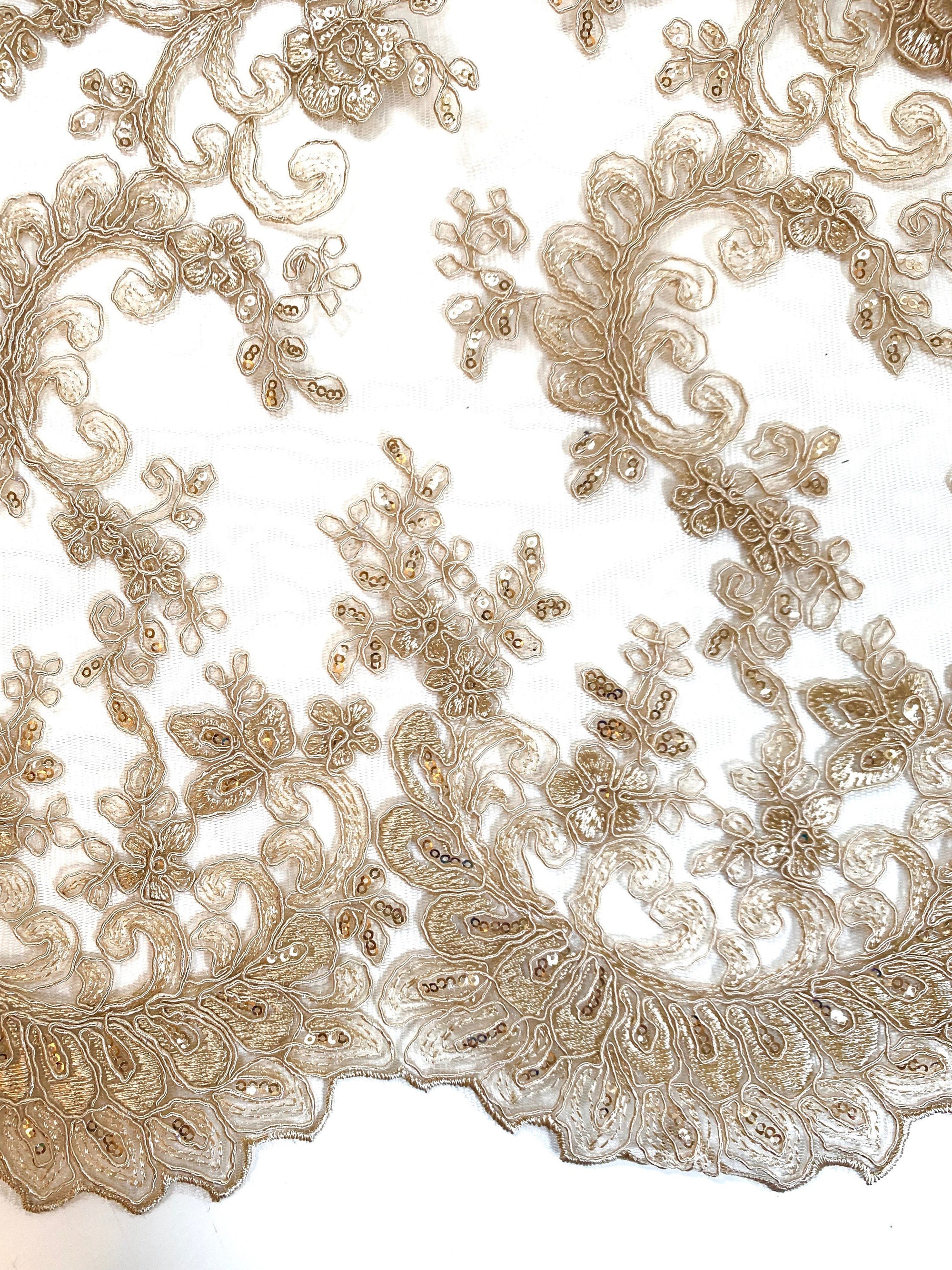 Melody TAUPE Polyester Floral Embroidery with Sequins on Mesh Lace Fabric by the Yard for Gown, Wedding, Bridesmaid, Prom - 10002