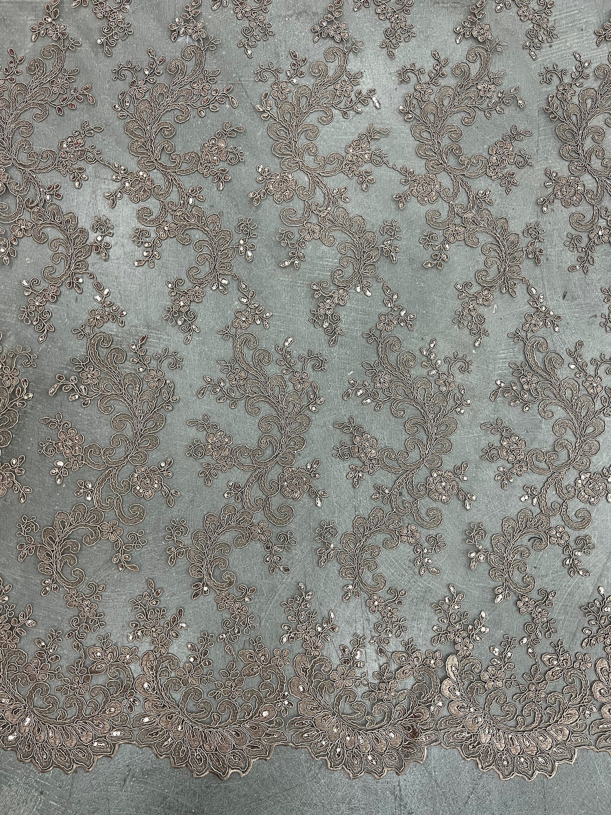 Melody TOFFEE Polyester Floral Embroidery with Sequins on Mesh Lace Fabric by the Yard - 10002