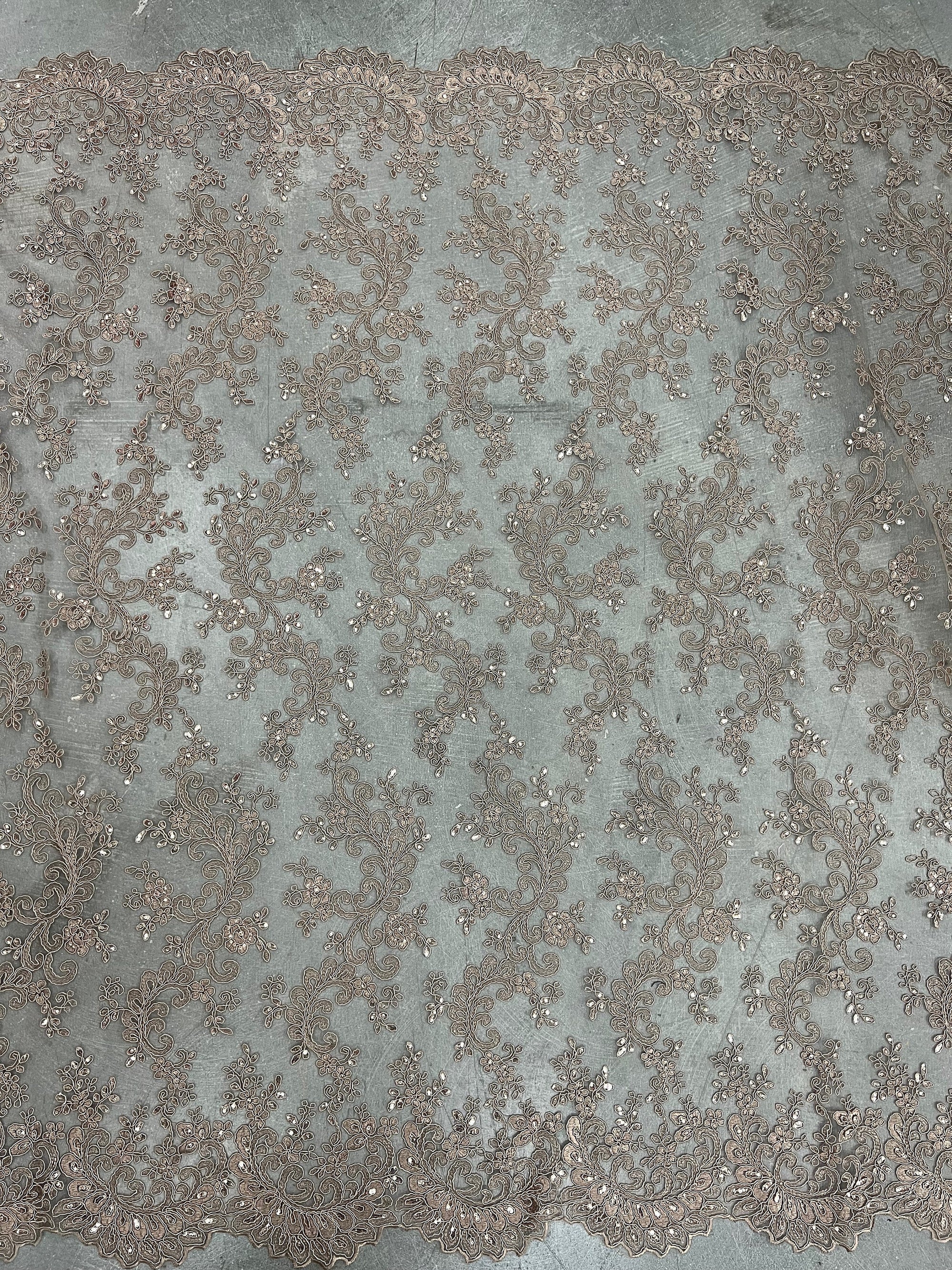 Melody TOFFEE Polyester Floral Embroidery with Sequins on Mesh Lace Fabric by the Yard for Gown, Wedding, Bridesmaid, Prom - 10002