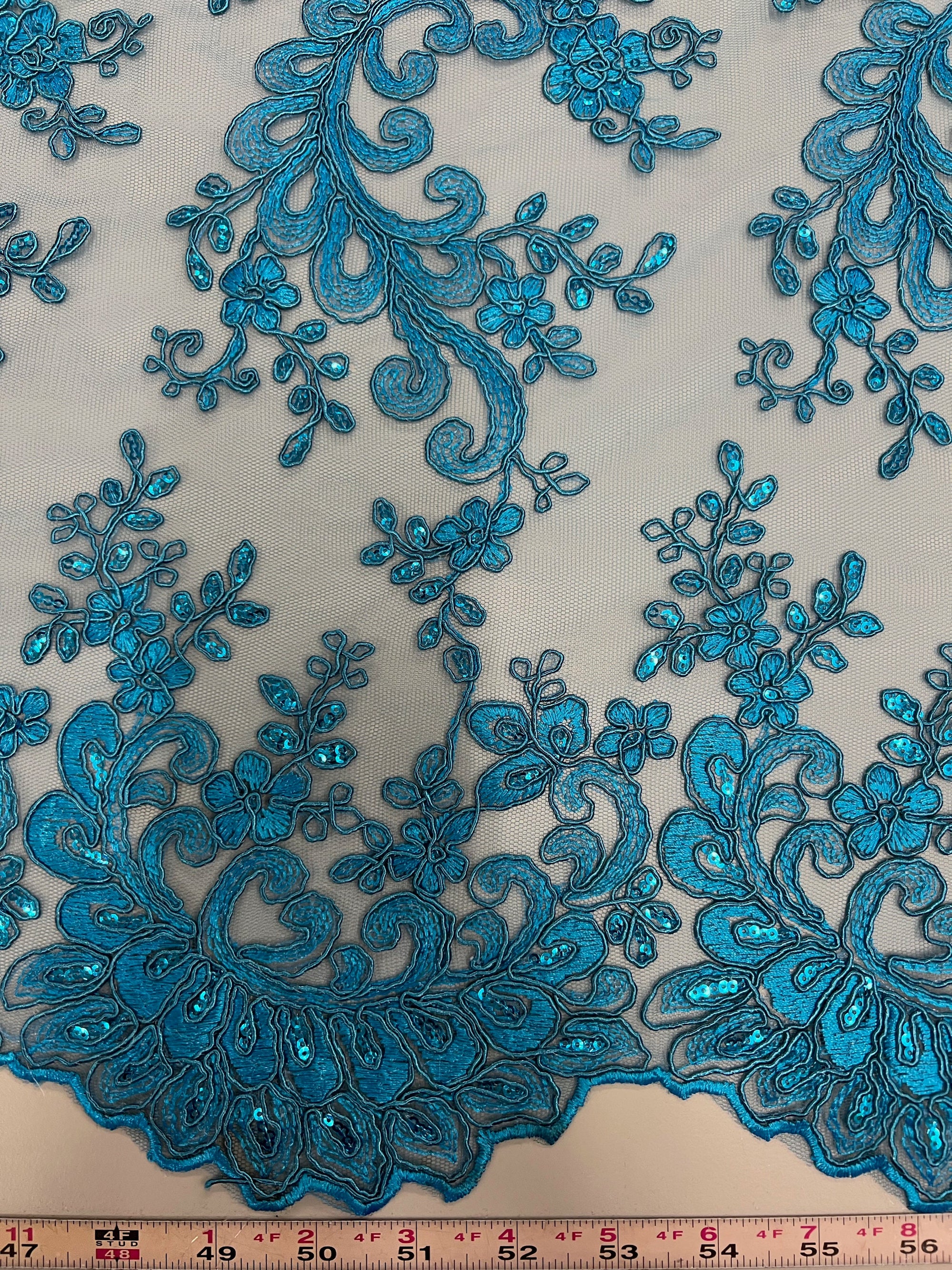 Melody TURQUOISE Polyester Floral Embroidery with Sequins on Mesh Lace Fabric by the Yard - 10002