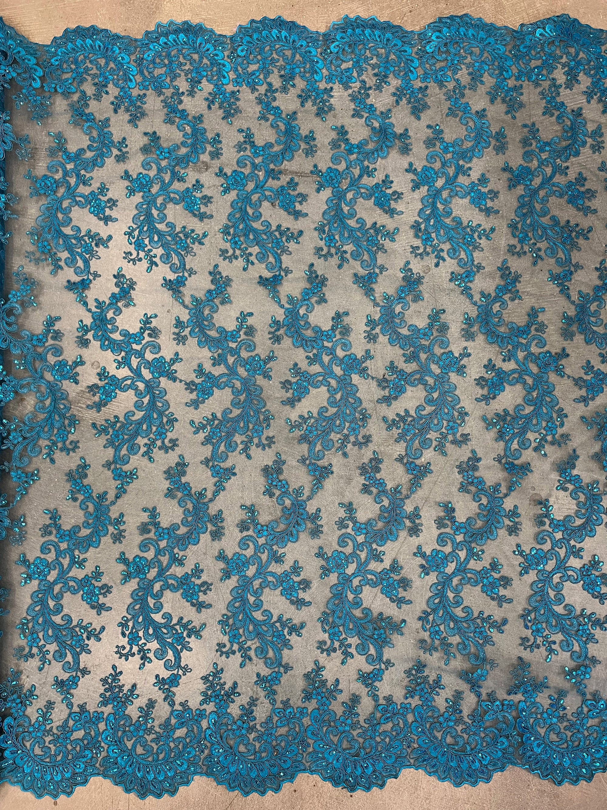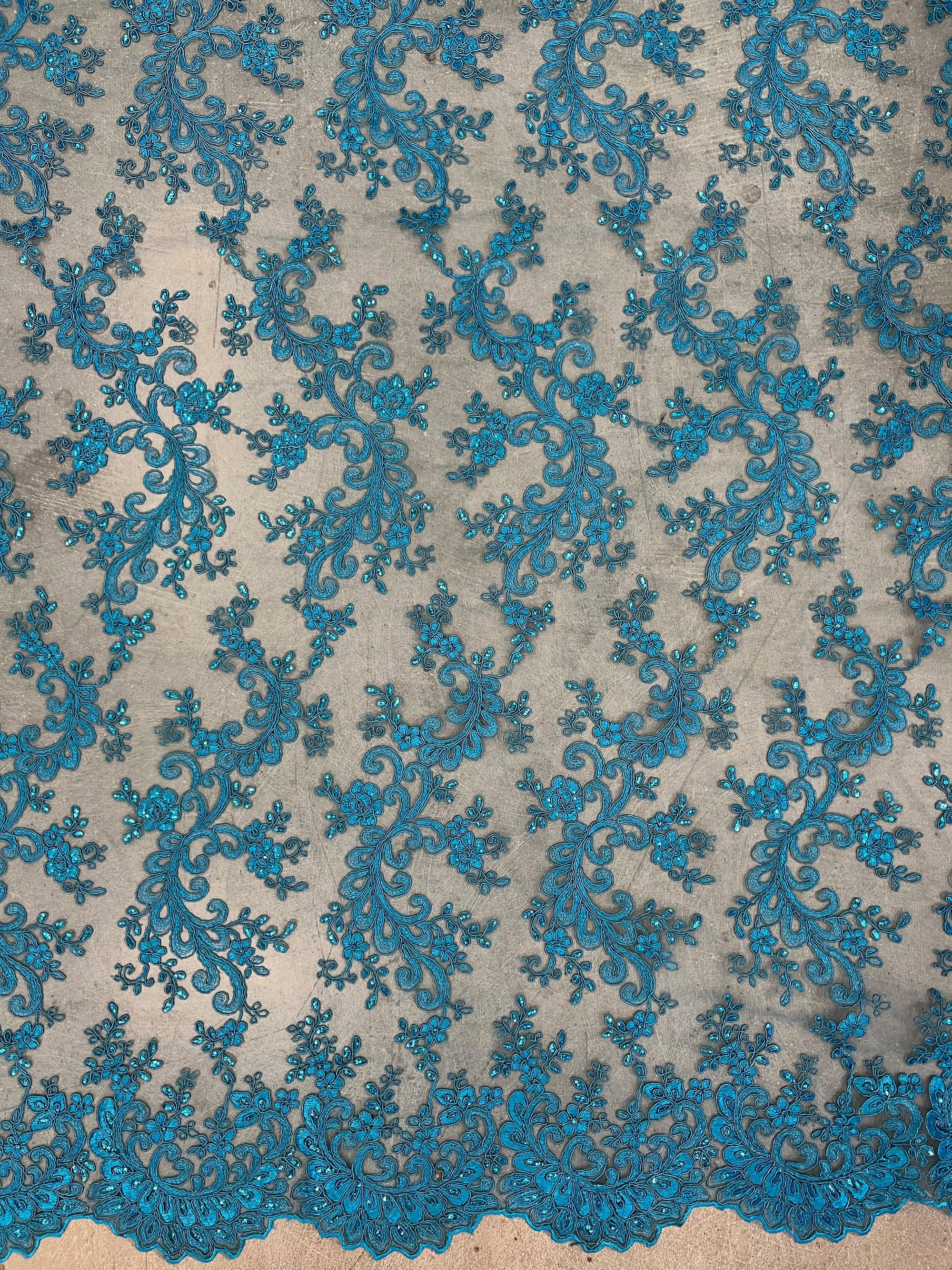 Melody TURQUOISE Polyester Floral Embroidery with Sequins on Mesh Lace Fabric by the Yard for Gown, Wedding, Bridesmaid, Prom - 10002