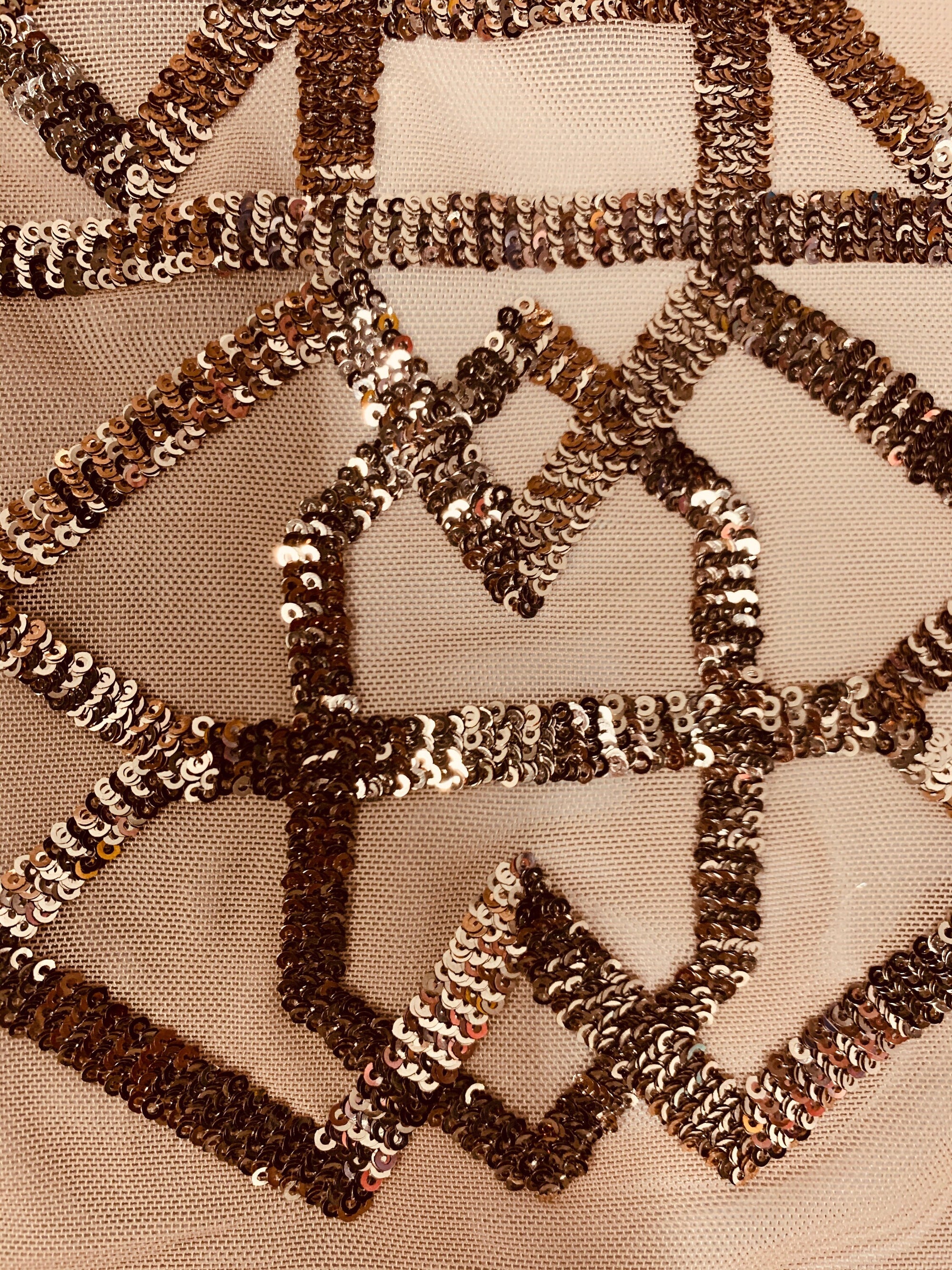Meredith BRONZE Trellis Pattern Sequins on Mesh Lace Fabric by the Yard - 10146