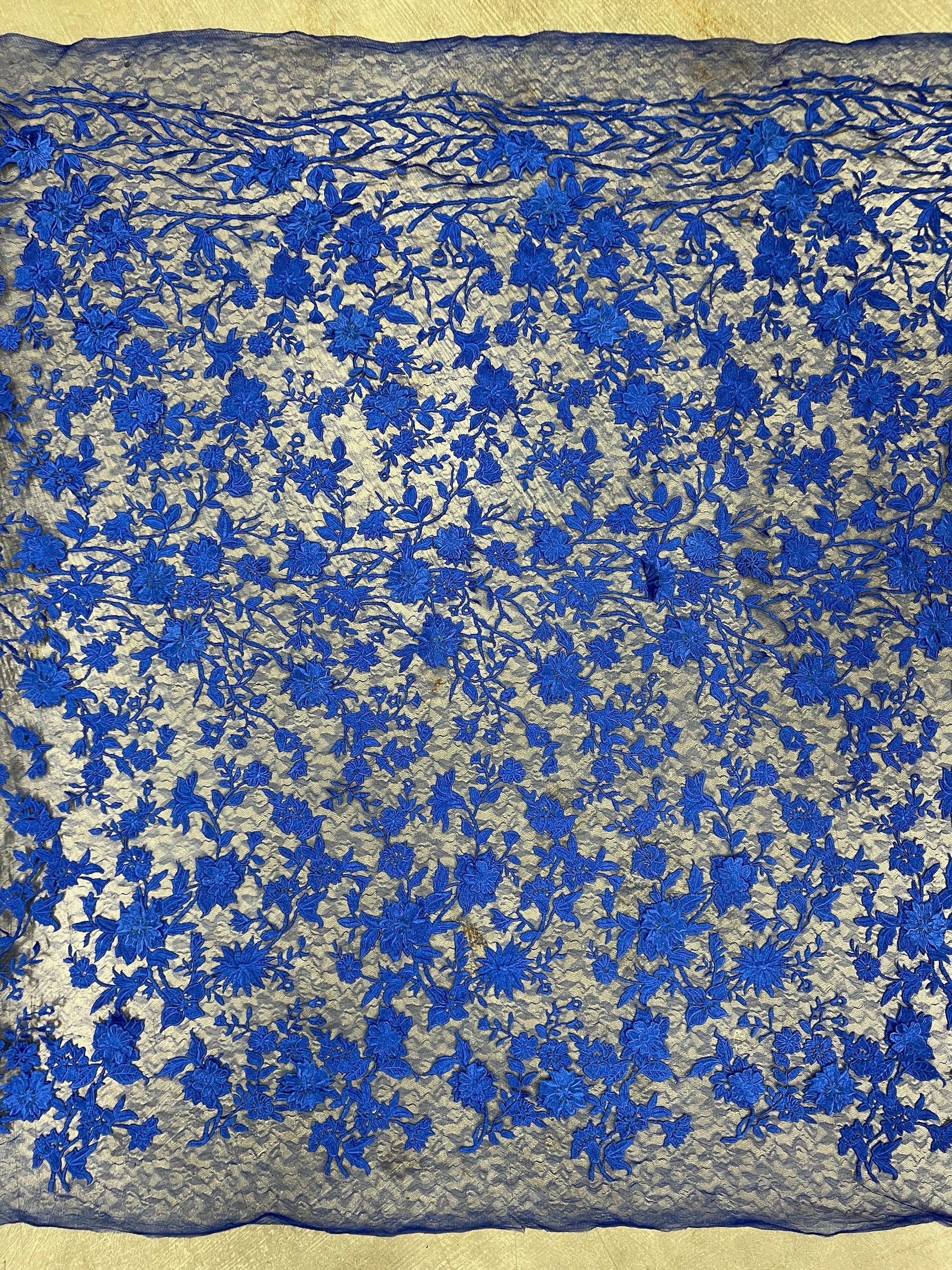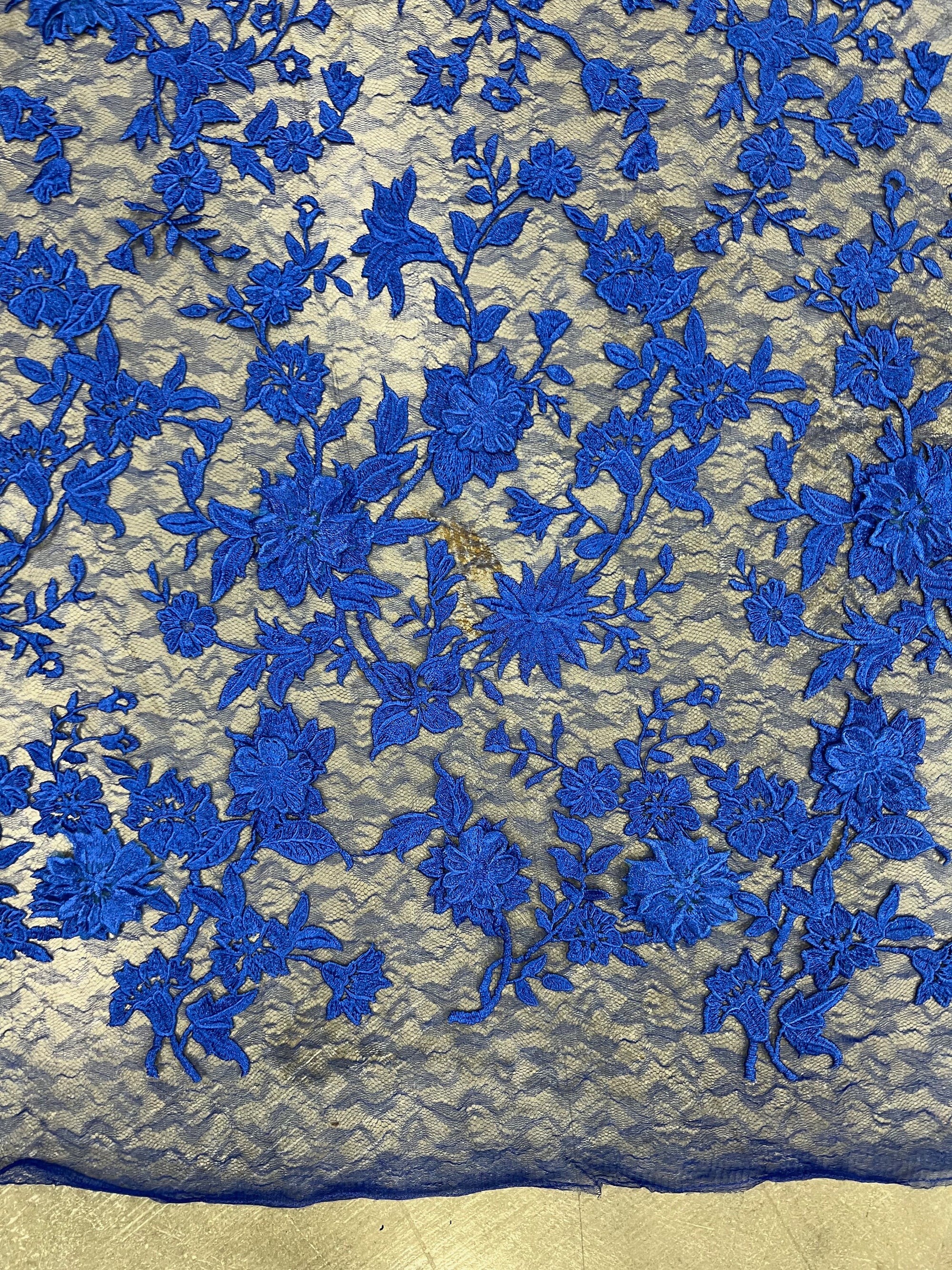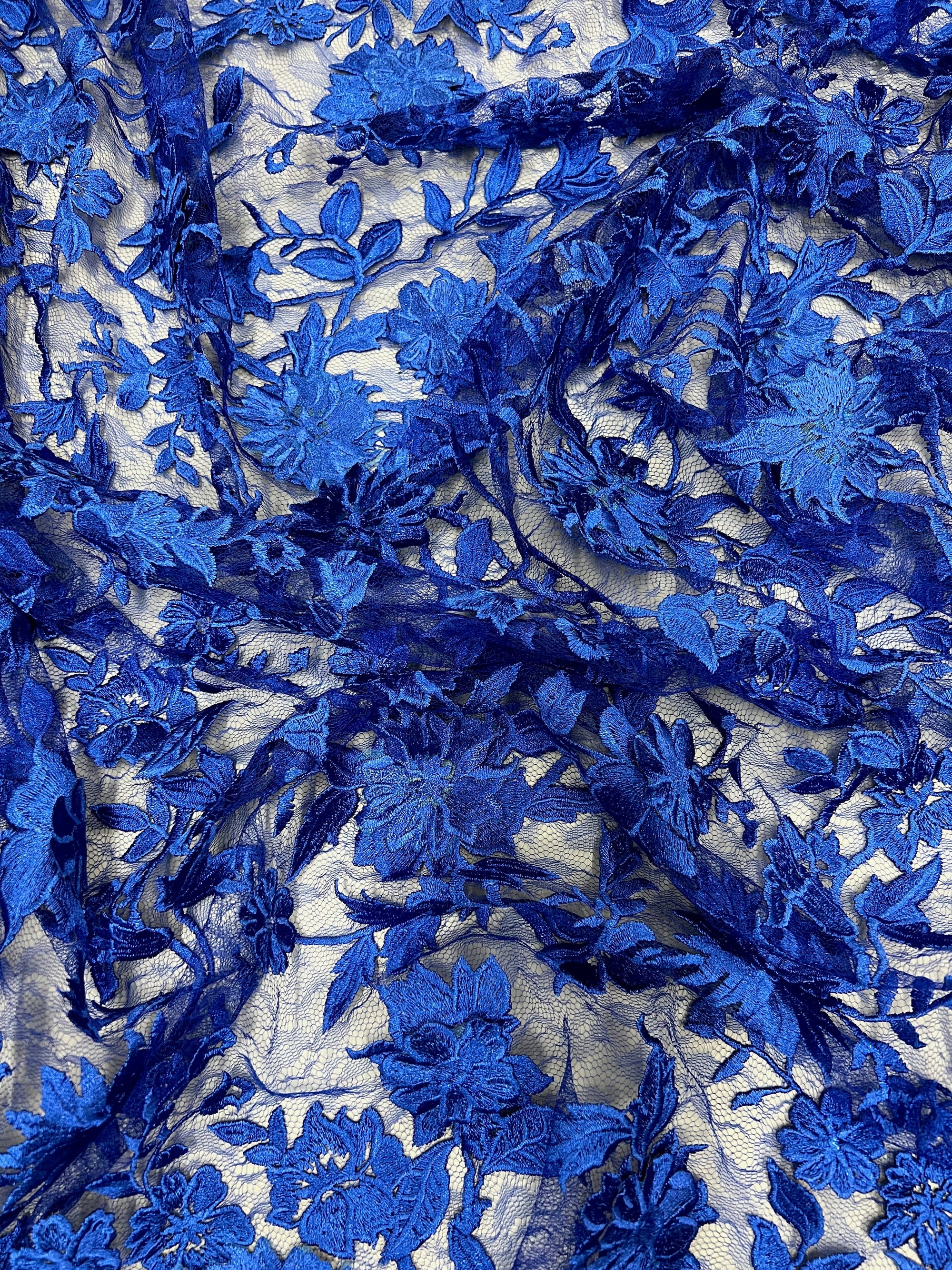 Nina ROYAL BLUE Polyester 3D Floral Embroidery on Mesh Lace Fabric by the Yard - 10032
