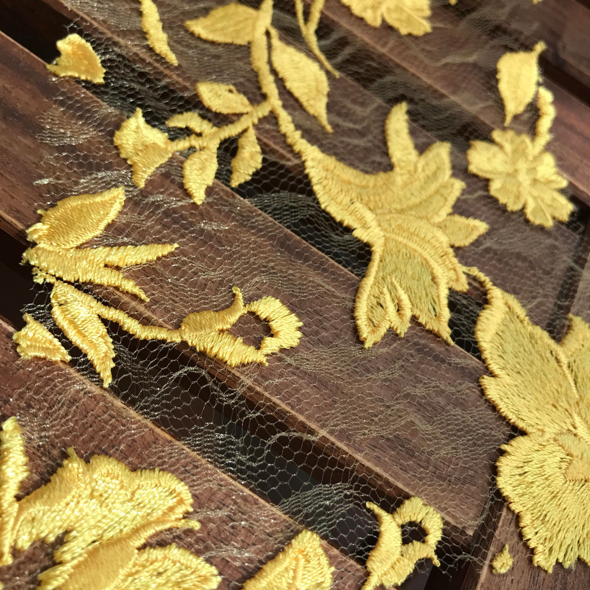 Nina YELLOW Polyester 3D Floral Embroidery on Mesh Lace Fabric by the Yard - 10032