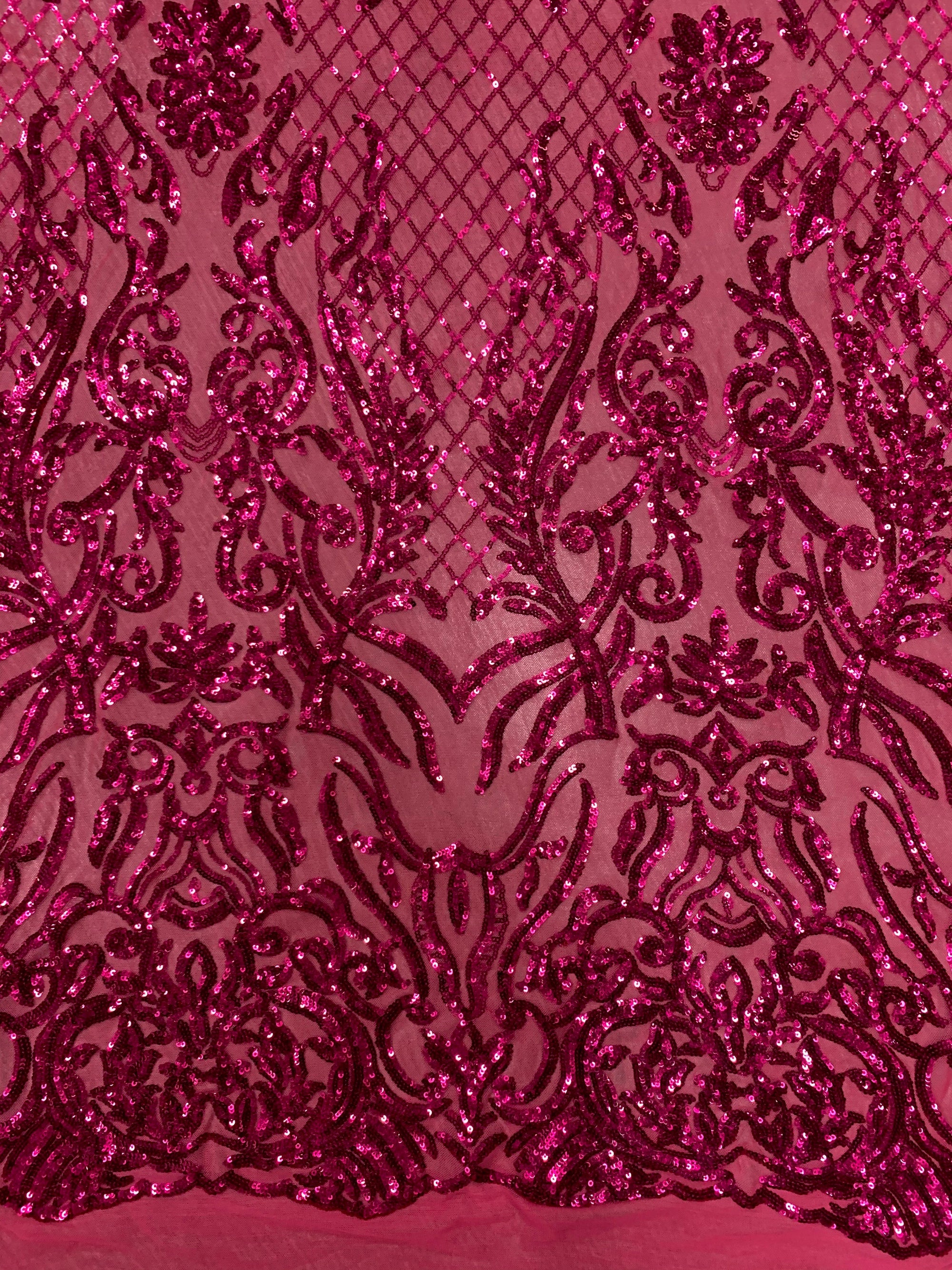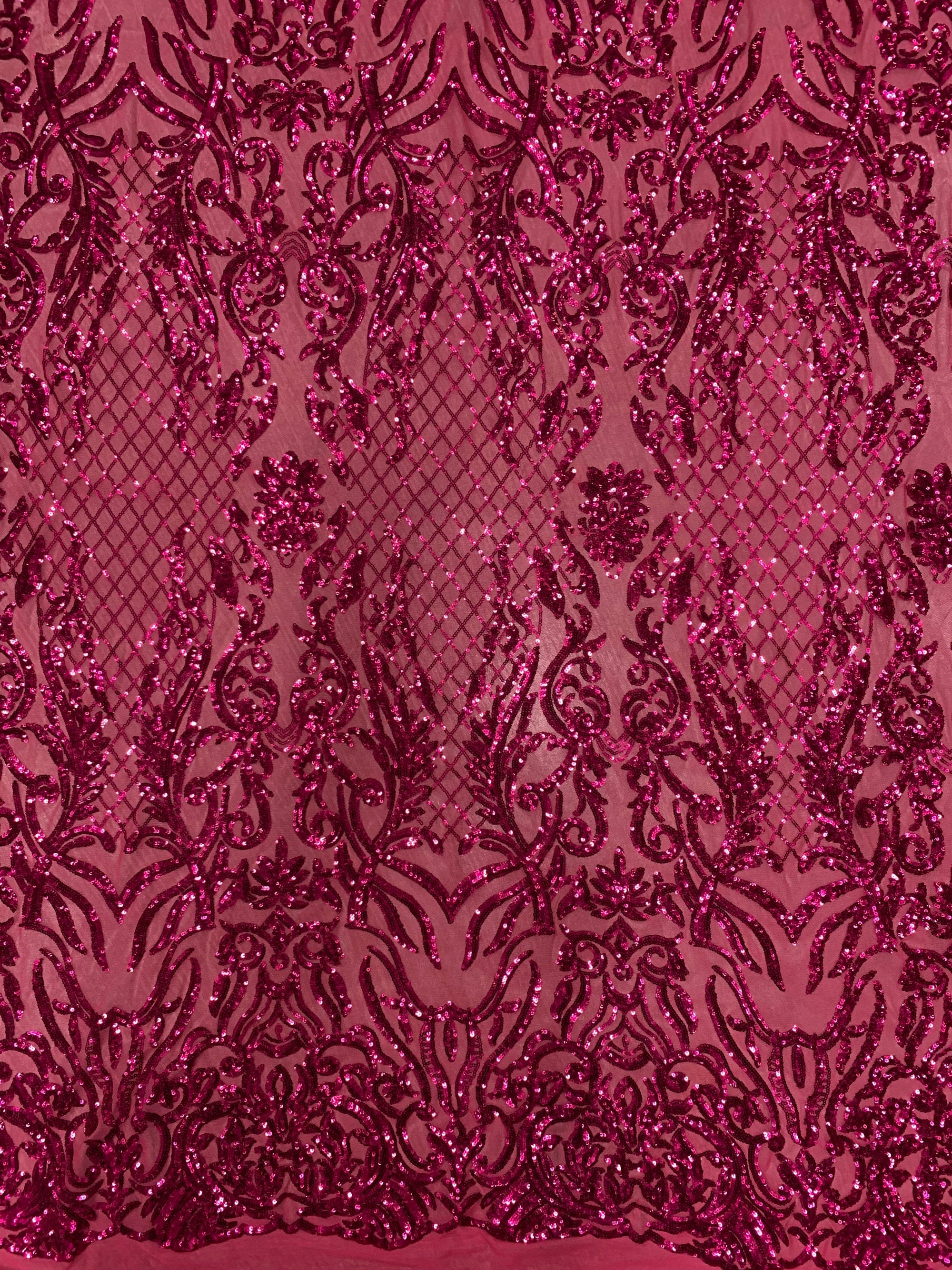 Phoebe DARK PINK Sequins on DARK PINK Mesh Lace Fabric by the Yard - 10062