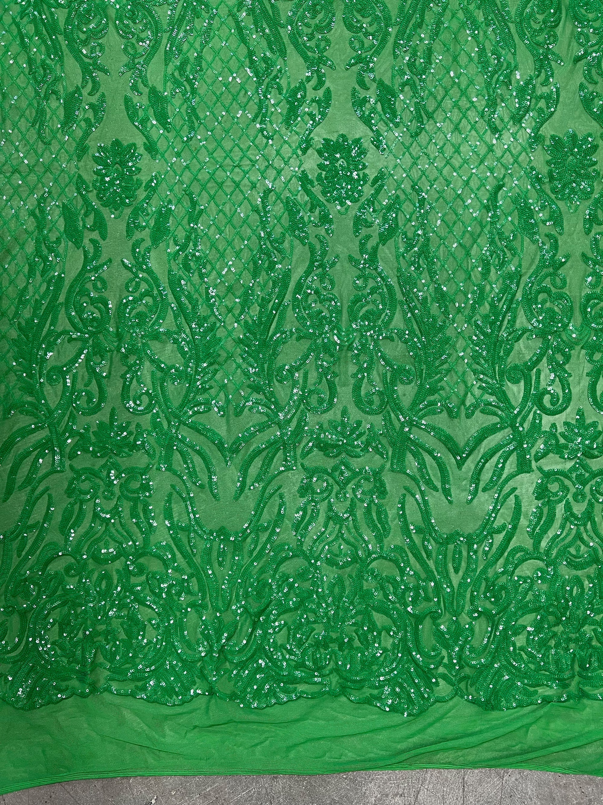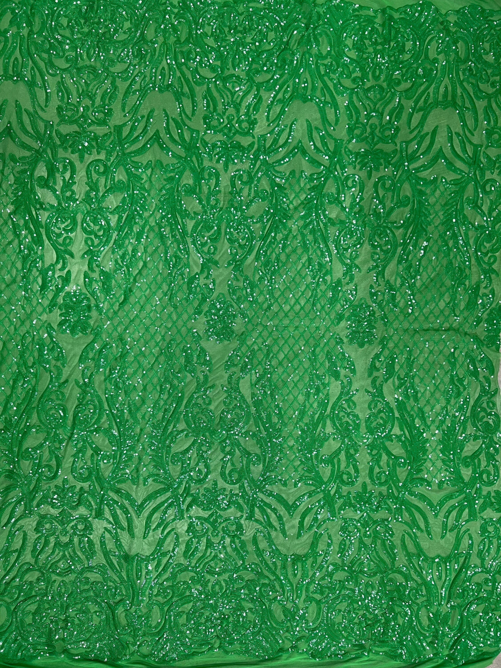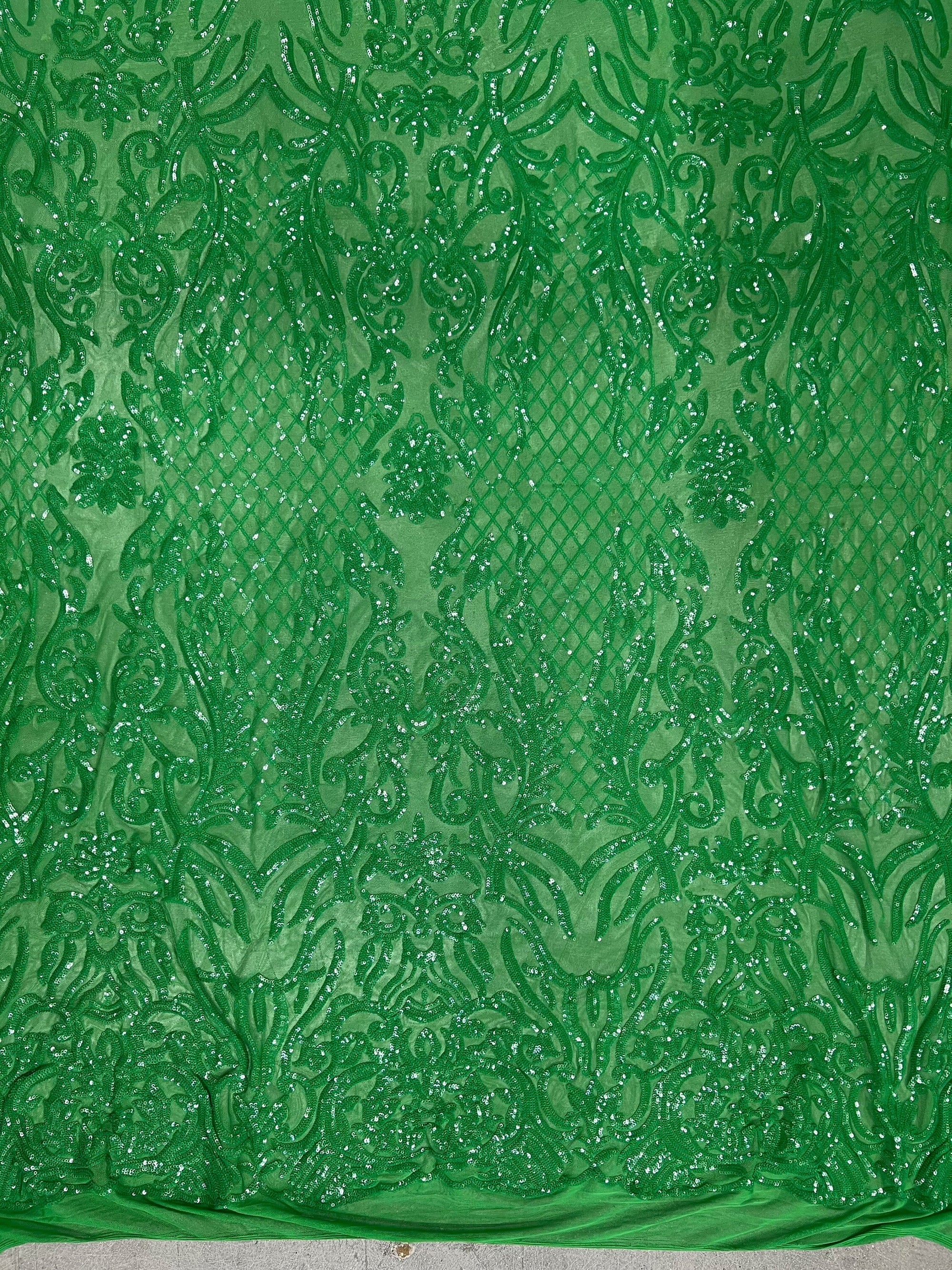 Phoebe GREEN Sequins on Mesh Lace Fabric by the Yard - 10062
