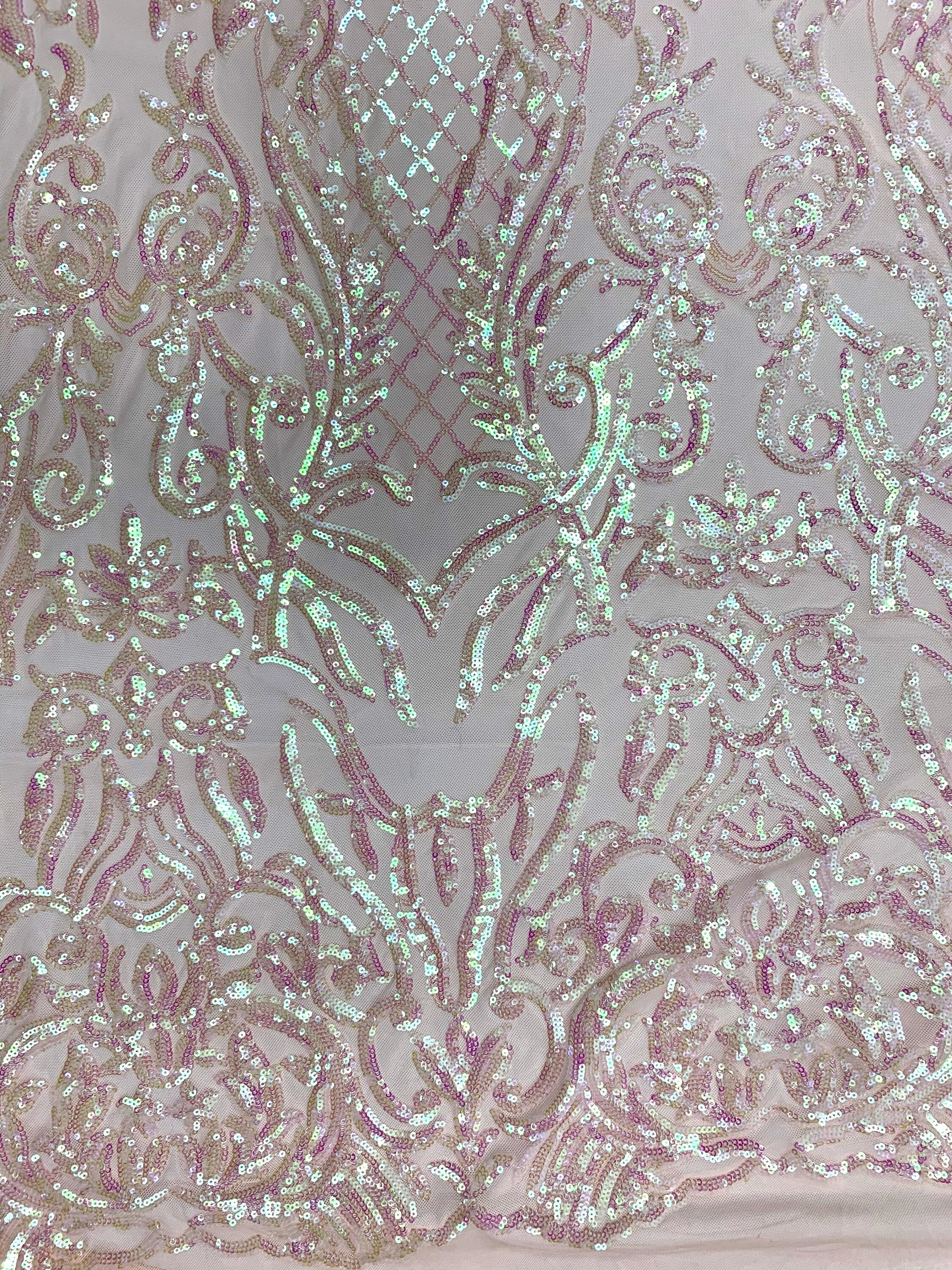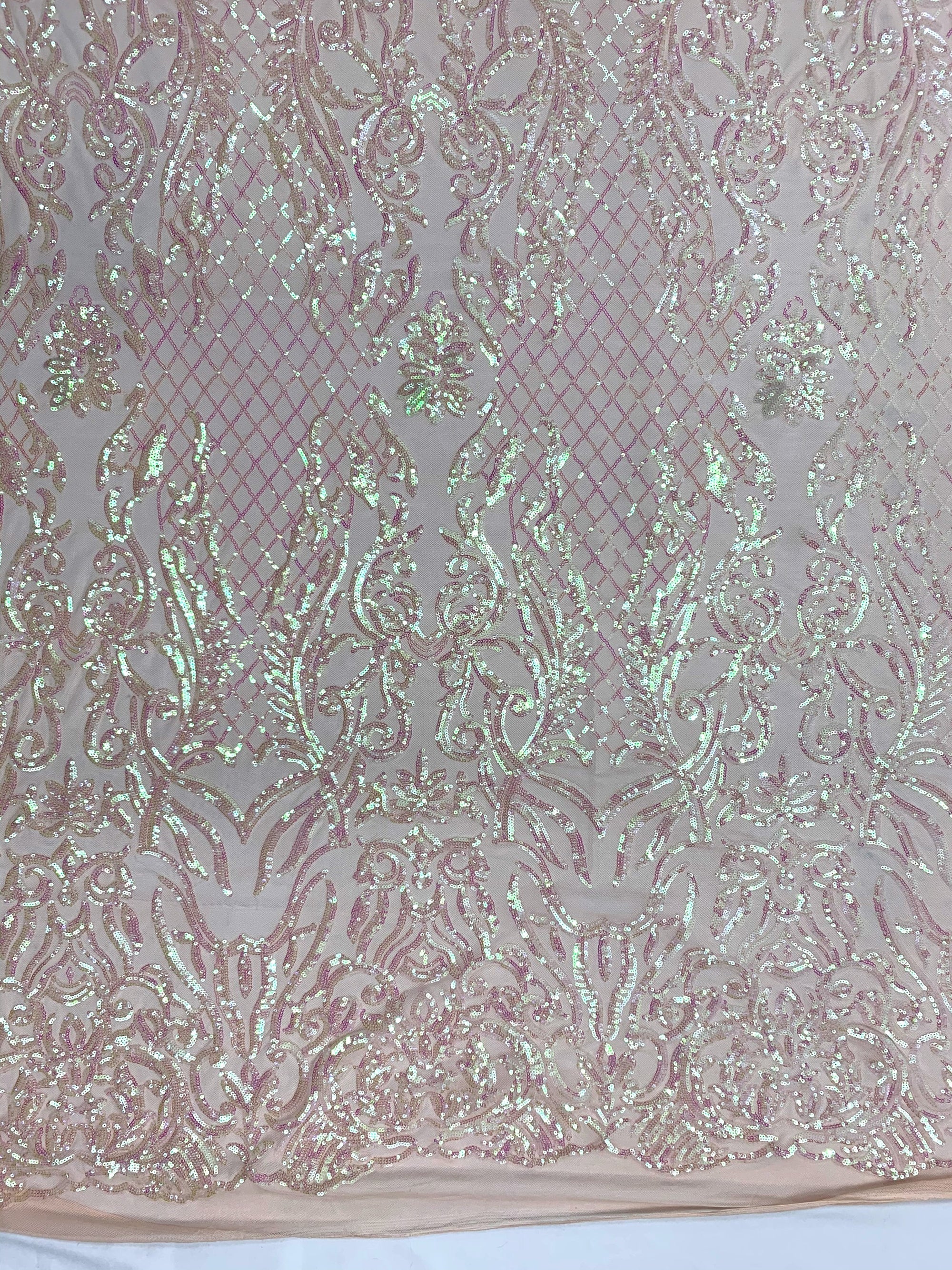 Phoebe IRIDESCENT BLUSH PINK Sequins on Mesh Lace Fabric by the Yard - 10062