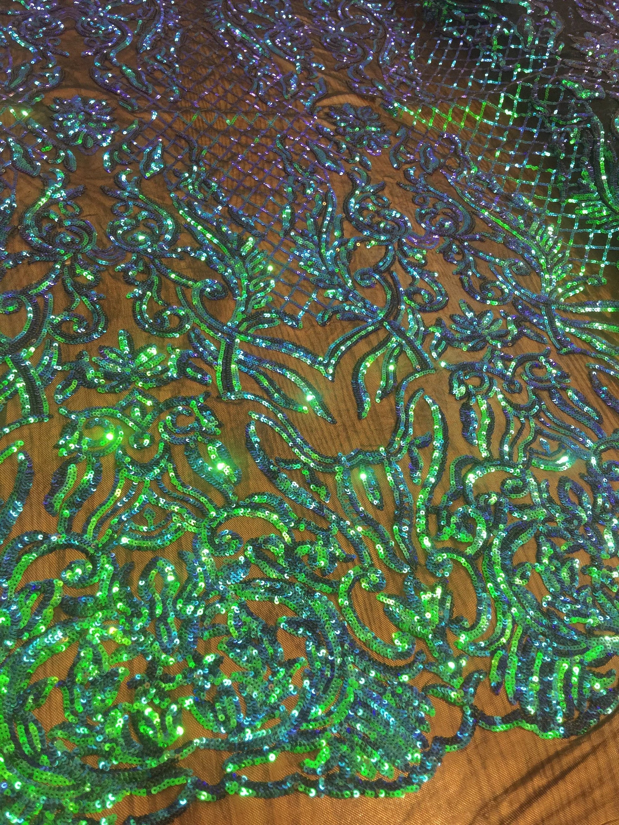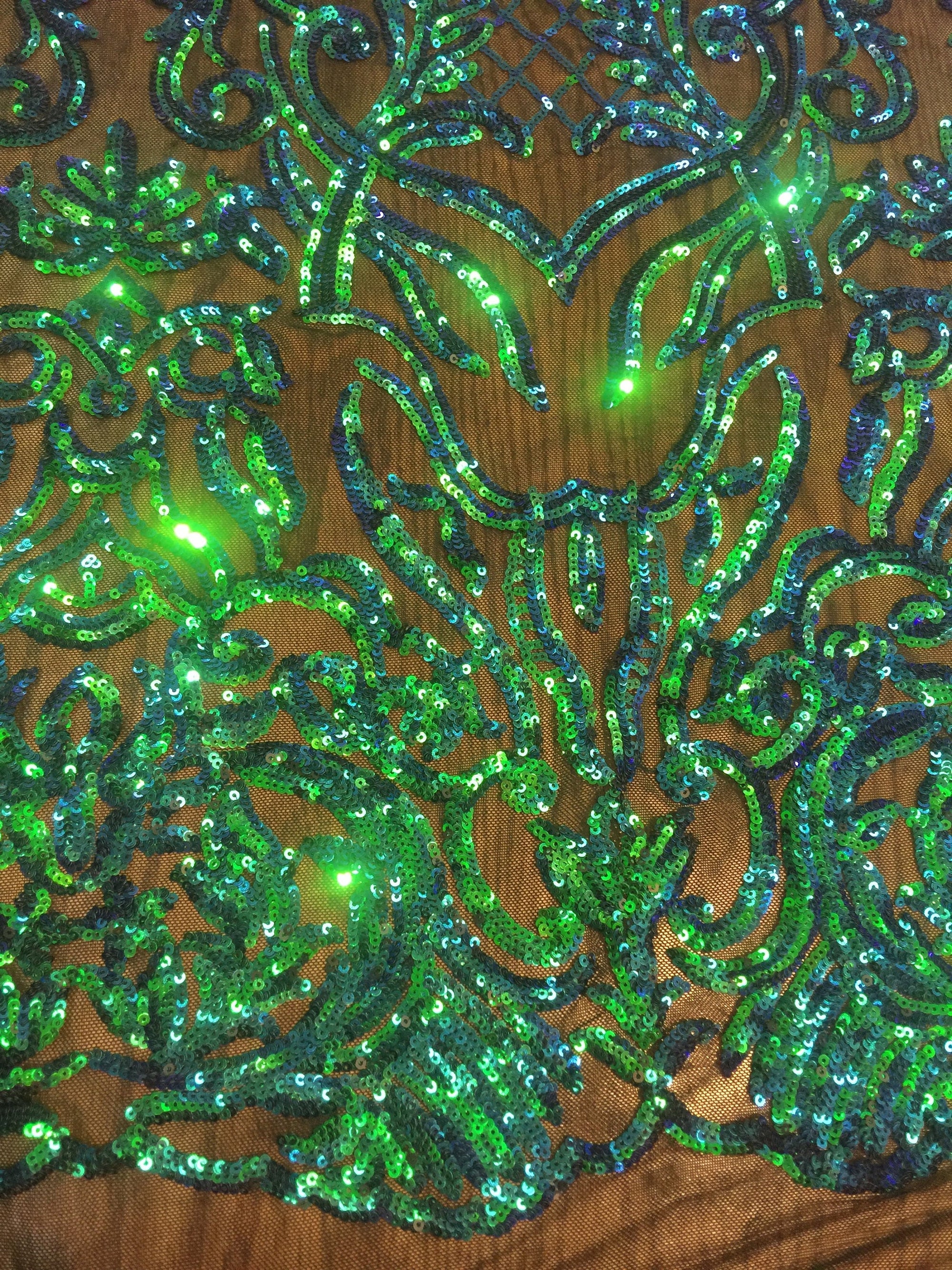 Phoebe IRIDESCENT GREEN BLUE Sequins on Mesh Lace Fabric by the Yard - 10062
