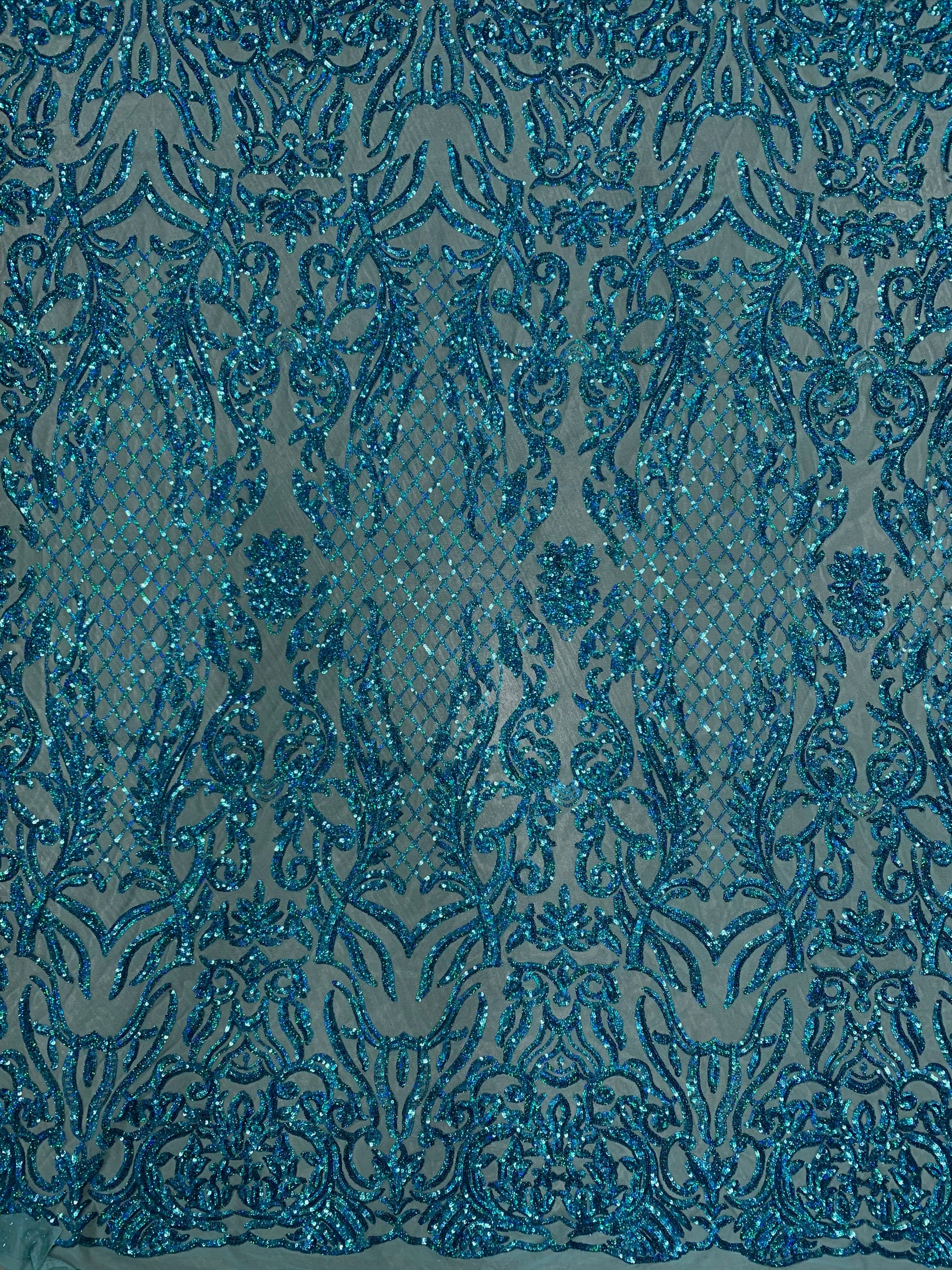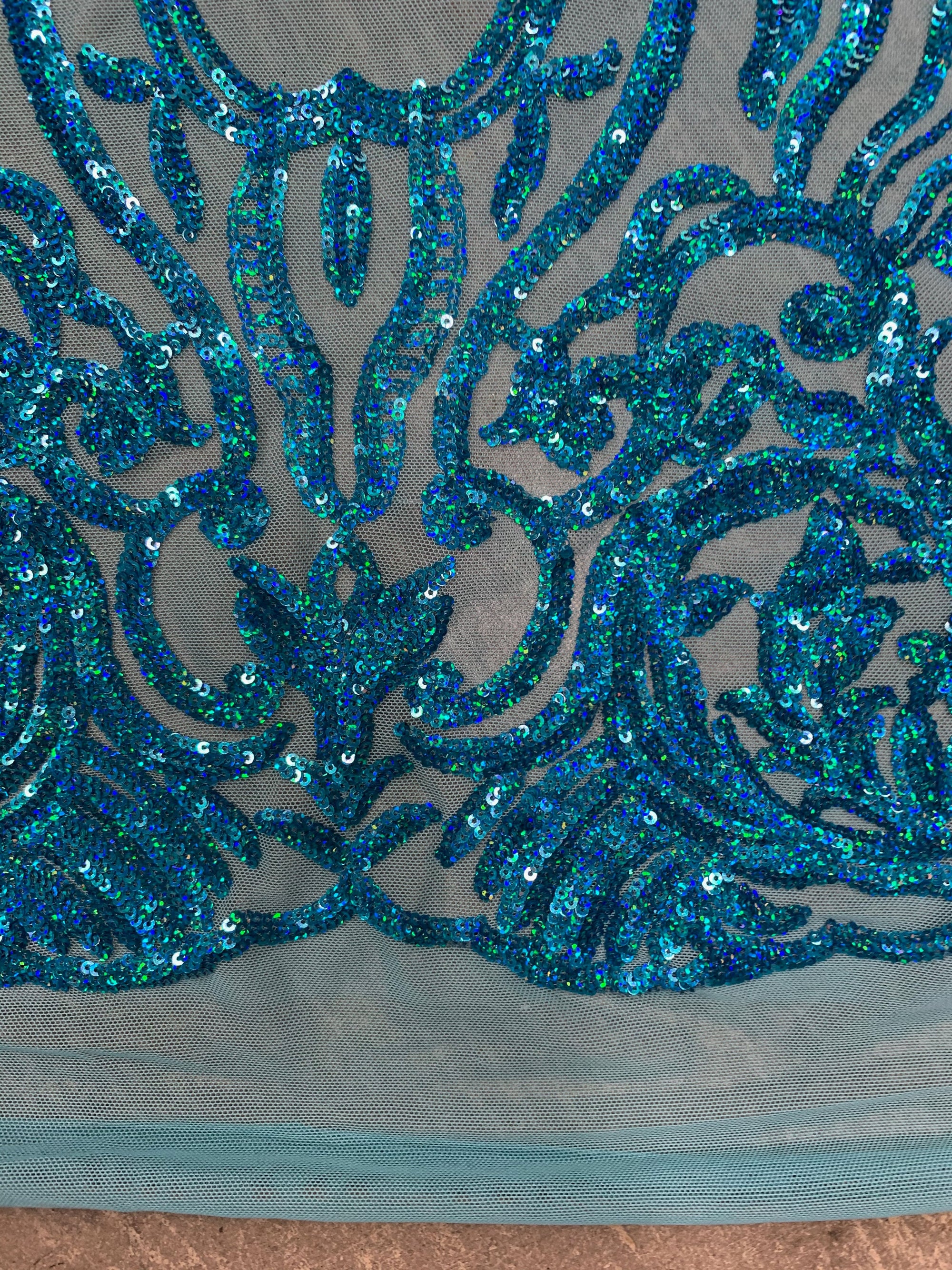 Phoebe IRIDESCENT TURQUOISE Sequins on Mesh Lace Fabric by the Yard - 10062