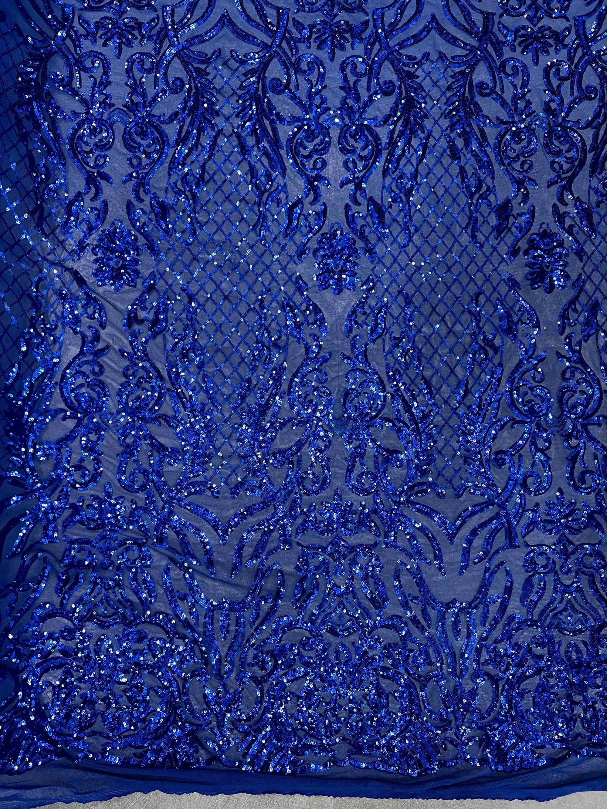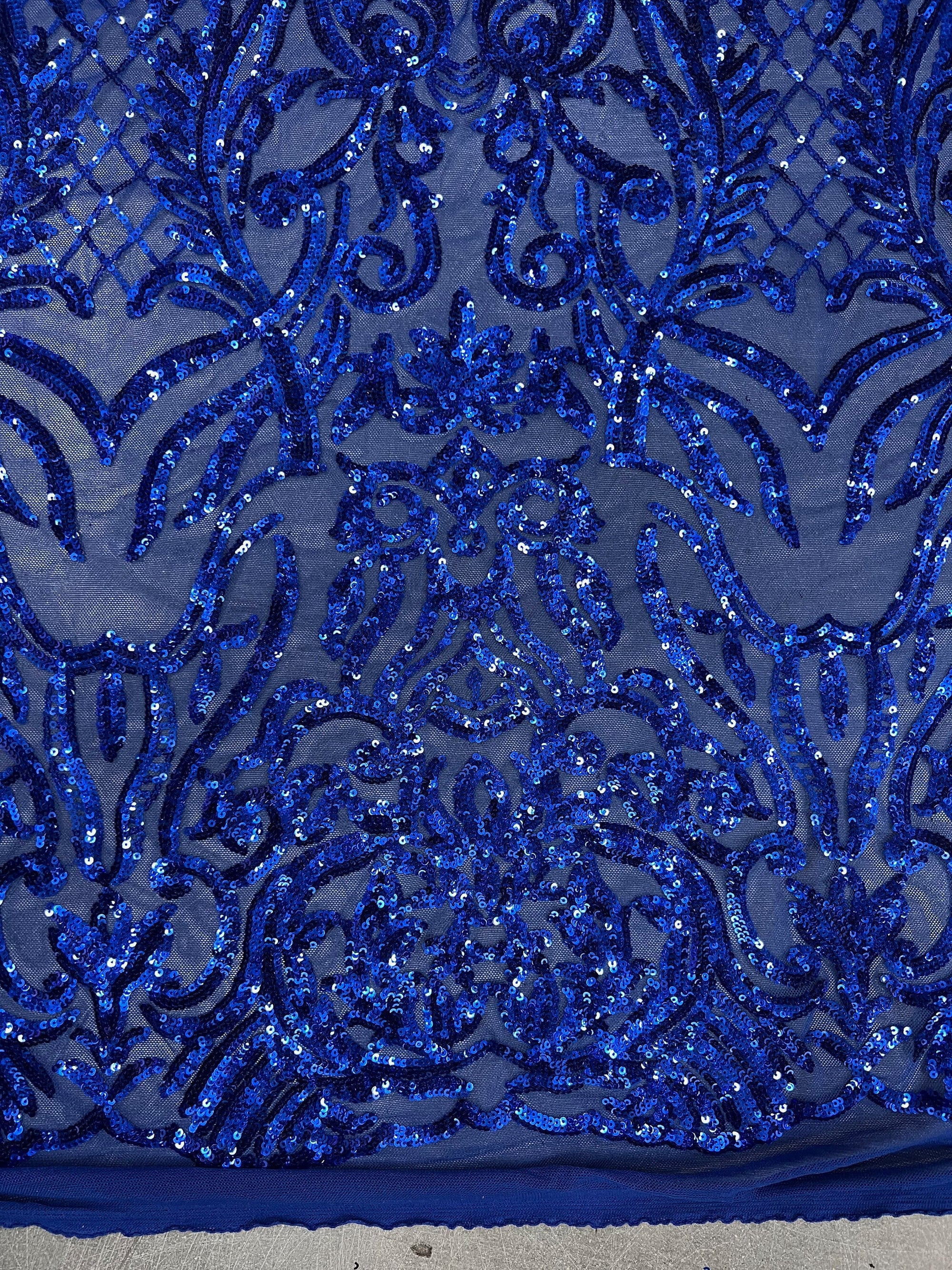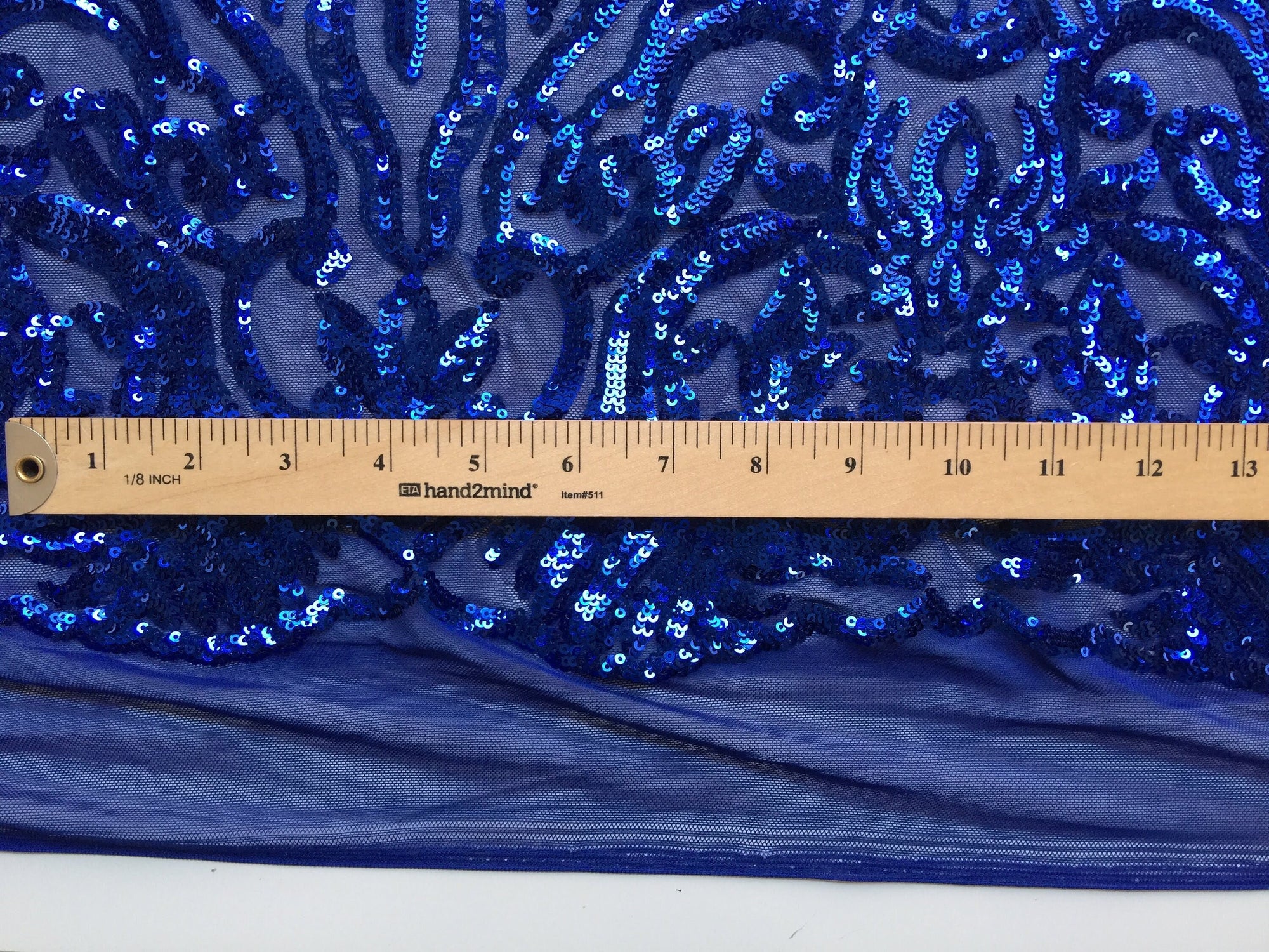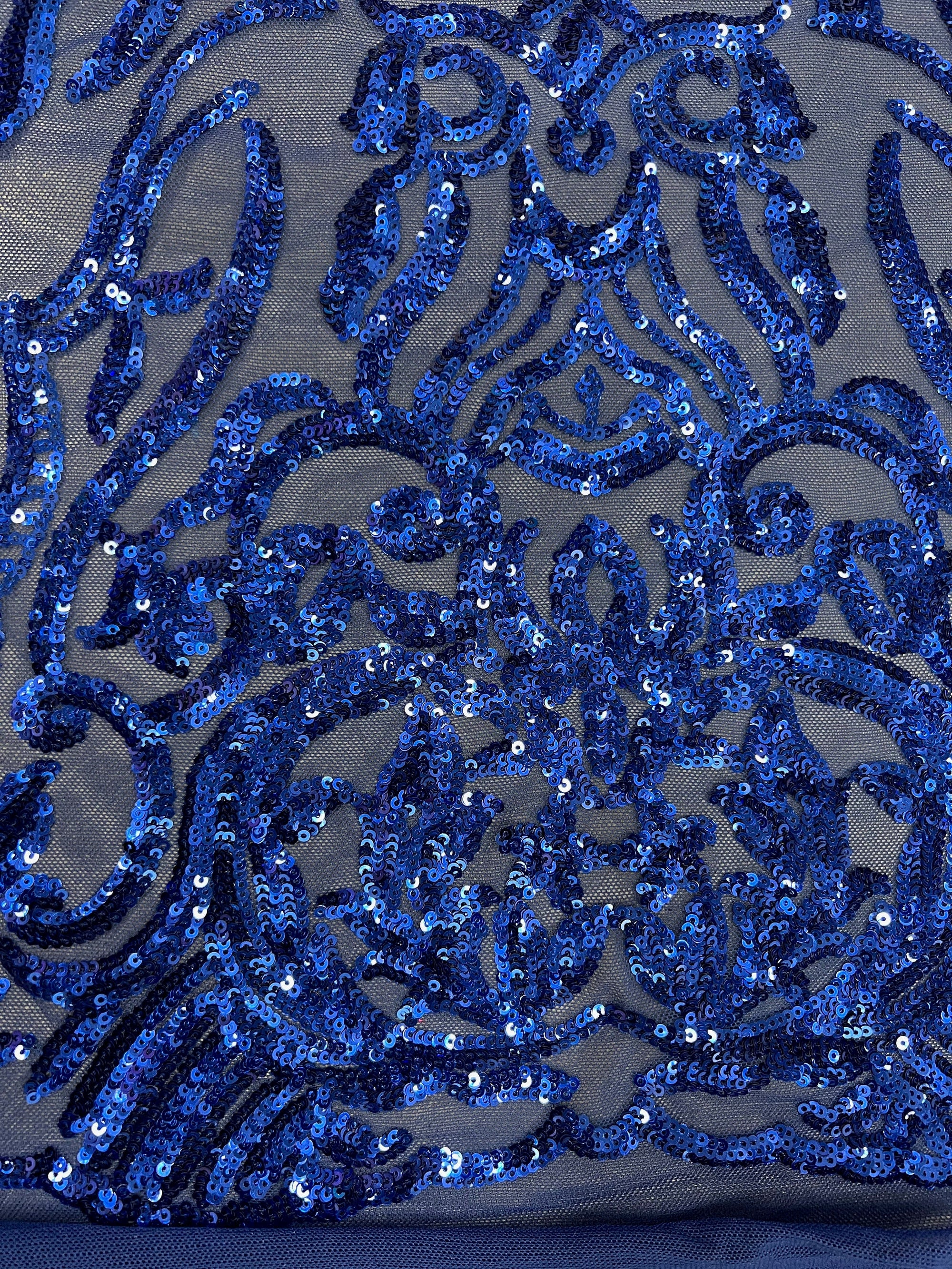 Phoebe ROYAL BLUE Sequins on Mesh Lace Fabric by the Yard - 10062