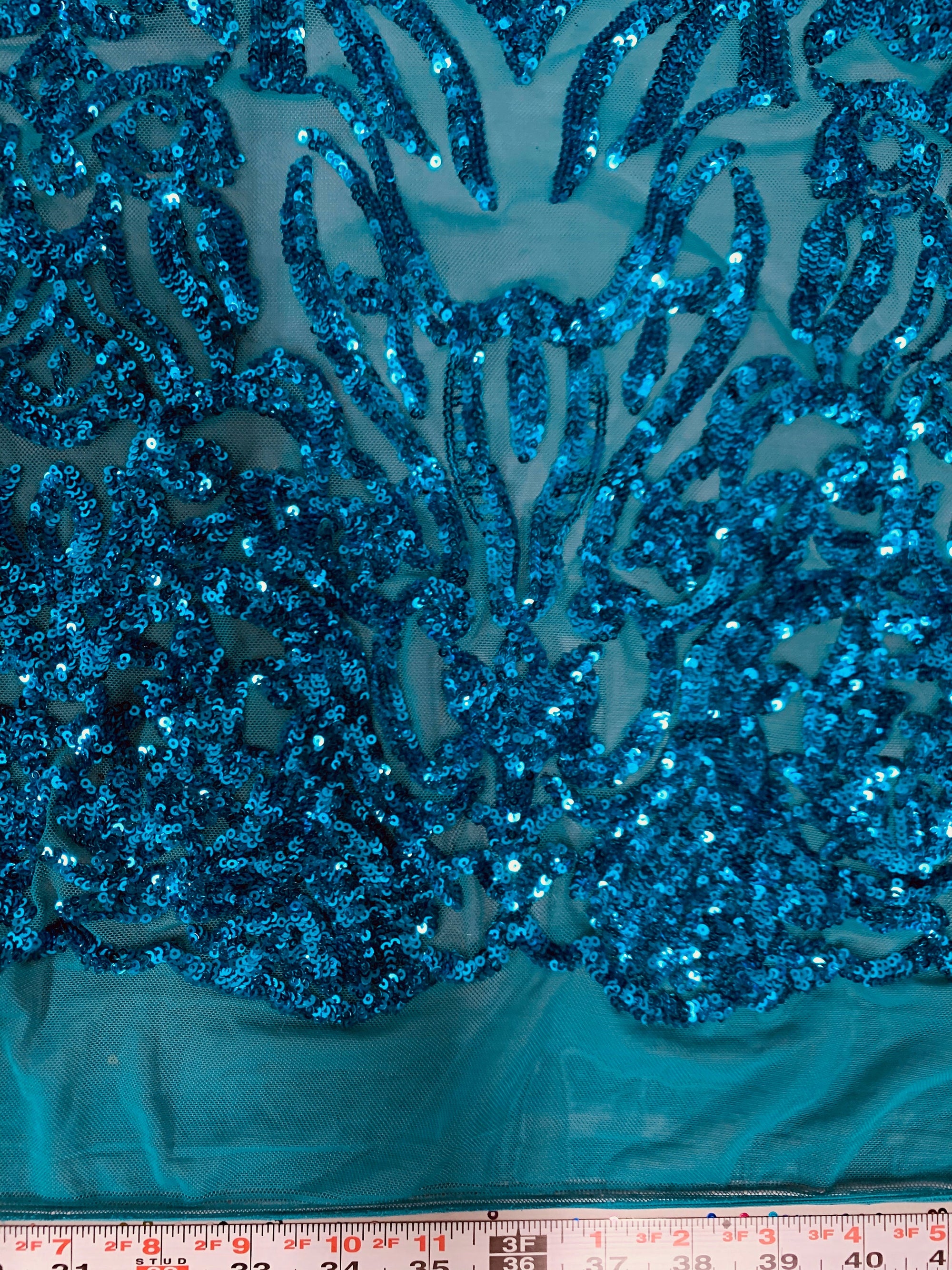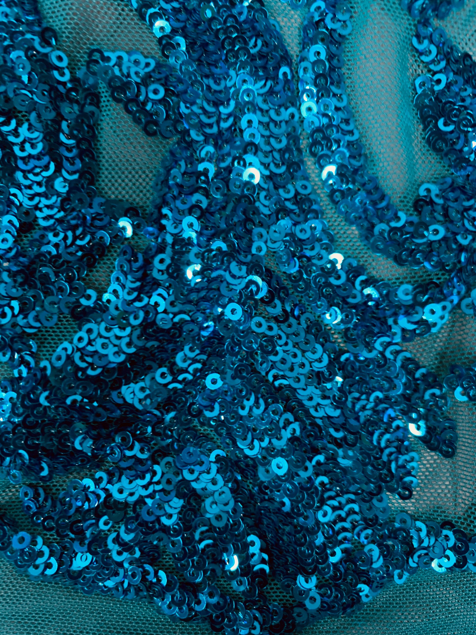 Phoebe TURQUOISE Sequins on Mesh Lace Fabric by the Yard - 10062