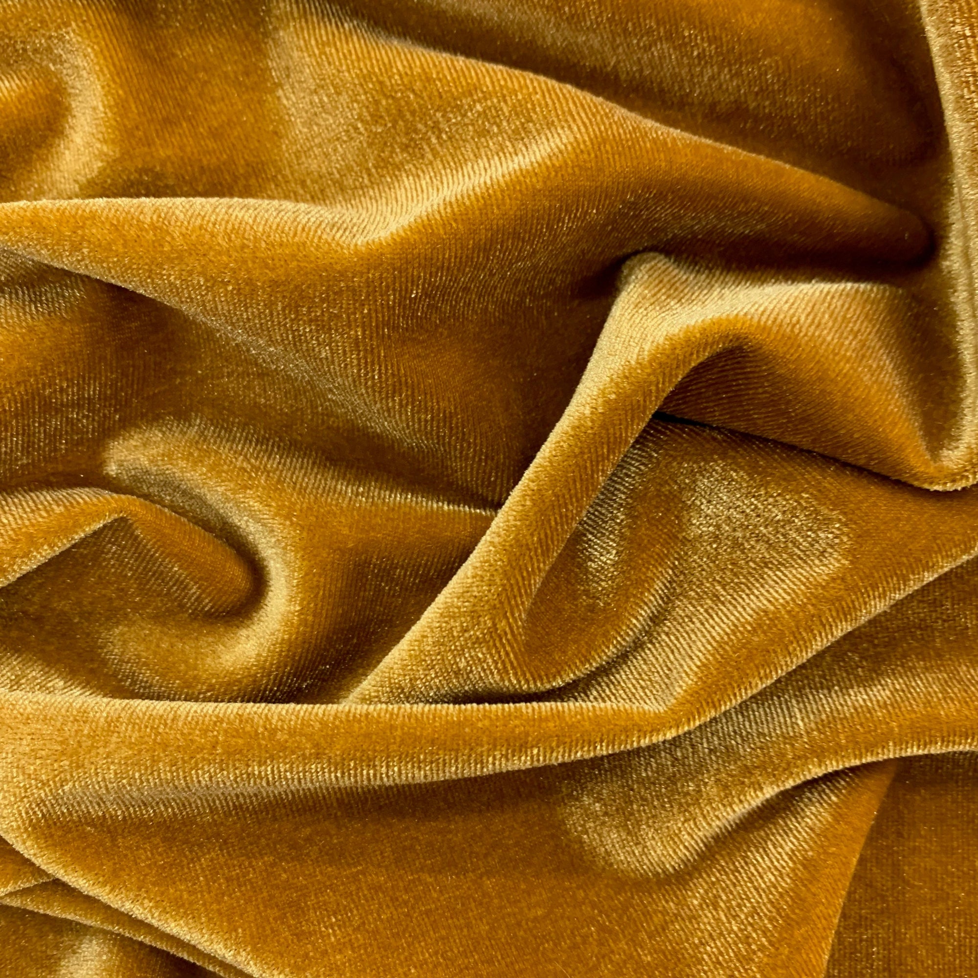 Princess DARK GOLD Polyester Stretch Velvet Fabric by the Yard for Tops, Dresses, Skirts, Dance Wear, Costumes, Crafts - 10001