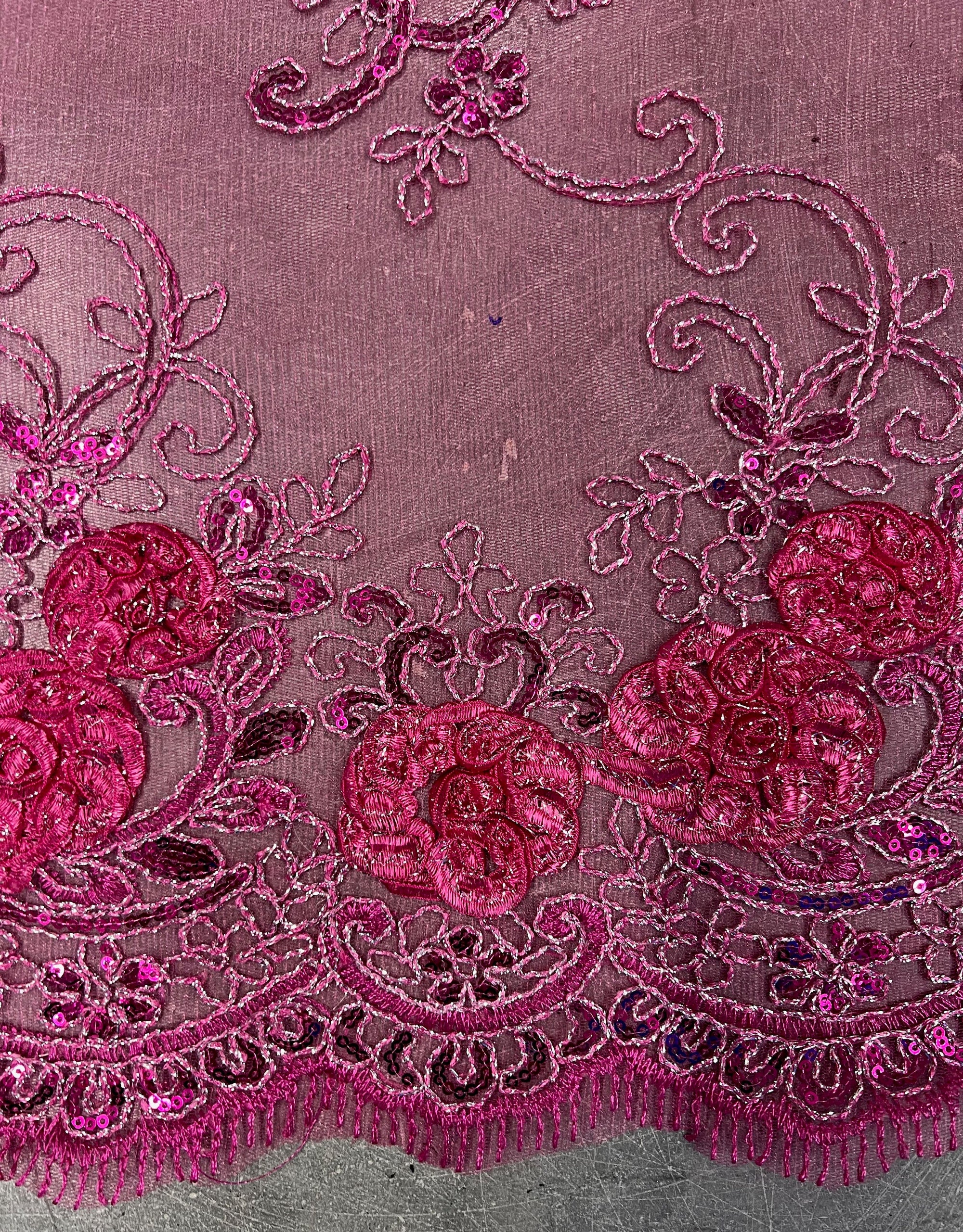 Ryleigh FUCHSIA 3D Floral Embroidery with Foil & Sequins on Mesh Lace Fabric by the Yard - 10010