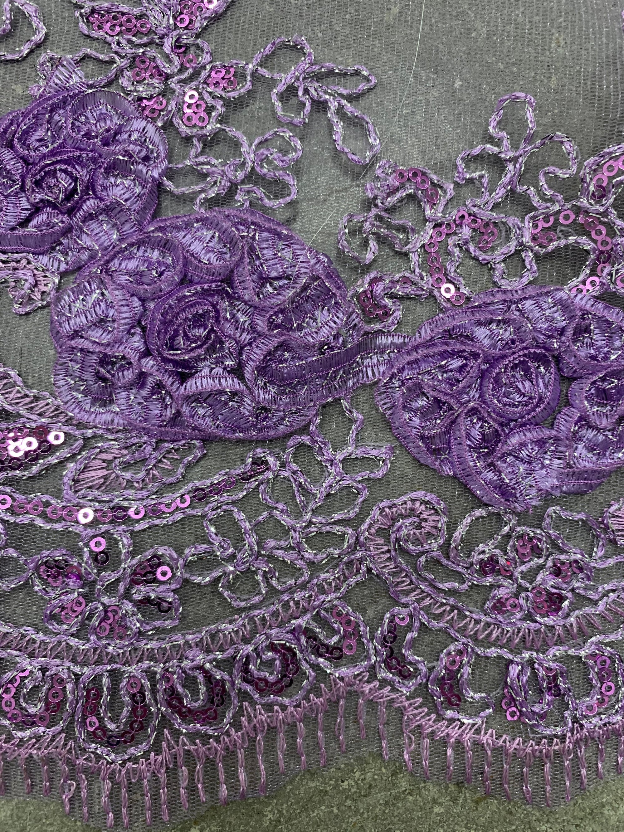 Ryleigh LAVENDER 3D Floral Embroidery with Foil & Sequins on Mesh Lace Fabric by the Yard - 10010