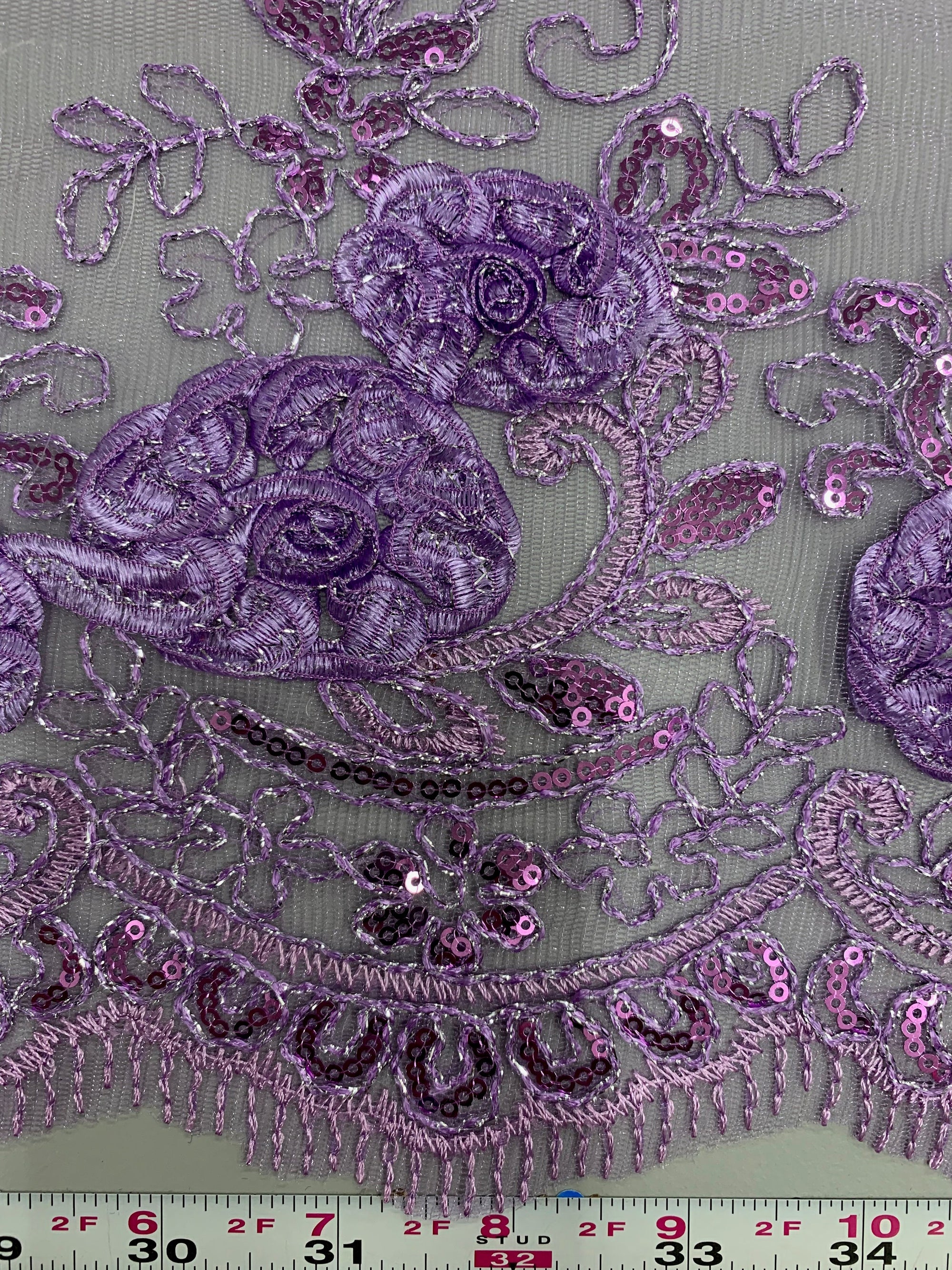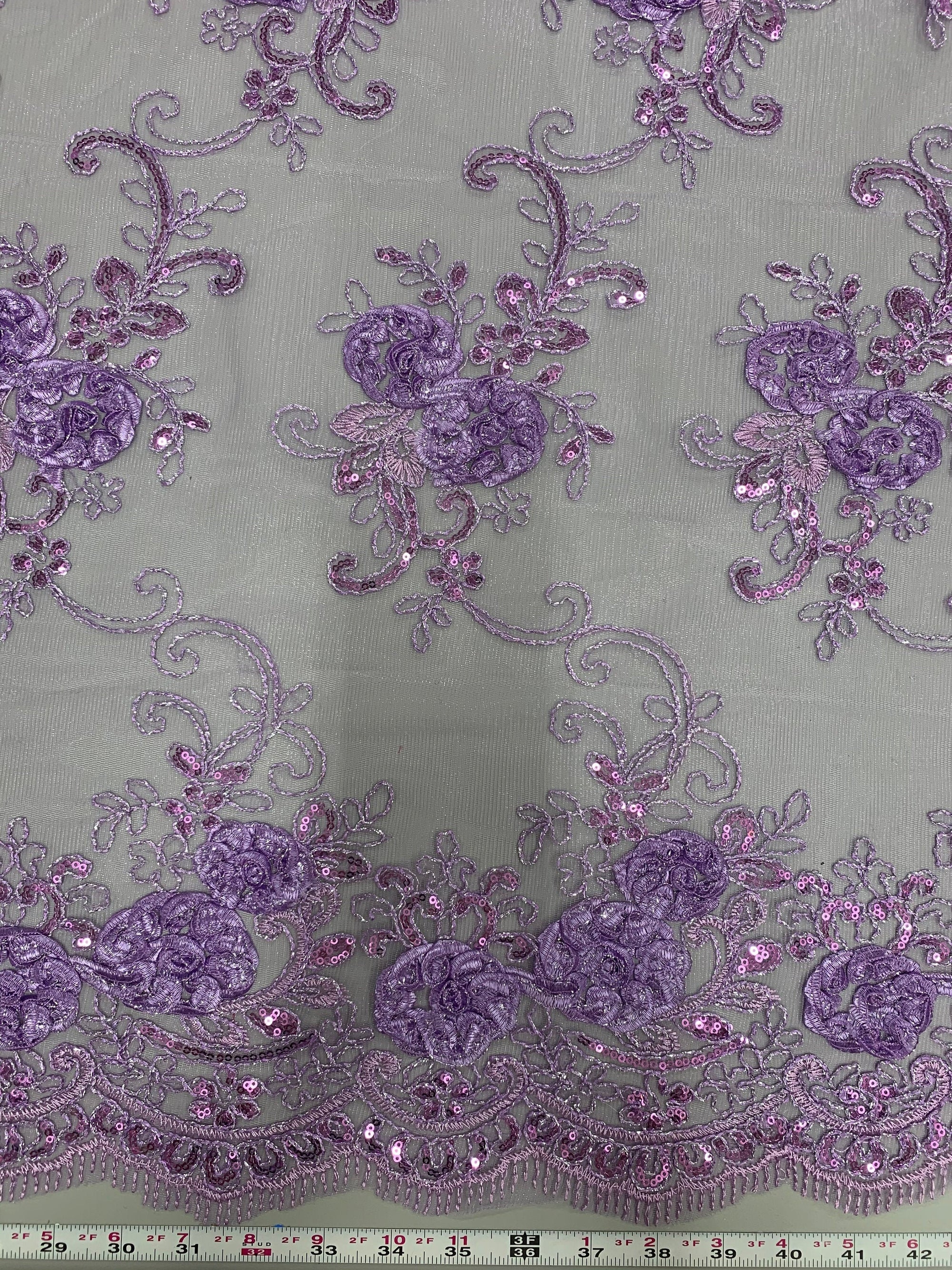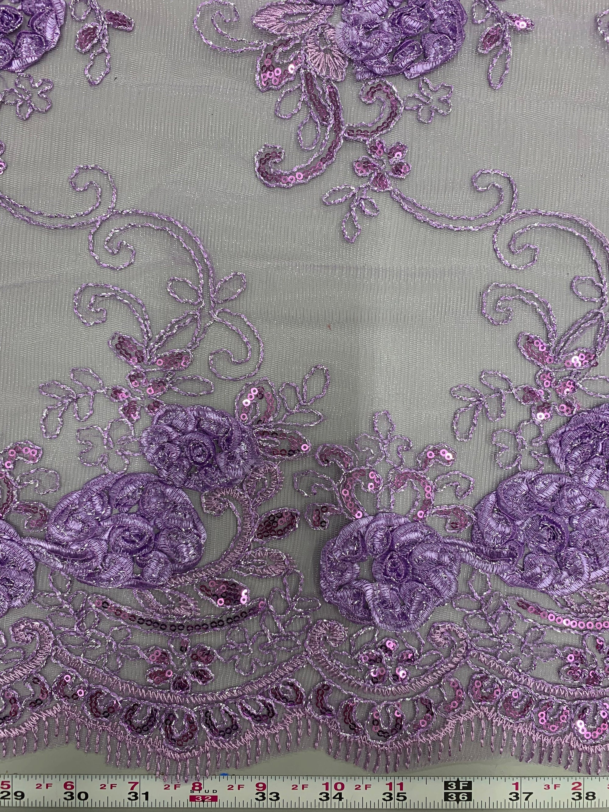 Ryleigh LAVENDER 3-D Floral Embroidery with Foil & Sequins on Mesh Lace Fabric by the Yard - 10010