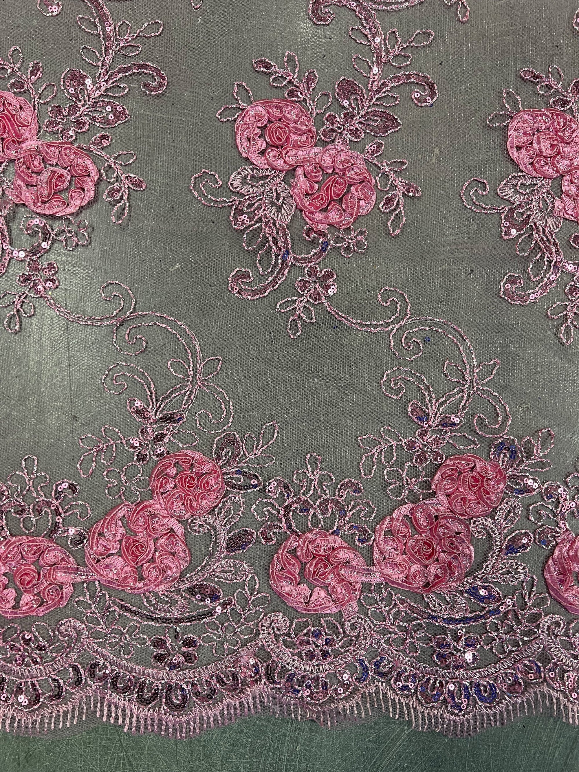 Ryleigh PINK 3D Floral Embroidery with Foil & Sequins on Mesh Lace Fabric by the Yard - 10010
