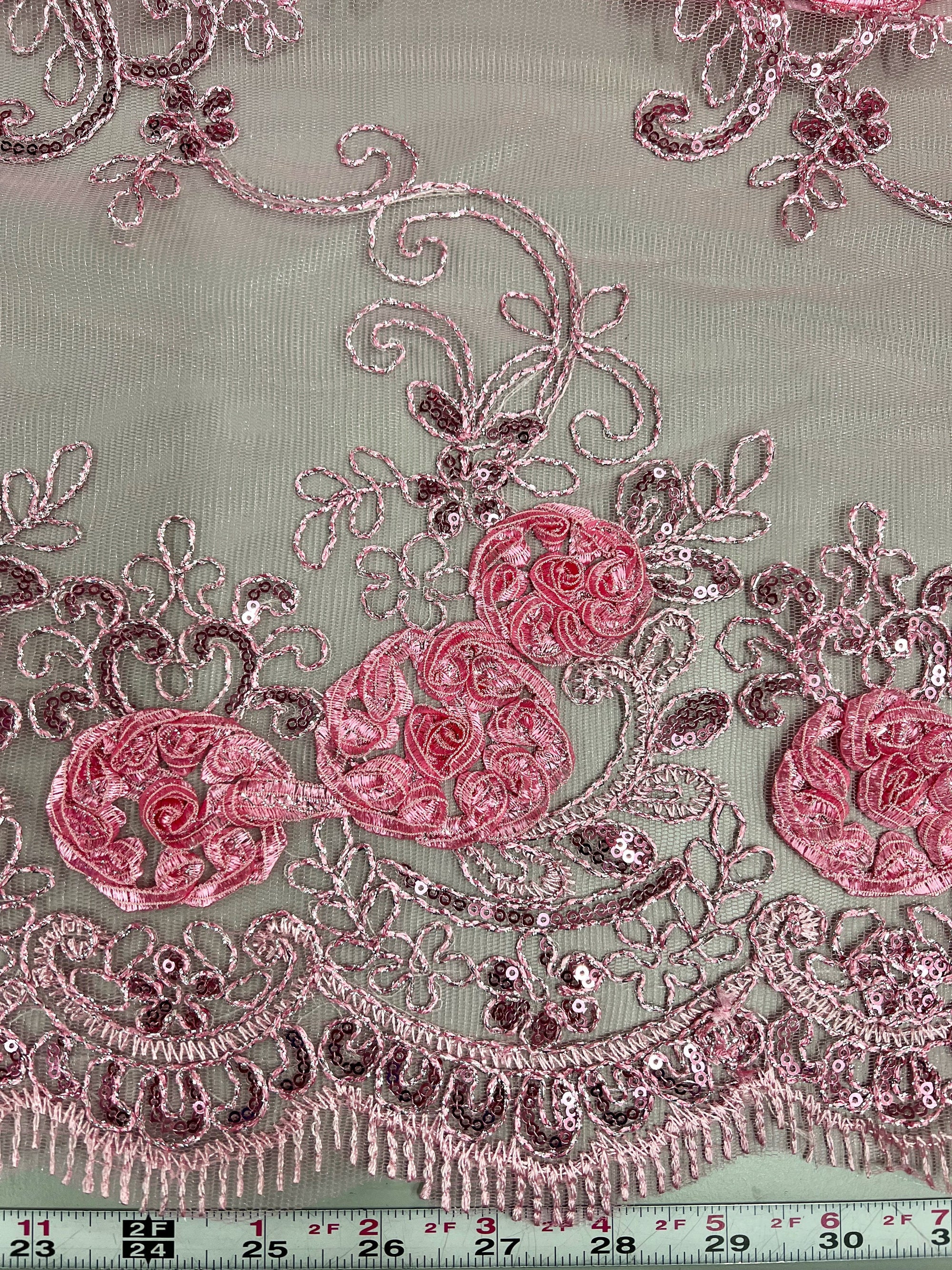 Ryleigh PINK 3-D Floral Embroidery with Foil & Sequins on Mesh Lace Fabric by the Yard - 10010