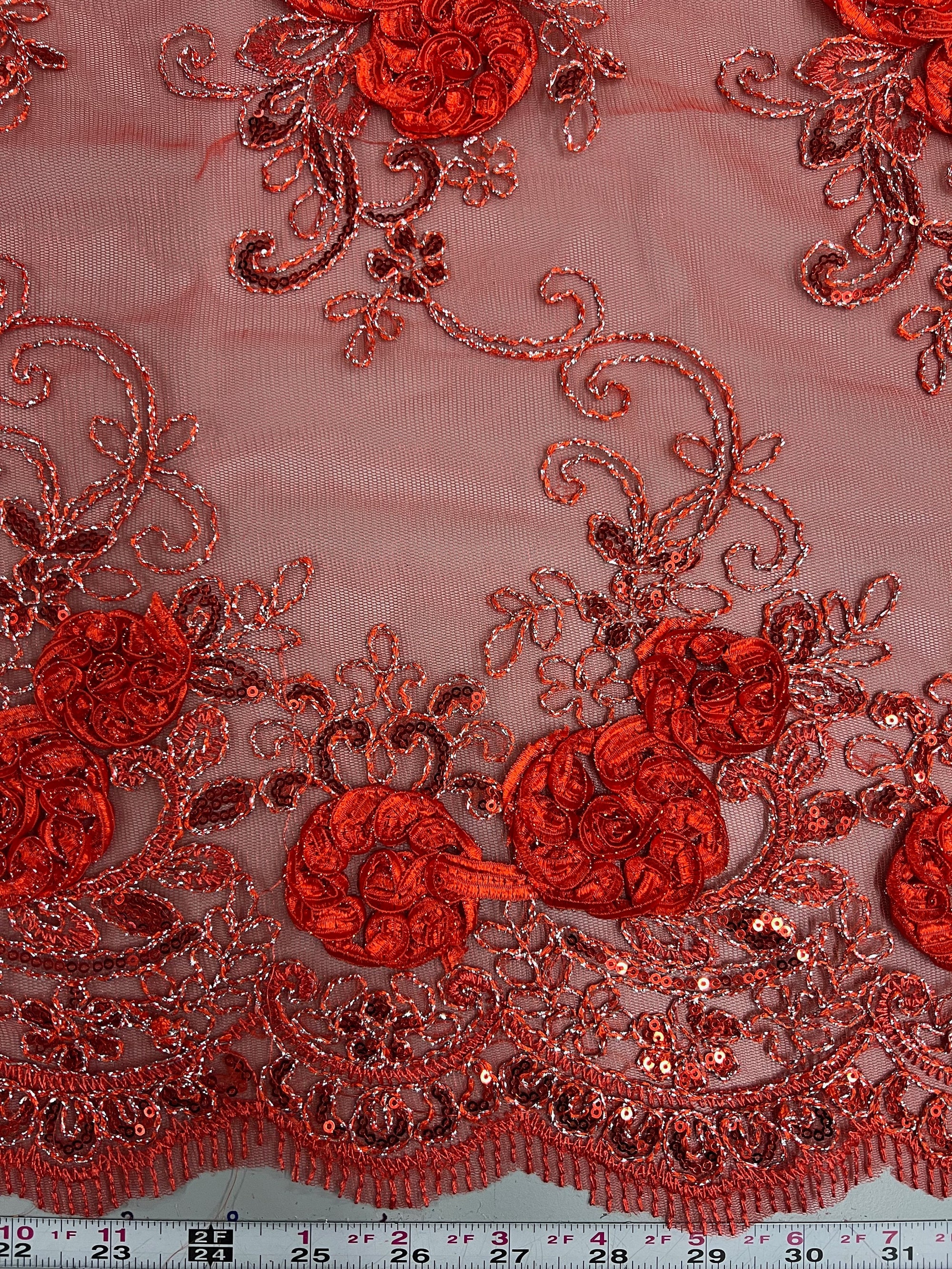Ryleigh RED 3-D Floral Embroidery with Foil & Sequins on Mesh Lace Fabric by the Yard - 10010