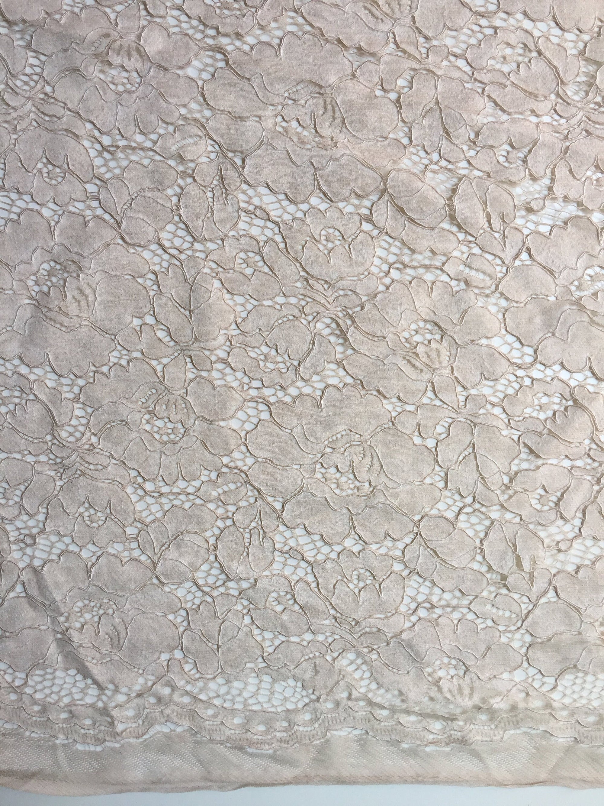 Summer BEIGE Floral Pattern Double Dyed Flat Lace on Mesh Fabric by the Yard - Style 10069
